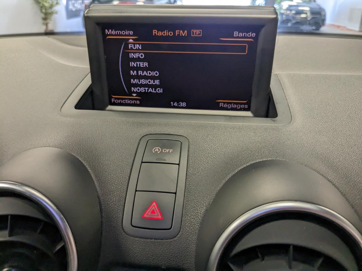 Airbags grand volume pour le conducteur et le passager avantAirbags latéraux à l'avant intégrés dans les dossiers des sièges à l'avantAllume-cigare et cendrier sur la console centrale à l'avantAntipatinage ASR pour une motricité optimale : empêche le patinage des roues motricesAppuis-tête, réglables à l'avant et à l'arrièreAutoradio Concert, incluant lecteur CD compatible MP3/WMA et AACBlocage électronique du différentiel EDS, aide au démarrage, freine automatiquement les roues motrices sur route glissante et inégalement adhérente, assurant ainsi une excellente motricitéBoîte à gants côté passager avant, grand volume, avec éclairageBoîtiers de rétroviseurs extérieurs couleur carrosserieCache-bagages amovibleCarrosserie galvanisée (entièrement galvanisée aux endroits sensibles à la corrosion), autoportante, soudée au groupe-plancher, zones de déformation défi nies à l'avant et à l'arrière (12 ans de garantie contre la corrosCeintures de sécurité, trois points automatiques pour toutes les places, à l'avant avec réglage en hauteur et prétensionneurs pyrotechniques ; limiteurs de tension sur toutes les placesChâssis : Suppression du châssis SportChâssis DynamiqueClignotants avec fonction autoroute : une brève impulsion sur le comodo active 3 cycles de clignotementClimatisation automatique "Confort"Colonne de direction de sécurité, compléte le potentiel de protection de la ceinture de sécurité et des airbagsConsole centrale avec 2 porte-boissons et vide-poches complémentaireContact d'allumage électronique ; clé de contact pouvant mémoriser différentes données d'entretienContre-portes avec partie centrale en tissu et accoudoir intégréContrôle de ceinture attachée pour toutes les placesContrôle de la pression des pneusCric, dans le coffreDétecteur de pluie et de luminosité incluant bande grise dans la partie supérieure du pare-briseDirection assistée particulièrement sportive et directeDossier de banquette arrière rabattable en deux parties , 1/3, 2/3 ou complétementEclairage intérieur, à temporisation avec contacteurs sur toutes les portières ; éclairage du coff re, du côté conducteur, du passager avant et des places arrièreEcran central avec éclairage réglableEcrous antivolEntourages de diffuseurs d'air noir matESP avec blocage transversal électroniqueEssuie-glace deux vitessesFeux arrière rouges, feux de recul blancs, avec feux de brouillard arrière et design d'éclairage innovantFeux de freinage adaptatifs, les feux de détresse clignotent en cas de freinage d'urgence afin de prévenir les voitures qui suivent. Activation des feux de détresse en cas d'arrêtFixations ISOFIX à l'arrièreJantes en aluminium coulé style 7 branches, 6,5 J x 15”,avec pneus 205/55 R15Lève-vitres électriques, avec protection anti pincement, ouverture/fermeture confort par le verrouillage centralisé, fonction ouverture/fermeture par impulsionLunette arrière dégivrante, avec minuterie ; chauffage supplémentaire de l'extrémité inférieure de l'essuie-glace arrièreMoquette en velours de couleur assortie à celle de l'habitacleOeilletons de fixation, quatre dans le coffre, pour maintenir les bagages et objets dans le coffre, points de fixation pour le filet mixte en optionOrdinateur de bord avec écran blanc TFT monochrome de 3,5 poucesOutillage de bord dans le coffrePare-soleil rabattables et pivotants, côtés conducteur et passager avant, avec miroir de courtoisie occultablePhares halogènes à surfaces libres sous vitre transparente, réglage électrique du site des phares et commande de feux de stationnement, feux diurnesPoignées de maintien, avec mécanisme amortisseur, rabattables, encastrées dans le pavillonPrise de courant 12 Volts sur la console centraleProtection antidémarrage électronique, intégrée à la gestion du moteur ; activation automatique par la clé du véhiculeProtection latérale anticollision avec barres extrêment rigides dans les portières et une structure latérale de carrosserie renforcée, particulièrement dans les montants de pavillon centraux et les seuils de portièresRécupération en augmentant la tension du générateur, l'énergie cinétique est convertie en énergie électrique utilisable durant les phases de décélération ou de freinageRégulateur de vitesse incluant ordinateur de bord avec programme efficiencyRétroviseurs extérieurs de couleur carrosserieRétroviseurs extérieurs électriqueRétroviseurs extérieurs en plastique noir mat avec clignotants à diodes intégrés, réglables électriquement, miroir asphériqueSet de réparation pour pneus avec compresseur 12 volts et produit de colmatage pour les pneus, vitesse maximale 80 km/hSièges normaux à l'avant en tissu Zeitgeist avec positionnement en longueur et inclinaison de dossierSingleframe, calandre monobloc avec anneaux Audi anodisés au centreSorties d'échappement à gauche visible doubleSystème d'appuie-tête intégralSystème de ventilation et chauffage réglable sur quatre niveauxSystème Start/Stop réduit la consommation de carburant ainsi que les émissions de CO2Tapis complémentaires avant et arrièreTélécommande à fréquence radio pour le verrouillage centraliséTémoins de contrôle pour entre autres : airbags, ABS, ESC/ASR, frein à main serré, électronique EDS, générateur, éclairage, phares, clignotants, circuit de freinage, pression d'huile moteur, fermeture du coffre, système électrTraction avant avec blocage électronique de différentiel EDS par intervention sur les freins des roues motrices, antipatinage électronique ASR, programme électronique de stabilisation ESP avec assistant de freinageTriangle de présignalisation dans le coffreTrousse de secours dans le coffre sous le plancher de chargementVerrouillage centralisé avec clé rétractable à fréquence radio, fonction Autolock et télécommande à fréquence radio intégrée à la clé du véhiculeVide-poches dans les contre-