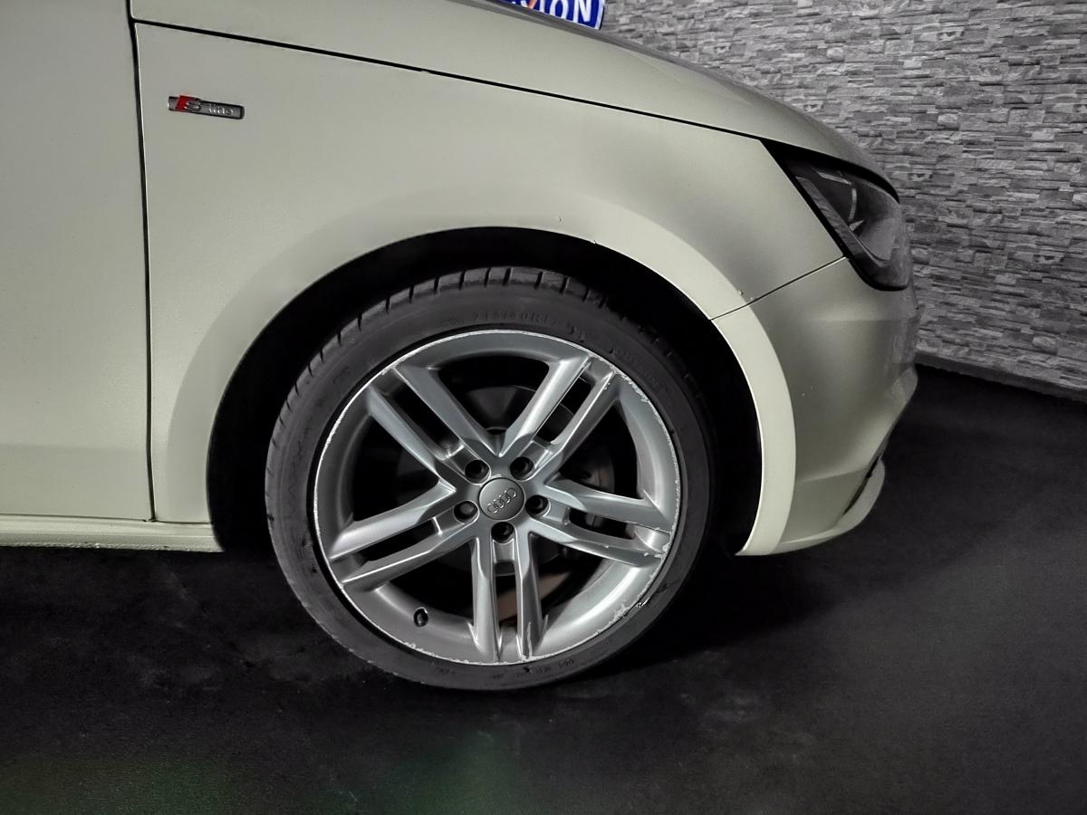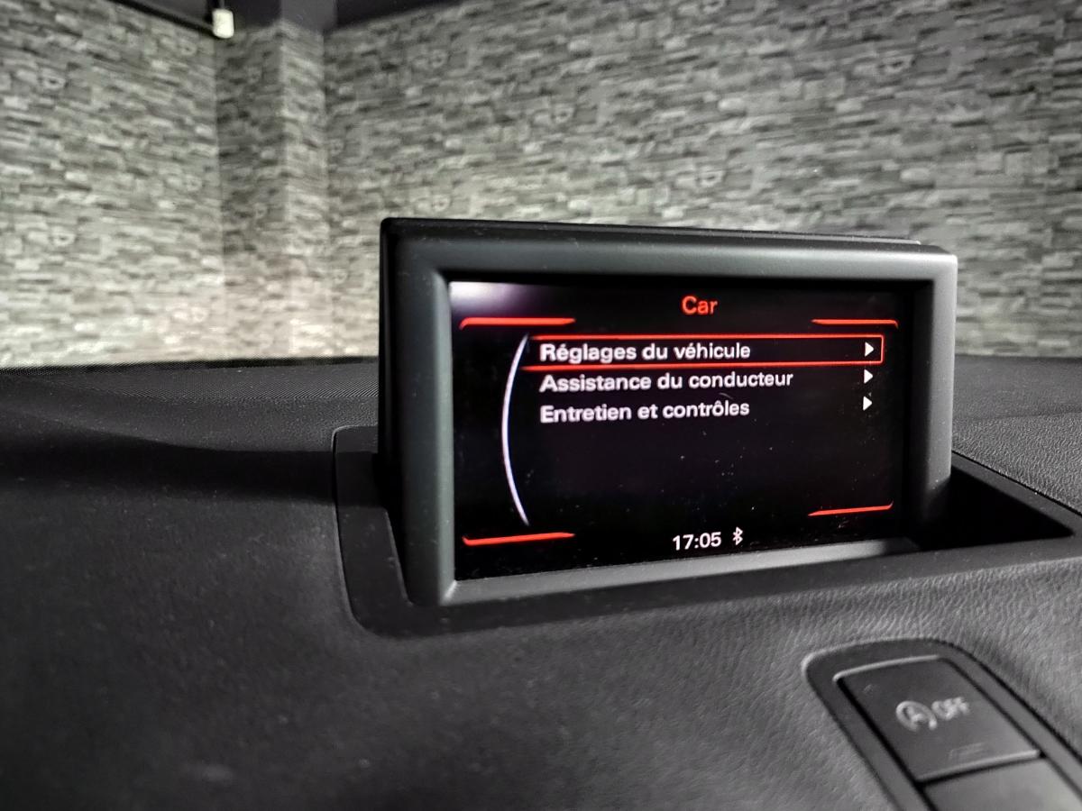 Airbags grand volume pour le conducteur et le passager avantAirbags latéraux à l'avant intégrés dans les dossiers des sièges à l'avantAllume-cigare et cendrier sur la console centrale à l'avantAntipatinage ASR pour une motricité optimale : empêche le patinage des roues motricesAppuis-tête, réglables à l'avant et à l'arrièreAutoradio Concert, incluant lecteur CD compatible MP3/WMA et AACBlocage électronique du différentiel EDS, aide au démarrage, freine automatiquement les roues motrices sur route glissante et inégalement adhérente, assurant ainsi une excellente motricitéBoîte à gants côté passager avant, grand volume, avec éclairageBoîtiers de rétroviseurs extérieurs couleur carrosserieCache-bagages amovibleCarrosserie galvanisée (entièrement galvanisée aux endroits sensibles à la corrosion), autoportante, soudée au groupe-plancher, zones de déformation défi nies à l'avant et à l'arrière (12 ans de garantie contre la corrosCeintures de sécurité, trois points automatiques pour toutes les places, à l'avant avec réglage en hauteur et prétensionneurs pyrotechniques ; limiteurs de tension sur toutes les placesChâssis DynamiqueChâssis Sport avec suspension et amortissement fermes pour un contact plus direct avec la route et un comportement sportifCiel de pavillon en tissu noirClignotants avec fonction autoroute : une brève impulsion sur le comodo active 3 cycles de clignotementClimatisation automatique "Confort"Colonne de direction de sécurité, compléte le potentiel de protection de la ceinture de sécurité et des airbagsConsole centrale avec 2 porte-boissons et vide-poches complémentaireContact d'allumage électronique ; clé de contact pouvant mémoriser différentes données d'entretienContrôle de ceinture attachée pour toutes les placesContrôle de la pression des pneusContre-portes avec partie centrale en tissu et accoudoir intégréCric, dans le coffreDétecteur de pluie et de luminosité incluant bande grise dans la partie supérieure du pare-briseDirection assistée particulièrement sportive et directeDossier de banquette arrière rabattable en deux parties , 1/3, 2/3 ou complétementEclairage intérieur, à temporisation avec contacteurs sur toutes les portières ; éclairage du coff re, du côté conducteur, du passager avant et des places arrièreEcran central avec éclairage réglableEmbout(s) d'échappement chromé(s)Entourages de diffuseurs d'air noir brillantESP avec blocage transversal électroniqueEssuie-glace deux vitessesFeux arrière rouges, feux de recul blancs, avec feux de brouillard arrière et design d'éclairage innovantFeux de freinage adaptatifs, les feux de détresse clignotent en cas de freinage d'urgence afin de prévenir les voitures qui suivent. Activation des feux de détresse en cas d'arrêtFeux stop et feux arrière à LED et nouveau design tridimensionnelFixations ISOFIX à l'arrièreInscription “S line” sur les ailes avantInscription S line et becquet arrière surdimensionnéJantes en aluminium coulé Audi exclusive style 5 branches doubles,7,5 J x 17", avec pneus 215/40 R17Lève-vitres électriques, avec protection anti pincement, ouverture/fermeture confort par le verrouillage centralisé, fonction ouverture/fermeture par impulsionLave-phares haute pressionLunette arrière dégivrante, avec minuterie ; chauffage supplémentaire de l'extrémité inférieure de l'essuie-glace arrièreMoquette en velours de couleur assortie à celle de l'habitacleOeilletons de fixation, quatre dans le coffre, pour maintenir les bagages et objets dans le coffre, points de fixation pour le filet mixte en optionOrdinateur de bord avec écran blanc TFT monochrome de 3,5 poucesOutillage de bord dans le coffrePack Éclairage intérieur à LEDPack aluminiumPare-soleil rabattables et pivotants, côtés conducteur et passager avant, avec miroir de courtoisie occultablePhares halogènes à surfaces libres sous vitre transparente, réglage électrique du site des phares et commande de feux de stationnement, feux diurnesPoignées de maintien, avec mécanisme amortisseur, rabattables, encastrées dans le pavillonPommeau de levier de vitesses en cuir perforéPrise de courant 12 Volts sur la console centraleProjecteurs antibrouillard avantProjecteurs Xénon Plus avec feux de jour à LED, incluant feux stop et feux arrière à LED et nouveau design tridimensionnelProtection antidémarrage électronique, intégrée à la gestion du moteur ; activation automatique par la clé du véhiculeProtection latérale anticollision avec barres extrêment rigides dans les portières et une structure latérale de carrosserie renforcée, particulièrement dans les montants de pavillon centraux et les seuils de portièresRécupération en augmentant la tension du générateur, l'énergie cinétique est convertie en énergie électrique utilisable durant les phases de décélération ou de freinageRétroviseur intérieur automatique jour/nuitRétroviseurs extérieurs électriqueRétroviseurs extérieurs dégivrants et escamotables ; buses de lave-glace chauffantesRétroviseurs extérieurs de couleur carrosserieRétroviseurs extérieurs en plastique noir mat avec clignotants à diodes intégrés, réglables électriquement, miroir asphériqueSellerie mixte en cuir et tissu Sprint avec estampillage S lineSet de réparation pour pneus avec compresseur 12 volts et produit de colmatage pour les pneus, vitesse maximale 80 km/hSeuils de portes en aluminium avec inscription S lineSiège passager avant réglable en hauteur + fonction « Easy entry »Sièges Sport à l'avant avec bourrelets latéraux fortement marqués assurant un meilleur maintien dans les viragesSingleframe, calandre monobloc avec anneaux Audi anodisés au centreSorties d'échappement à gauche visible doubleSuspension sportSystème d'appuie-tête intégralSystème de ventilation et chauffage réglable sur quatre niveauxSystème Start/Stop réduit la consommation de carburant ainsi que les 