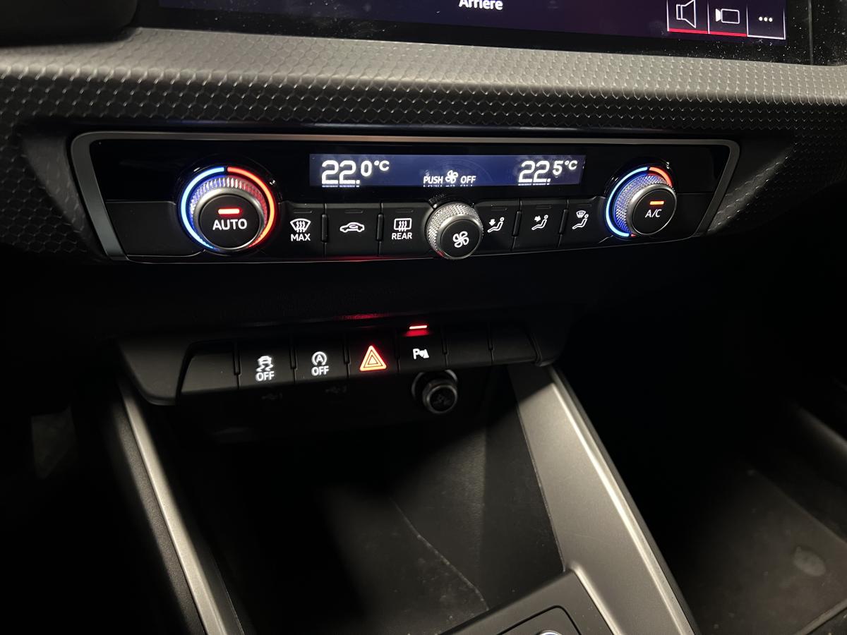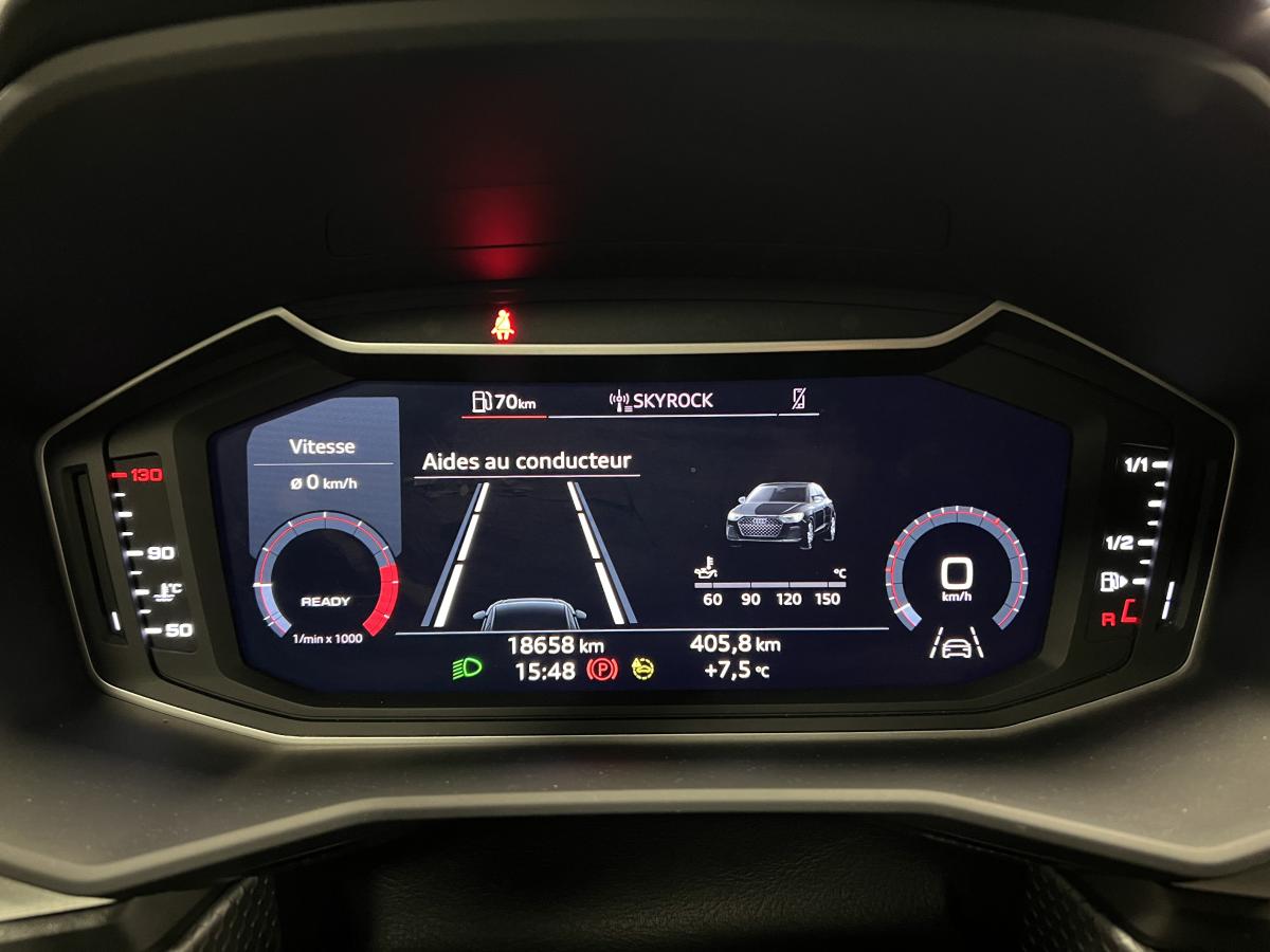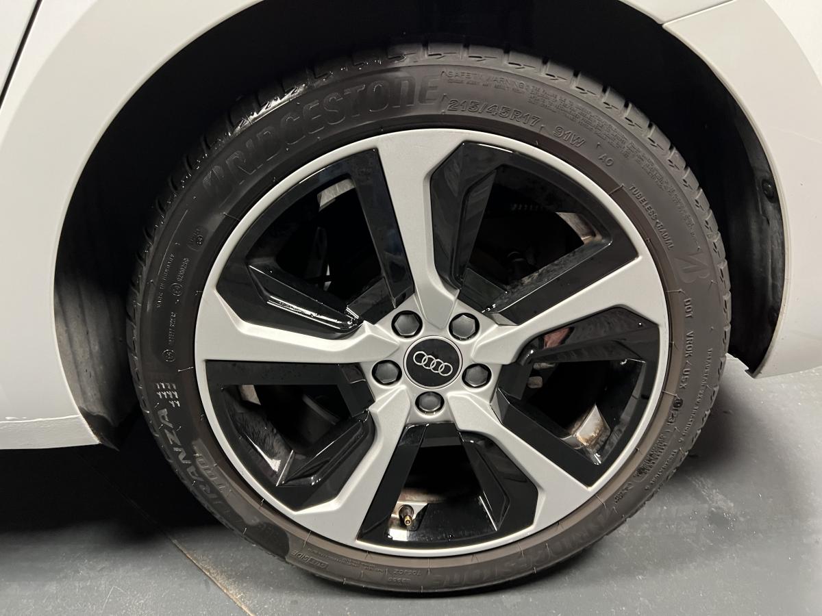 Affichage du contrôle de la pression des pneumatiquesAirbags latéraux à l'avant et système d'airbags de têteAppel d’urgence Audi connectApplications décoratives étendues en laque quartz gris structuréApplications décoratives étendues sur le tableau de bord façon verre en noirApplications décoratives structure polygone en laque diamant Gris ArgentAudi connect sécurité et assistance en ligneAudi parking system à l'arrièreAudi pre sense frontAudi smartphone interfaceAudi virtual cockpitAvertisseur de franchissement de ligneBadges S line sur les ailes avantBanquette AR fractionnable 60/40 ou entièrement rabattableBarrette du diffuseur arrière Gris Platine matBas de caisse couleur carrosserieBecquet de pavillon S lineBoîtiers de rétroviseurs extérieurs noirs mat avec teinte Blanc CortinaCalandre en noir mat grainéChâssis standardCiel de pavillon en tissu noirClé à fréquence radioClignotants LED intégrés dans les rétroviseursClimatisation automatique confort 2 zonesDétecteur de pluie et de luminositéDétection d'occupation des sièges et du port de la ceinture de sécuritéDiffuseur à l’arrière en Noir Titane matEclairage intérieurEncadrement de calandre en Argent Aluminium matEncadrement des prises d’air latérales en Noir TitaneEssuie vitre AR avec intermittenceFeux de brouillard ARGrille de diffuseur arrière Noir Titane matInterface BluetoothInterface USB de type A pour le chargement d’appareils externes uniquementJantes en aluminium coulé style 5 branches dynamiques, 6,5 J x 16" avec pneus 195/55 R 16Lame de pare-chocs avant en Gris Platine matLève-vitres électriques à l'avant et à l'arrièreLèvres de becquet latérales à l’avant en noir mat grainéLimiteur de vitesseMMI Radio PlusMoulures de seuil avec insert en aluminium à l’avantPare-brise en verre athermique avec bande grisePare-chocs avant et arrière S LinePédalier en acier inoxydablePeinture vernie Blanc CortinaPhares et feux arrière à LED avec clignotants dynamiques à l'arrièrePoignée de frein à main en plastiquePommeau de levier de vitesses en cuir perforéPrises d’air latérales à l’avant en noir mat grainéRégulateur de vitesseRétroviseur intérieur jour/nuit automatiqueRétroviseurs extérieurs électriques et dégivrants incluant buses de lave-glaces dégivrantesSet de réparations pour pneusSièges avant réglables en hauteurSièges Sport cuir/tissu avec surpiqûre contrastée et estampillage S sur le dossier des sièges avantStyle aluminium à l’intérieurSurpiqûres contrastées en argent finTapis complémentaires à l’avant et à l’arrière avec surpiqûres contrastéesTapis de sol avant et arrièreTrousse de secours avec triangle de présignalisationVitres athermiquesVolant 3 branches multifonction plus en cuir