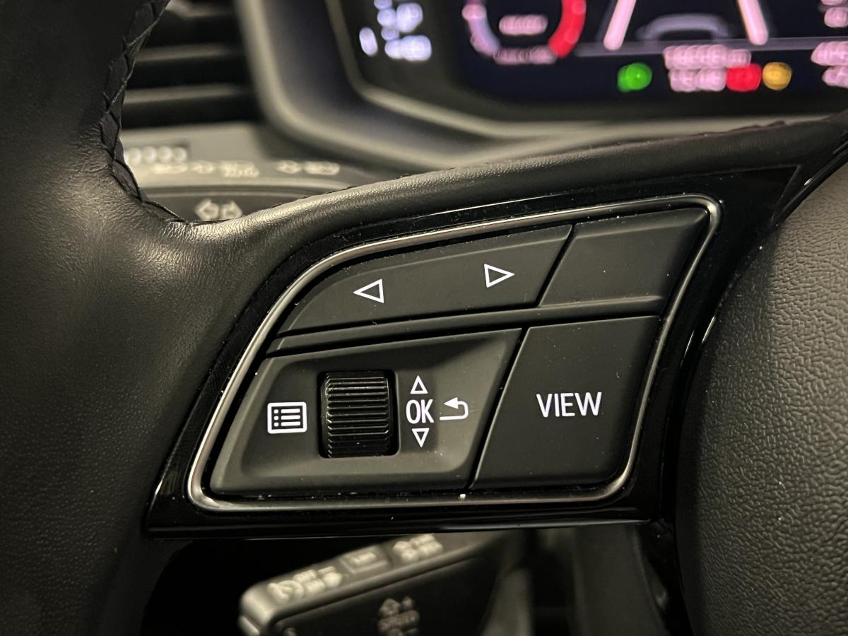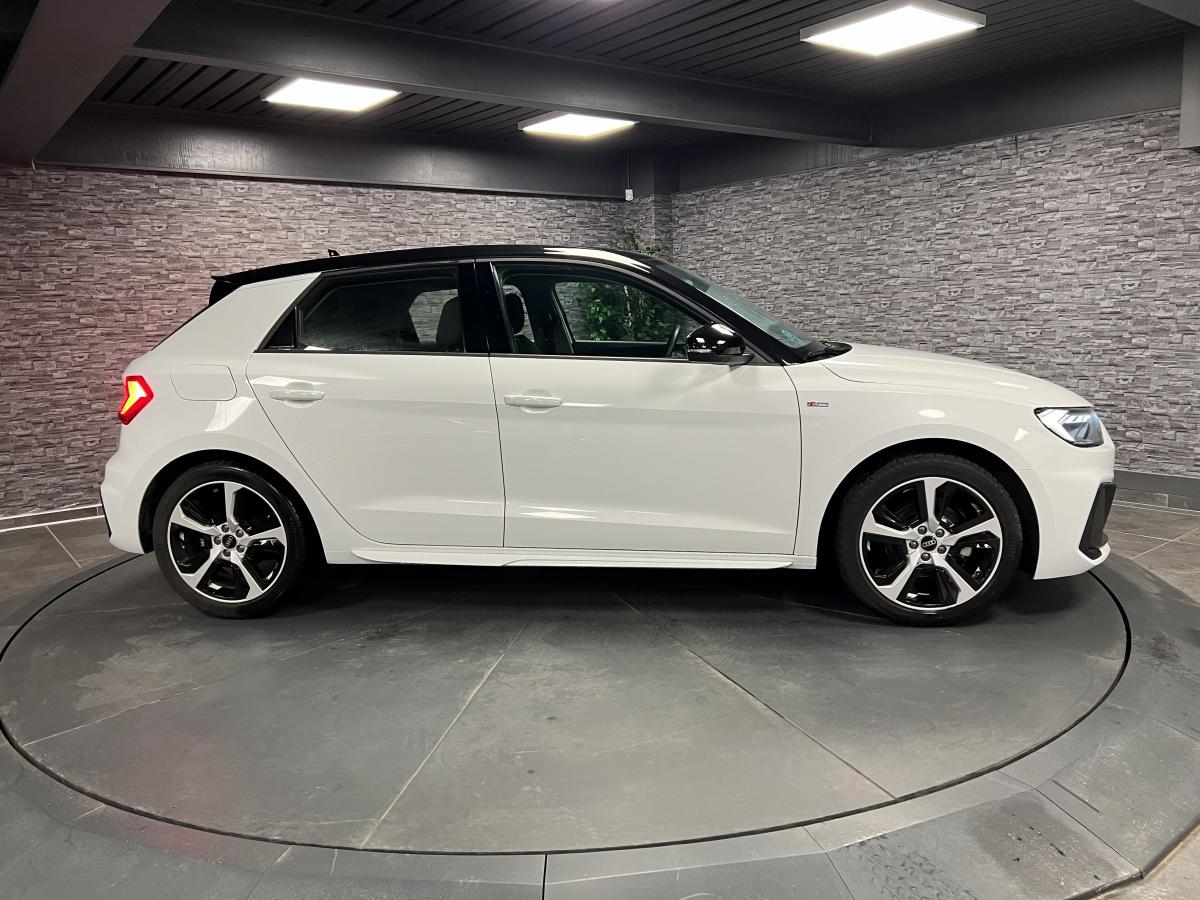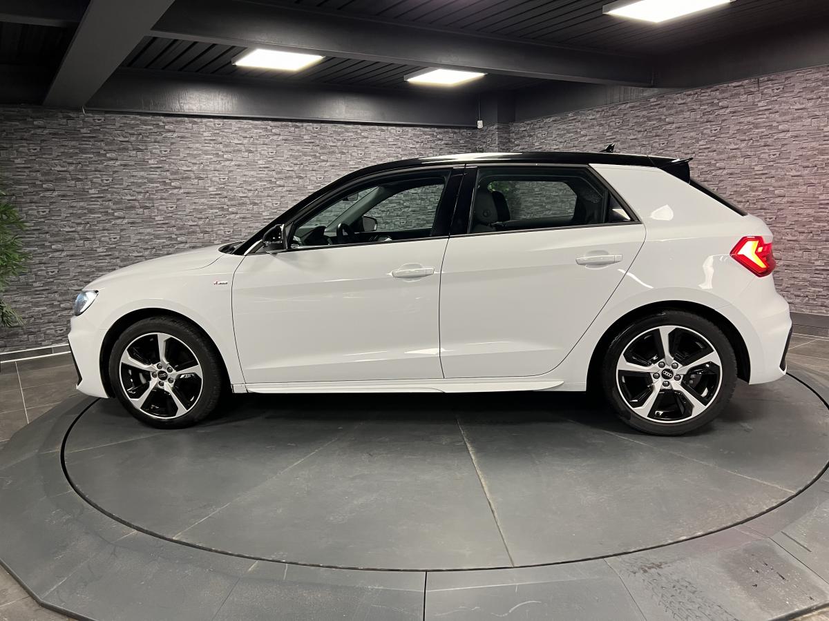 Affichage du contrôle de la pression des pneumatiquesAirbags latéraux à l'avant et système d'airbags de têteAppel d’urgence Audi connectApplications décoratives étendues en laque quartz gris structuréApplications décoratives étendues sur le tableau de bord façon verre en noirApplications décoratives structure polygone en laque diamant Gris ArgentAudi connect sécurité et assistance en ligneAudi parking system à l'arrièreAudi pre sense frontAudi smartphone interfaceAudi virtual cockpitAvertisseur de franchissement de ligneBadges S line sur les ailes avantBanquette AR fractionnable 60/40 ou entièrement rabattableBarrette du diffuseur arrière Gris Platine matBas de caisse couleur carrosserieBecquet de pavillon S lineBoîtiers de rétroviseurs extérieurs noirs mat avec teinte Blanc CortinaCalandre en noir mat grainéChâssis standardCiel de pavillon en tissu noirClé à fréquence radioClignotants LED intégrés dans les rétroviseursClimatisation automatique confort 2 zonesDétecteur de pluie et de luminositéDétection d'occupation des sièges et du port de la ceinture de sécuritéDiffuseur à l’arrière en Noir Titane matEclairage intérieurEncadrement de calandre en Argent Aluminium matEncadrement des prises d’air latérales en Noir TitaneEssuie vitre AR avec intermittenceFeux de brouillard ARGrille de diffuseur arrière Noir Titane matInterface BluetoothInterface USB de type A pour le chargement d’appareils externes uniquementJantes en aluminium coulé style 5 branches dynamiques, 6,5 J x 16" avec pneus 195/55 R 16Lame de pare-chocs avant en Gris Platine matLève-vitres électriques à l'avant et à l'arrièreLèvres de becquet latérales à l’avant en noir mat grainéLimiteur de vitesseMMI Radio PlusMoulures de seuil avec insert en aluminium à l’avantPare-brise en verre athermique avec bande grisePare-chocs avant et arrière S LinePédalier en acier inoxydablePeinture vernie Blanc CortinaPhares et feux arrière à LED avec clignotants dynamiques à l'arrièrePoignée de frein à main en plastiquePommeau de levier de vitesses en cuir perforéPrises d’air latérales à l’avant en noir mat grainéRégulateur de vitesseRétroviseur intérieur jour/nuit automatiqueRétroviseurs extérieurs électriques et dégivrants incluant buses de lave-glaces dégivrantesSet de réparations pour pneusSièges avant réglables en hauteurSièges Sport cuir/tissu avec surpiqûre contrastée et estampillage S sur le dossier des sièges avantStyle aluminium à l’intérieurSurpiqûres contrastées en argent finTapis complémentaires à l’avant et à l’arrière avec surpiqûres contrastéesTapis de sol avant et arrièreTrousse de secours avec triangle de présignalisationVitres athermiquesVolant 3 branches multifonction plus en cuir