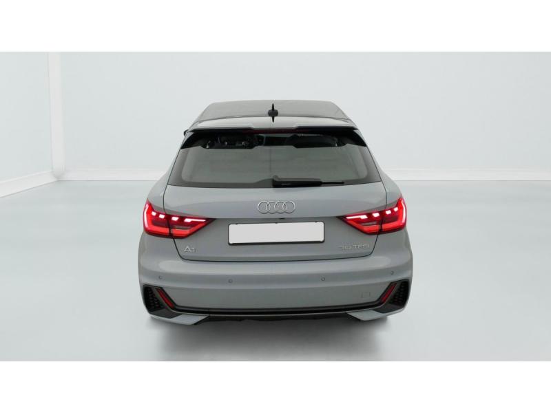 Accoudoir central AVAccoudoirs de portières en matériaux synthétiques AVAffichage de contrôle de pression des pneusAirbags latéraux à l'AV et système d'airbags de têteAppel d'urgence Audi connect et servicesApplications décoratives étendues en laque diamant Gris Argent dans l'insert du diffuseur d'air et de la console centrale ainsi que dans la poignée de la commande intérieure de verrouillage des portièresApplications décoratives étendues sur le tableau de bord façon verre en noir, de l'écran couleur MMI touch jusqu'aux triangles de portières AV façon verre en noirApplications décoratives structure polygone en laque fine ArdoiseArches de toit et pavillon de couleur uniAudi Pre Sense frontAudi Smartphone InterfaceAvertissement de franchissement de ligneCalandre en Noir TitaneChâssis standardCiel de pavillon en tissu Gris TitaneClimatisation automatique confort 2 zonesDétecteur d'occupation des siègesDétecteur de pluie et de luminositéDiffuseur AR en noir titane matDossier de banquette AR rabattableEncadrement de calandre en Argent Aluminium matEssuie-glace AR à intermittenceFeux AR rougesFeux de brouillard ARInterface BluetoothInterface USB de type ALève-vitres électriques à l'AV et à l'ARLèvres de becquet latérales à l'AV en noir mat grainéMMI Radio plusMoulures de seuil avec insert en aluminium à l'AVPare-brise en verre athermique [4GF]Phares et feux AR à LED, avec clignotants dynamiques à ARPréparation pour la navigation MMI plus et Audi virtual cockpitPrises d'air latérales à l'AV en noir mat grainé avec encadrement C en Noir TitaneRégulateur de vitesse et limiteur de vitesseRétroviseur intérieur jour/nuit manuelRétroviseurs extérieurs réglables, dégivrants et rabattables électriquementSellerie tissu Derby pour sièges sport à l'AV Noir / Gris ZV [N2T]Set de réparation pour pneusSièges AV sportSièges conducteur et passager AV réglables en hauteurSystème de lecture des panneaux de signalisation par caméraVitres athermiques