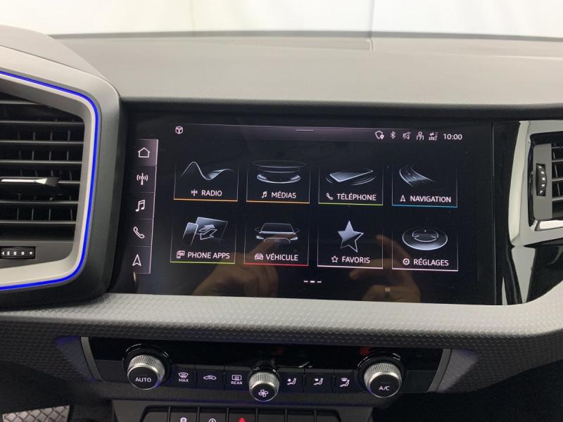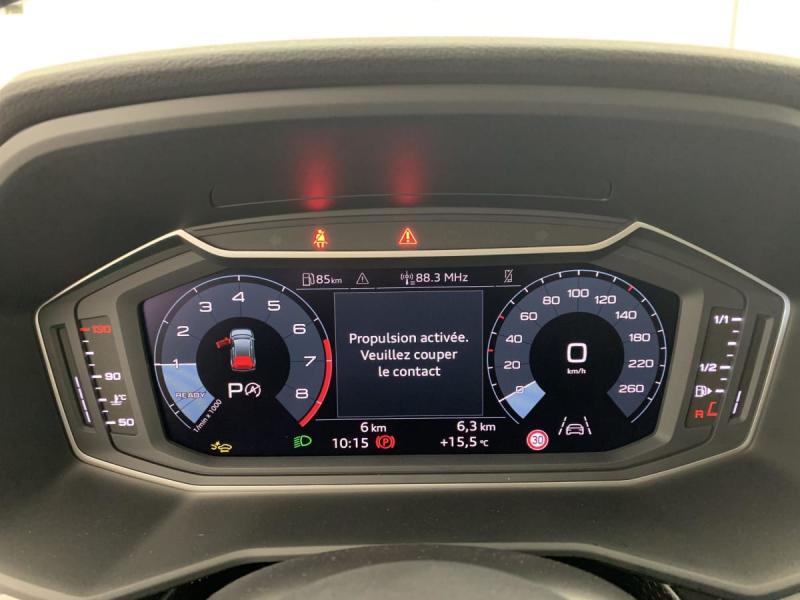Accoudoir central AVAccoudoirs de portières en matériaux synthétiques AVAffichage de contrôle de pression des pneusAirbags latéraux à l'AV et système d'airbags de têteApplications décoratives étendues en laque diamant Gris Argent dans l'insert du diffuseur d'air et de la console centrale ainsi que dans la poignée de la commande intérieure de verrouillage des portièresApplications décoratives étendues sur le tableau de bord façon verre en noir, de l'écran couleur MMI touch jusqu'aux triangles de portières AV façon verre en noirApplications décoratives structure polygone en laque fine ArdoiseArches de toit et pavillon de couleur uniAssistant de démarrage en côte (Audi Hill Hold Assist)Audi Pre Sense frontAudi Smartphone InterfaceAvertissement de franchissement de ligneCiel de pavillon en tissu Gris TitaneClimatisation automatique confort 2 zonesDétecteur de pluie et de luminositéDossier de banquette AR rabattableFeux de brouillard ARInterface BluetoothInterface USB de type CLève-vitres électriques à l'AV et à l'ARLimiteur de vitesseMoulures de seuil avec insert en aluminium à l'AVPhares et feux AR à LED, avec clignotants dynamiques à ARPréparation pour la navigation MMI plus et Audi virtual cockpitRégulateur de vitesseRétroviseur intérieur jour/nuit manuelRétroviseurs extérieurs réglables électriquement et dégivrants [6XD]Sellerie tissu Novum pour sièges sport à l'AVSet de réparation pour pneusSièges AV sportSièges conducteur et passager AV réglables en hauteurSystème de lecture des panneaux de signalisation par caméraVitres athermiques