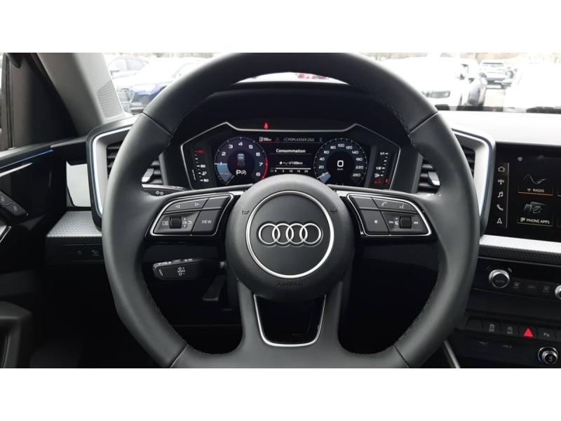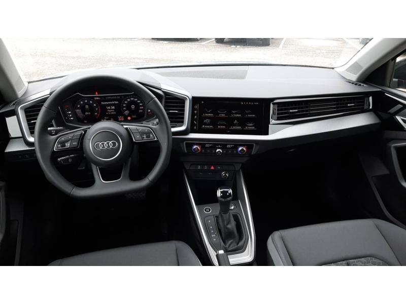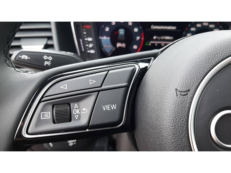Accoudoir central AVAccoudoirs de portières en matériaux synthétiques AVAffichage de contrôle de pression des pneusAirbags latéraux à l'AV et système d'airbags de têteApplications décoratives étendues en laque diamant Gris Argent dans l'insert du diffuseur d'air et de la console centrale ainsi que dans la poignée de la commande intérieure de verrouillage des portièresApplications décoratives étendues sur le tableau de bord façon verre en noir, de l'écran couleur MMI touch jusqu'aux triangles de portières AV façon verre en noirApplications décoratives structure polygone en laque fine ArdoiseArches de toit et pavillon de couleur uniAssistant de démarrage en côte (Audi Hill Hold Assist)Audi Pre Sense frontAudi Smartphone InterfaceAvertissement de franchissement de ligneCiel de pavillon en tissu Gris TitaneClimatisation automatique confort 2 zonesDétecteur de pluie et de luminositéDossier de banquette AR rabattableFeux de brouillard ARInterface BluetoothLève-vitres électriques à l'AV et à l'ARLimiteur de vitesseMoulures de seuil avec insert en aluminium à l'AVPhares et feux AR à LED, avec clignotants dynamiques à ARPréparation pour la navigation MMI plus et Audi virtual cockpitRégulateur de vitesseRétroviseur intérieur jour/nuit manuelRétroviseurs extérieurs réglables électriquement et dégivrants [6XD]Sellerie tissu Novum pour sièges sport à l'AVSet de réparation pour pneusSièges AV sportSièges conducteur et passager AV réglables en hauteurSystème de lecture des panneaux de signalisation par caméraVitres athermiques
