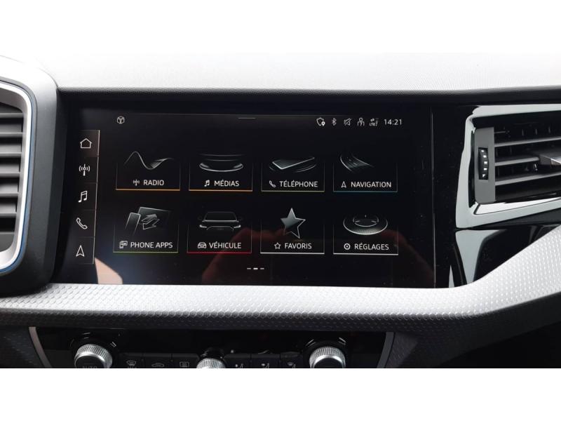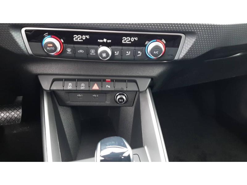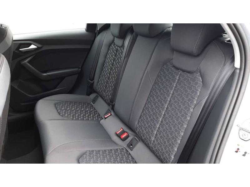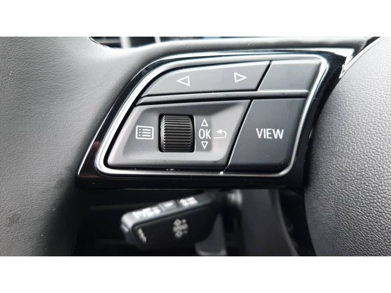 Accoudoir central AVAccoudoirs de portières en matériaux synthétiques AVAffichage de contrôle de pression des pneusAirbags latéraux à l'AV et système d'airbags de têteApplications décoratives étendues en laque diamant Gris Argent dans l'insert du diffuseur d'air et de la console centrale ainsi que dans la poignée de la commande intérieure de verrouillage des portièresApplications décoratives étendues sur le tableau de bord façon verre en noir, de l'écran couleur MMI touch jusqu'aux triangles de portières AV façon verre en noirApplications décoratives structure polygone en laque fine ArdoiseArches de toit et pavillon de couleur uniAssistant de démarrage en côte (Audi Hill Hold Assist)Audi Pre Sense frontAudi Smartphone InterfaceAvertissement de franchissement de ligneCiel de pavillon en tissu Gris TitaneClimatisation automatique confort 2 zonesDétecteur de pluie et de luminositéDossier de banquette AR rabattableFeux de brouillard ARInterface BluetoothLève-vitres électriques à l'AV et à l'ARLimiteur de vitesseMoulures de seuil avec insert en aluminium à l'AVPhares et feux AR à LED, avec clignotants dynamiques à ARPréparation pour la navigation MMI plus et Audi virtual cockpitRégulateur de vitesseRétroviseur intérieur jour/nuit manuelRétroviseurs extérieurs réglables électriquement et dégivrants [6XD]Sellerie tissu Novum pour sièges sport à l'AVSet de réparation pour pneusSièges AV sportSièges conducteur et passager AV réglables en hauteurSystème de lecture des panneaux de signalisation par caméraVitres athermiques