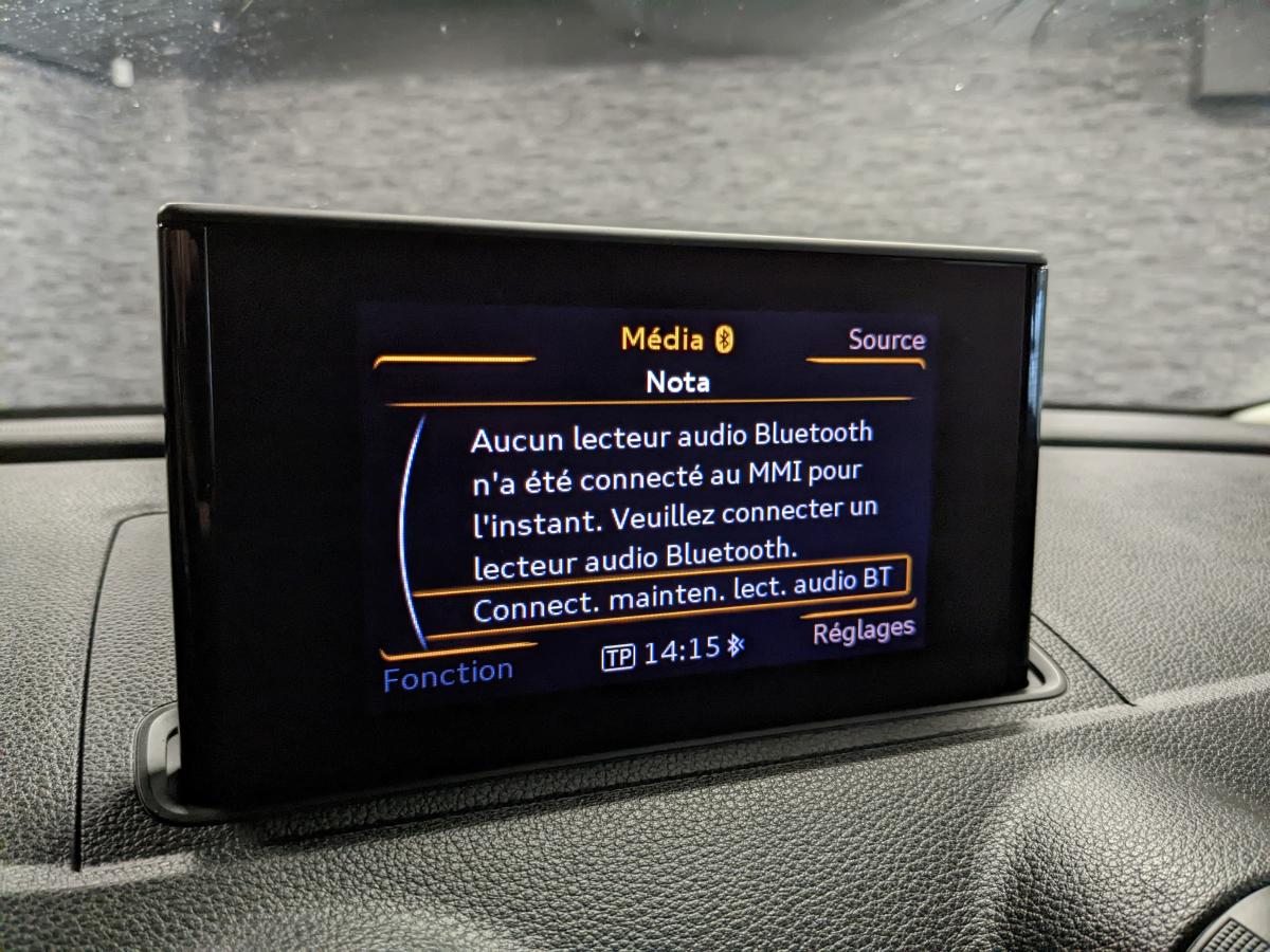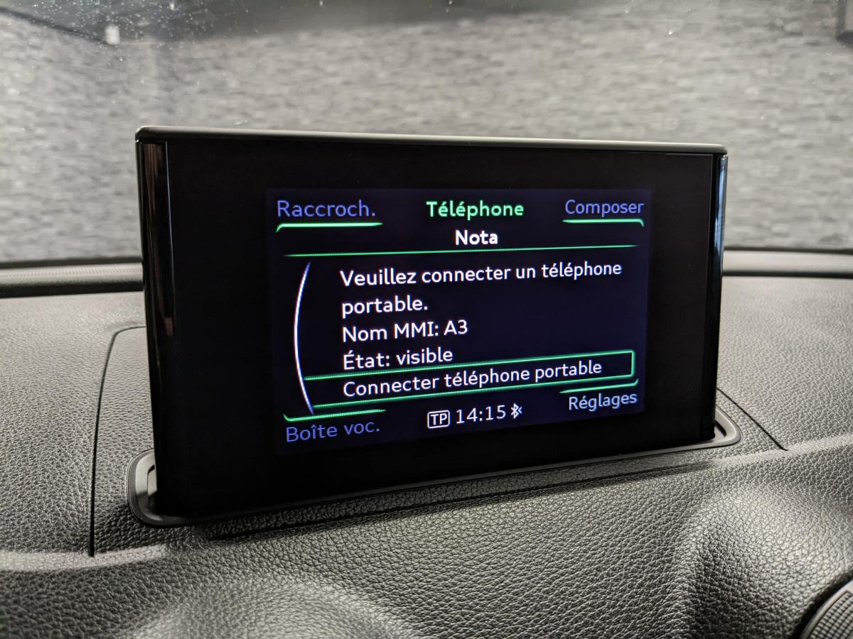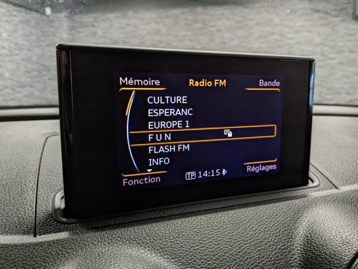 Accès confort : fonction étendue de basculement des sièges avant permettant un accès facile aux places arrièreAccoudoir central avant, avec vide-poches relevable, inclinaison réglable et coulissant en longueurAirbag de genoux coté conducteurAirbags grand volume pour le conducteur et le passager avantAirbags latéraux à l'avant intégrés au dossier des siègesAllume cigare et cendrier amovibleAntipatinage (ASR)Applications décoratives sur les contre-portes et tableau de bord "Au vent 3D"Audi Parking SystemAudi Singleframe avec encadrement chromé de la calandreBecquet de pavillon laqué dans la couleur de la carrosserie, avec inserts aérodynamiques latéraux noir brillantBlocage électronique de différentiel (EDS)Boîte à gants grand volume côté passager avant, éclairéeCache-bagages amovibleCarrosserie galvaniséeCeintures de sécurité 3 points automatiques pour toutes les placesChâssis dynamique. À l'avant : suspension Mc-Pherson avec bras triangulés transversaux inférieurs, châssis auxiliaire en aluminium et barre stabilisatrice. À l'arrière : essieu arrière à quatre bras avec système d'amoClimatisation automatique Confort avec réglage asservi à la position du soleilContrôle électronique de stabilisation (ESC) avec blocage transversal électroniqueContrôle électronique de stabilisation (ESC) désactivable, avec amplificateur hydraulique de freinage d'urgenceContrôle de ceinture attachée pour toutes les placesContrôle de la pression des pneusDétecteur de pluie et de luminositéDirection assistée électromécanique avec assistance asservie à la vitesse (servotronic)Dossier de banquette arrière rabattable en deux parties 40/60 ou complètementEclairage intérieur à l'avant et à l'arrièreEcrous de roues antivolFeux arrière avec feux de recul blancs et feux de brouillard arrière, incluant troisième feu stop surélevé et éclairage de plaque à LEDFeux de freinage adaptatifsFixation pour sièges enfants ISOFIX et Top Tether pour les places arrièreIdentification du modèle/technologie sur le capot de coffreJantes en aluminium coulé style 15 branches en Y. 7J x 16" avec pneus 205/55 R 16Lève-vitres à l'avant, électriques, avec protection antipincement, ouverture/fermeture par le verrouillage centralisé, fonction ouverture/fermeture par impulsionLave-essuie-glace 2 vitesses, 4 intervalles de balayage réglablesLunette arrière dégivrante, avec minuterieMiroir de courtoisie côté conducteur et passagerMMI RadioMoulures des seuils de portes noiresOEilletons de fixation, 4 dans le coffre, pour maintenir les bagages et objets dans le coffre, points de fixation pour le filet mixte en optionOutillage de bord dans le coffre incluant un cricPack ConnectivityPack EclairagePare-brise acoustique, améliore l'isolation phonique du pare-brise et réduit les bruits extérieursPare-chocs dans la couleur de la carrosseriePare-soleil rabattables et pivotants, côtés conducteur et passager avant, avec miroir de courtoisie occultablePatères à vêtements sur les montants de pavillon centraux, à gauche et à droite, simplesPhares antibrouillard halogènes, intégrés à la jupe avantPhares halogènes à surfaces libres sous vitre transparente, réglage électrique du site des phares et commande de feux de stationnement, feux diurnesPoignées de maintien. 4 poignées avec mécanisme amortisseur, rabattables, encastrées dans le pavillonPrise de courant 12 volts sur la console centrale à l'avantProtection antidémarrage électronique, intégrée à la gestion du moteur ; activation automatique par la clé du véhiculeProtection latérale anticollision avec barres extrêmement rigidesRégulateur de vitesseRétroviseur intérieur automatique jour/nuitRétroviseurs extérieurs électriques et dégivrants incluant buses de lave-glaces dégivrantesRétroviseurs extérieurs avec clignotants à LED intégrésRecommandation de repos qui analyse le comportement routier au moyen de différents capteursRoue de secours temporaire de type galetteSellerie tissu / simili-cuir Régate avec partie centrale des sièges en tissu RégateSièges à l'avant avec positionnement en longueur et inclinaison de dossier réglables manuellementSièges conducteur et passager avant réglables en hauteurSignal sonore pour oubli d'extinction des feuxSortie d'échappement simple chroméeSorties d'échappement doubles à gauche chroméesSystème d'airbags de têteSystème d'information du conducteur avec écran couleur haute résolution de 3,5 poucesSystème de freinage avec antiblocage (ABS) et répartiteur électronique de freinage (EBV)Système de ventilation et chauffage 4 diffuseurs d'air rondsTapis complémentaires à l'avant et à l'arrière assortis à la couleur de la moquetteTriangle de présignalisation fixé sur l'intérieur du capot du coffreTrousse de secours dans le vide-poches sous le siège passagerVerrouillage centralisé à télécommandeVide-poches sur les habillages des portières ainsi que sur la console centrale avec porte-boissonVolant en cuir multifonction 4 branchesVolant réglable en hauteur et en profondeur
