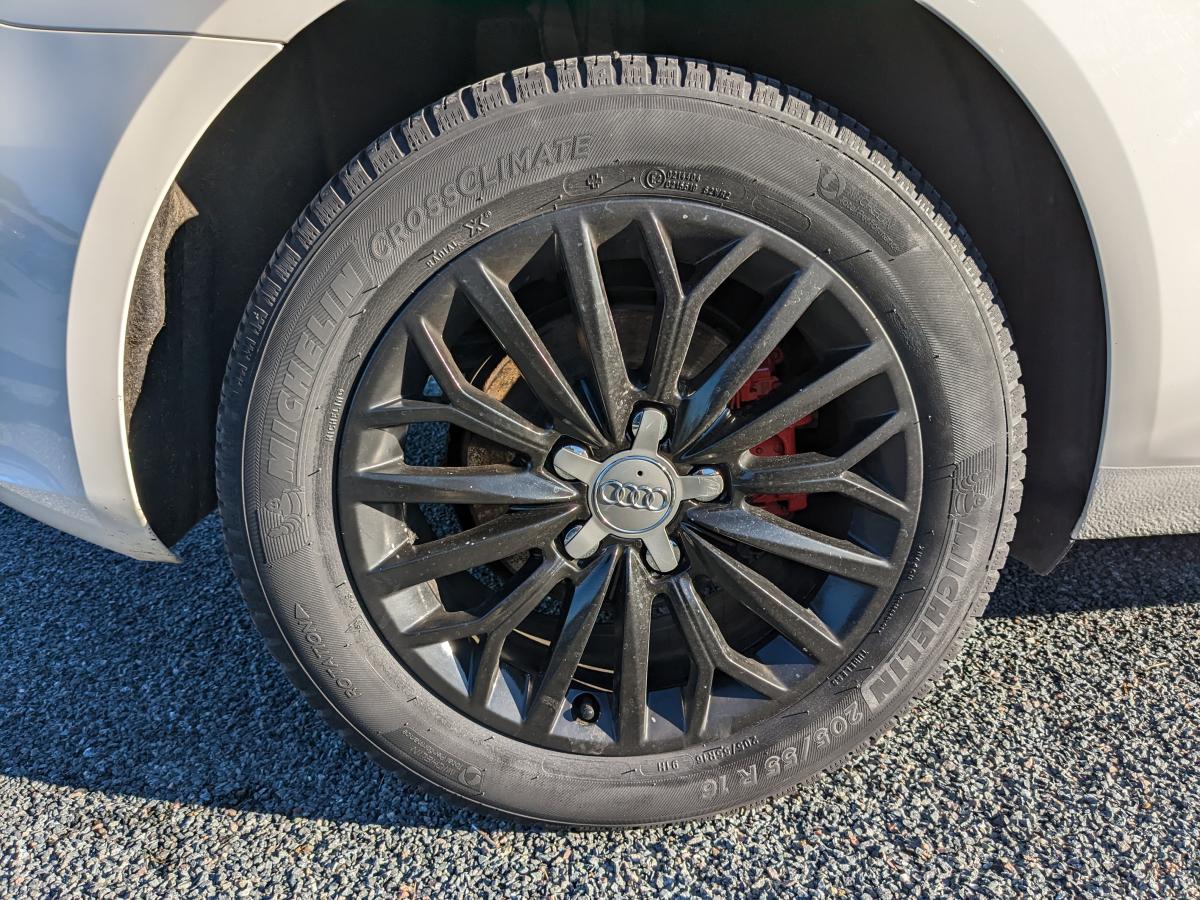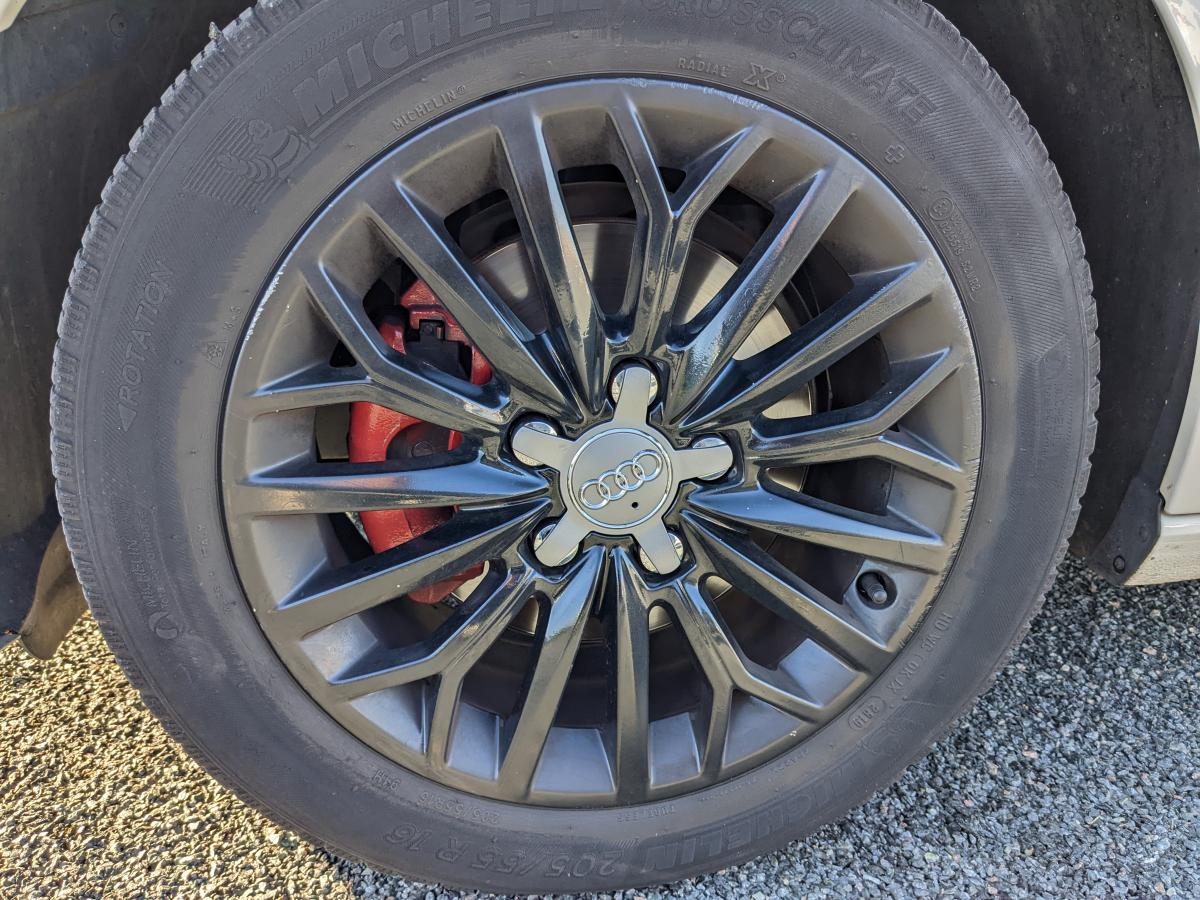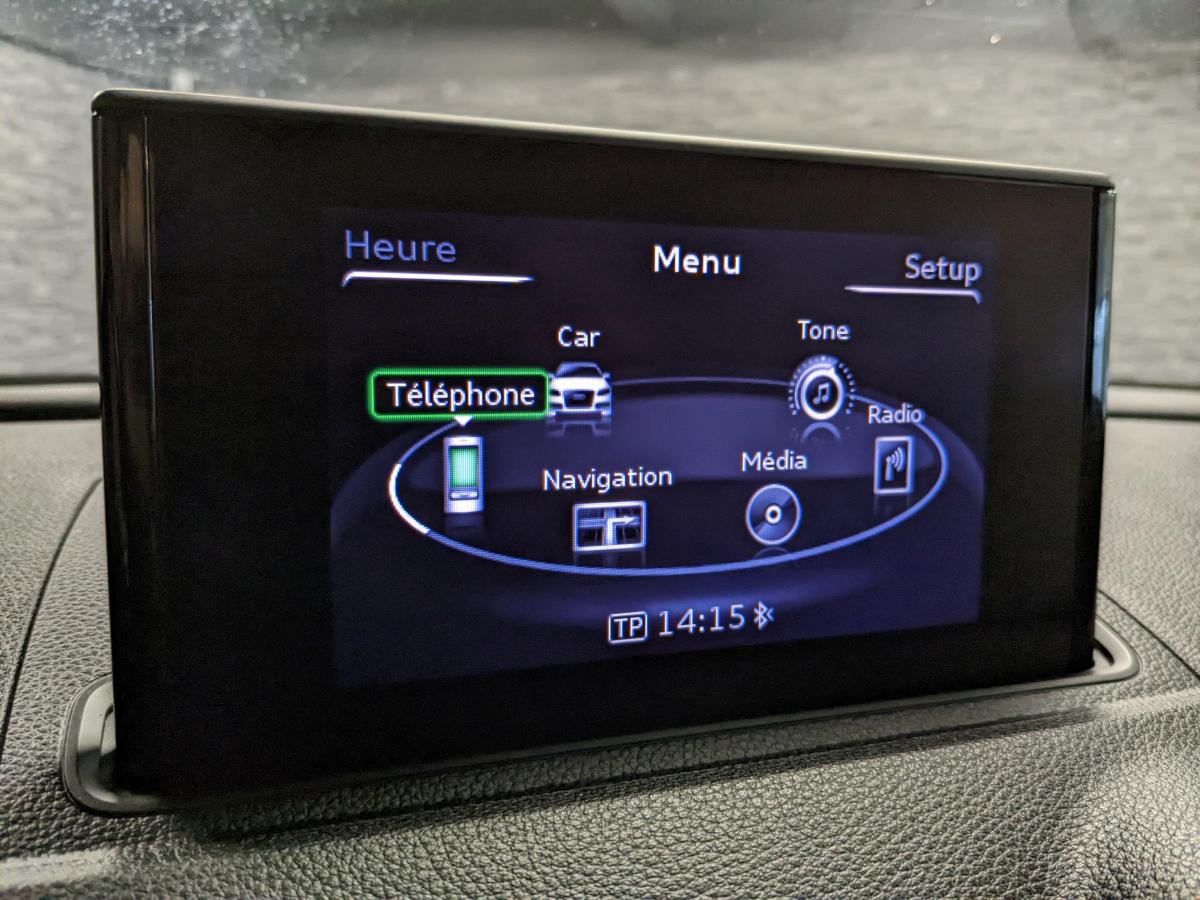 Accès confort : fonction étendue de basculement des sièges avant permettant un accès facile aux places arrièreAccoudoir central avant, avec vide-poches relevable, inclinaison réglable et coulissant en longueurAirbag de genoux coté conducteurAirbags grand volume pour le conducteur et le passager avantAirbags latéraux à l'avant intégrés au dossier des siègesAllume cigare et cendrier amovibleAntipatinage (ASR)Applications décoratives sur les contre-portes et tableau de bord "Au vent 3D"Audi Parking SystemAudi Singleframe avec encadrement chromé de la calandreBecquet de pavillon laqué dans la couleur de la carrosserie, avec inserts aérodynamiques latéraux noir brillantBlocage électronique de différentiel (EDS)Boîte à gants grand volume côté passager avant, éclairéeCache-bagages amovibleCarrosserie galvaniséeCeintures de sécurité 3 points automatiques pour toutes les placesChâssis dynamique. À l'avant : suspension Mc-Pherson avec bras triangulés transversaux inférieurs, châssis auxiliaire en aluminium et barre stabilisatrice. À l'arrière : essieu arrière à quatre bras avec système d'amoClimatisation automatique Confort avec réglage asservi à la position du soleilContrôle électronique de stabilisation (ESC) avec blocage transversal électroniqueContrôle électronique de stabilisation (ESC) désactivable, avec amplificateur hydraulique de freinage d'urgenceContrôle de ceinture attachée pour toutes les placesContrôle de la pression des pneusDétecteur de pluie et de luminositéDirection assistée électromécanique avec assistance asservie à la vitesse (servotronic)Dossier de banquette arrière rabattable en deux parties 40/60 ou complètementEclairage intérieur à l'avant et à l'arrièreEcrous de roues antivolFeux arrière avec feux de recul blancs et feux de brouillard arrière, incluant troisième feu stop surélevé et éclairage de plaque à LEDFeux de freinage adaptatifsFixation pour sièges enfants ISOFIX et Top Tether pour les places arrièreIdentification du modèle/technologie sur le capot de coffreJantes en aluminium coulé style 15 branches en Y. 7J x 16" avec pneus 205/55 R 16Lève-vitres à l'avant, électriques, avec protection antipincement, ouverture/fermeture par le verrouillage centralisé, fonction ouverture/fermeture par impulsionLave-essuie-glace 2 vitesses, 4 intervalles de balayage réglablesLunette arrière dégivrante, avec minuterieMiroir de courtoisie côté conducteur et passagerMMI RadioMoulures des seuils de portes noiresOEilletons de fixation, 4 dans le coffre, pour maintenir les bagages et objets dans le coffre, points de fixation pour le filet mixte en optionOutillage de bord dans le coffre incluant un cricPack ConnectivityPack EclairagePare-brise acoustique, améliore l'isolation phonique du pare-brise et réduit les bruits extérieursPare-chocs dans la couleur de la carrosseriePare-soleil rabattables et pivotants, côtés conducteur et passager avant, avec miroir de courtoisie occultablePatères à vêtements sur les montants de pavillon centraux, à gauche et à droite, simplesPhares antibrouillard halogènes, intégrés à la jupe avantPhares halogènes à surfaces libres sous vitre transparente, réglage électrique du site des phares et commande de feux de stationnement, feux diurnesPoignées de maintien. 4 poignées avec mécanisme amortisseur, rabattables, encastrées dans le pavillonPrise de courant 12 volts sur la console centrale à l'avantProtection antidémarrage électronique, intégrée à la gestion du moteur ; activation automatique par la clé du véhiculeProtection latérale anticollision avec barres extrêmement rigidesRégulateur de vitesseRétroviseur intérieur automatique jour/nuitRétroviseurs extérieurs électriques et dégivrants incluant buses de lave-glaces dégivrantesRétroviseurs extérieurs avec clignotants à LED intégrésRecommandation de repos qui analyse le comportement routier au moyen de différents capteursRoue de secours temporaire de type galetteSellerie tissu / simili-cuir Régate avec partie centrale des sièges en tissu RégateSièges à l'avant avec positionnement en longueur et inclinaison de dossier réglables manuellementSièges conducteur et passager avant réglables en hauteurSignal sonore pour oubli d'extinction des feuxSortie d'échappement simple chroméeSorties d'échappement doubles à gauche chroméesSystème d'airbags de têteSystème d'information du conducteur avec écran couleur haute résolution de 3,5 poucesSystème de freinage avec antiblocage (ABS) et répartiteur électronique de freinage (EBV)Système de ventilation et chauffage 4 diffuseurs d'air rondsTapis complémentaires à l'avant et à l'arrière assortis à la couleur de la moquetteTriangle de présignalisation fixé sur l'intérieur du capot du coffreTrousse de secours dans le vide-poches sous le siège passagerVerrouillage centralisé à télécommandeVide-poches sur les habillages des portières ainsi que sur la console centrale avec porte-boissonVolant en cuir multifonction 4 branchesVolant réglable en hauteur et en profondeur