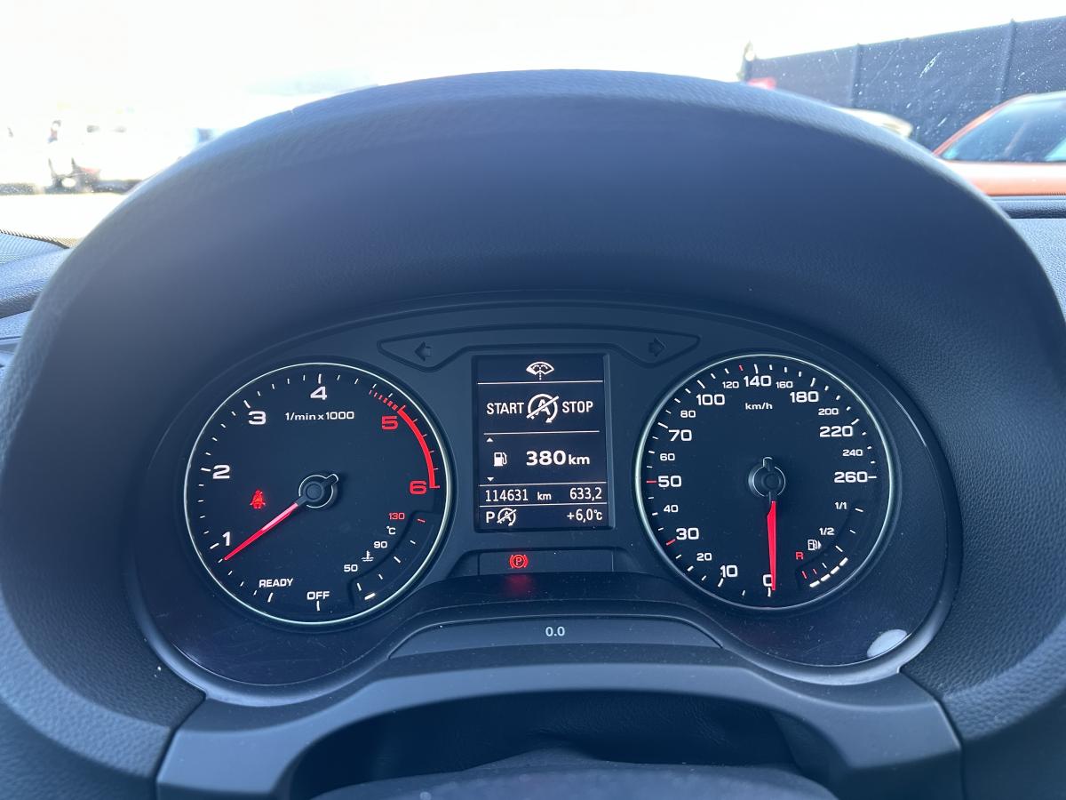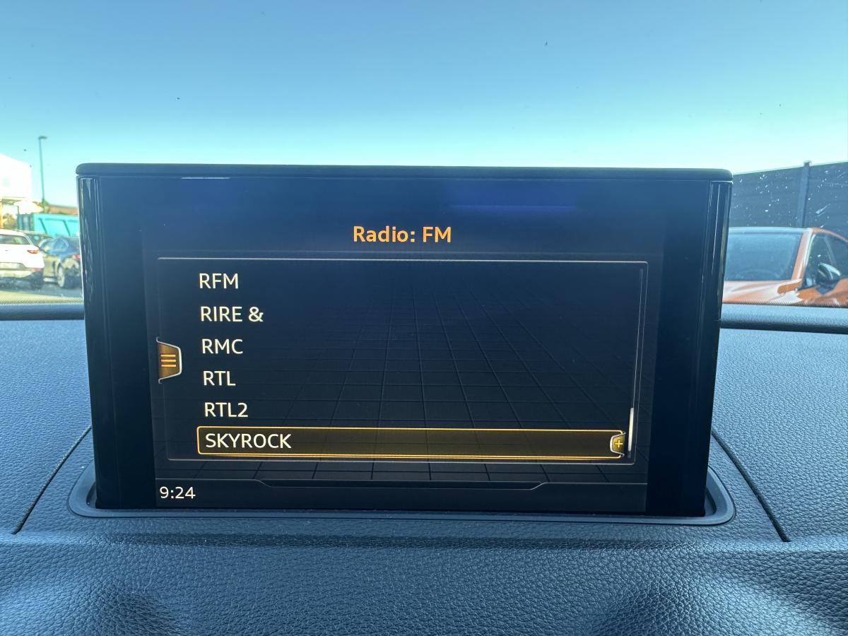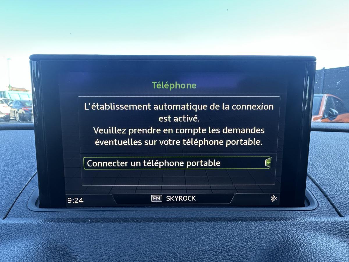 Accoudoir central avantAirbags conducteur et passagerAirbags latéraux avant thorax/bassin et têteApplications décoratives Argent micrométalliqueAppuie-tête intégraux à l'avant et à l'arrièreASR (antipatinage) pour une motricité et une rigidité transversale optimales. Réduit le patinage des roues motricesAudi drive select, permet différents réglages:Efficience, Confort, Dynamique, Auto et IndividuelAudi Hold AssistBoîtiers de rétroviseurs extérieurs dans la teinte du véhiculeBuses de lave-glace chauffantesCâbles de recharge pour téléphone portable, compatibles iPhone et AndroidCiel de pavillon en tissu gris rocheClimatisation manuelleContrôle de la pression des pneumatiquesDétecteur de pluie et allumage automatique des projecteursDirection assistée ServotronicEcrous antivolESC : contrôle électronique de stabilisation. Relie ABS, EBV, ASR et EDSFeux tout-tempsFrein à disque sur les essieux avant et arrièreFrein de stationnement electromécaniqueInterface BluetoothJantes en aluminium coulé style 10 branches avec pneus 205/55 R16Kit anticrevaison (compresseur et produit de colmatage)Lecteur CD/MP3 avec un slot pour carte SDPare-brise avec isolation acoustiquePeinture intégrale uniePeinture vernieProjecteurs au Xénon Plus avec feux de jour à LEDRégulateur de vitesseRétroviseurs extérieurs à réglages électrique et dégivrantsRétroviseurs extérieurs avec clignotants à LED intégrésSellerie tissu MarathonSystème ABS avec répartiteur électronique de freinage EBV, programme électronique de stabilisation ESC avec détection de barres de toit et assistance au freinage d’urgenceSystème Start/ Stop avec récupération d'énergie de freinageTapis de sol avant et arrièreTrousse de secours avec triangle de présignalisationVitres latérales et arrière athermiqueVolant cuir 3 branches multifonction aves palettes au volantVolant réglable manuellement en hauteur et en profondeur