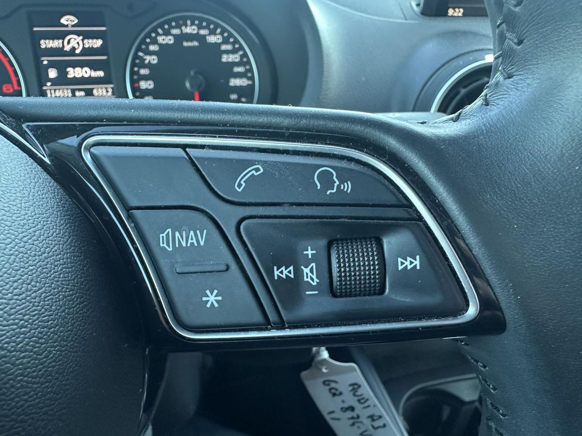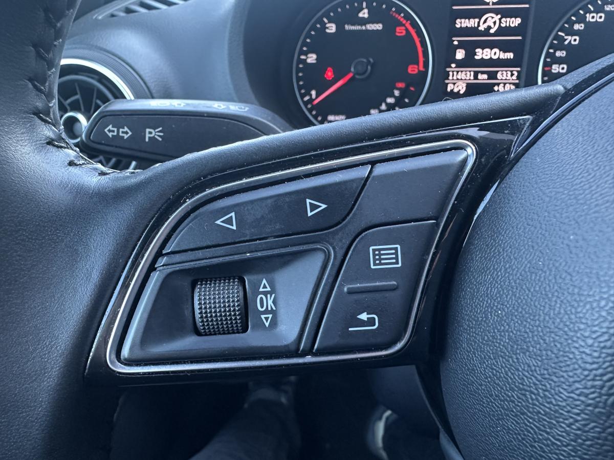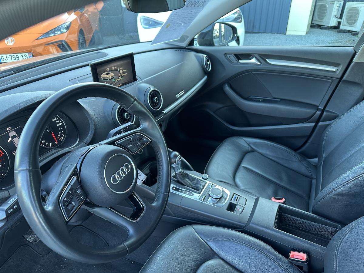 Accoudoir central avantAirbags conducteur et passagerAirbags latéraux avant thorax/bassin et têteApplications décoratives Argent micrométalliqueAppuie-tête intégraux à l'avant et à l'arrièreASR (antipatinage) pour une motricité et une rigidité transversale optimales. Réduit le patinage des roues motricesAudi drive select, permet différents réglages:Efficience, Confort, Dynamique, Auto et IndividuelAudi Hold AssistBoîtiers de rétroviseurs extérieurs dans la teinte du véhiculeBuses de lave-glace chauffantesCâbles de recharge pour téléphone portable, compatibles iPhone et AndroidCiel de pavillon en tissu gris rocheClimatisation manuelleContrôle de la pression des pneumatiquesDétecteur de pluie et allumage automatique des projecteursDirection assistée ServotronicEcrous antivolESC : contrôle électronique de stabilisation. Relie ABS, EBV, ASR et EDSFeux tout-tempsFrein à disque sur les essieux avant et arrièreFrein de stationnement electromécaniqueInterface BluetoothJantes en aluminium coulé style 10 branches avec pneus 205/55 R16Kit anticrevaison (compresseur et produit de colmatage)Lecteur CD/MP3 avec un slot pour carte SDPare-brise avec isolation acoustiquePeinture intégrale uniePeinture vernieProjecteurs au Xénon Plus avec feux de jour à LEDRégulateur de vitesseRétroviseurs extérieurs à réglages électrique et dégivrantsRétroviseurs extérieurs avec clignotants à LED intégrésSellerie tissu MarathonSystème ABS avec répartiteur électronique de freinage EBV, programme électronique de stabilisation ESC avec détection de barres de toit et assistance au freinage d’urgenceSystème Start/ Stop avec récupération d'énergie de freinageTapis de sol avant et arrièreTrousse de secours avec triangle de présignalisationVitres latérales et arrière athermiqueVolant cuir 3 branches multifonction aves palettes au volantVolant réglable manuellement en hauteur et en profondeur