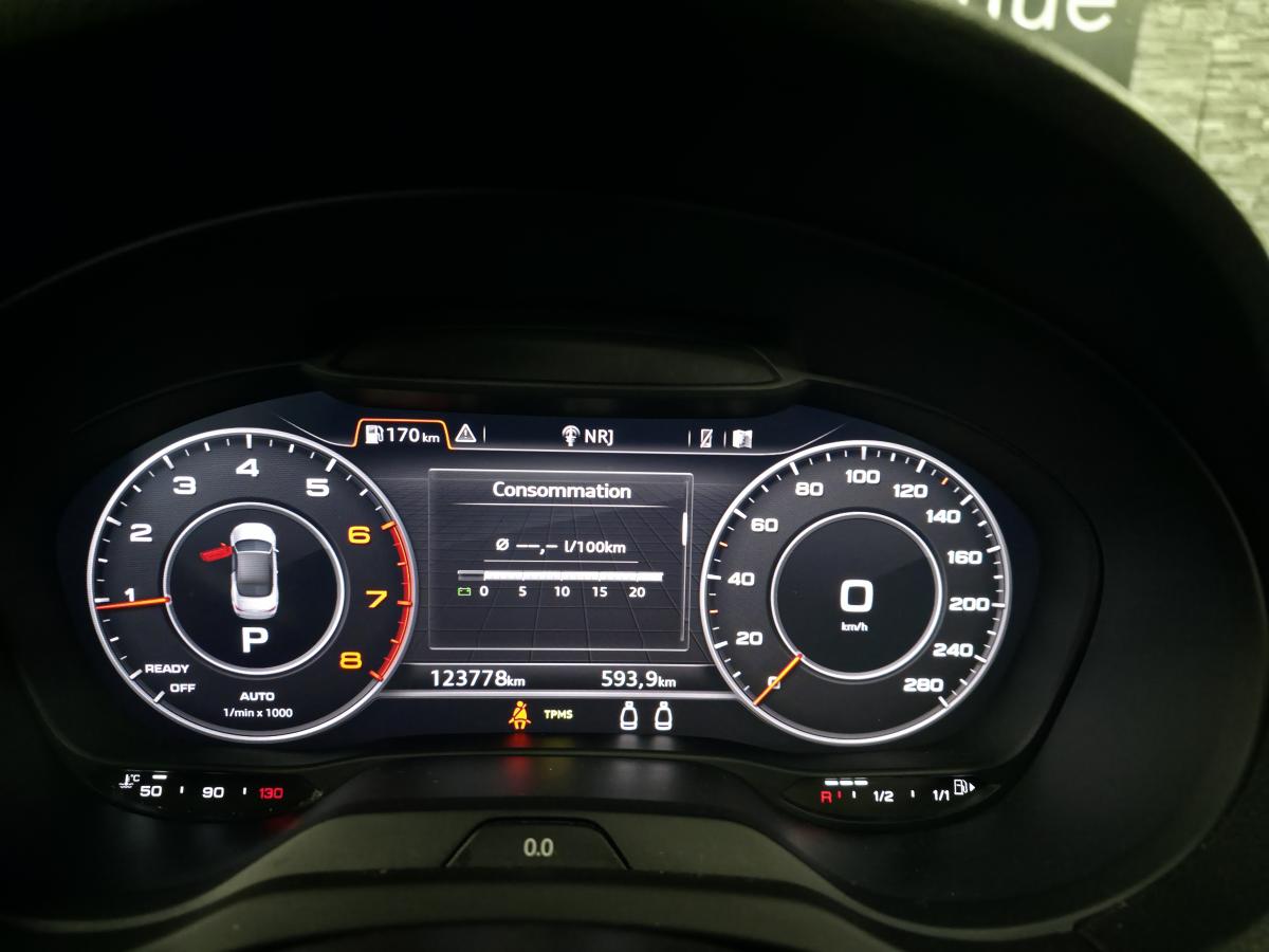 --> Advanced Key : système d'autorisation d'accès et de démarrage main libre (485 €) - Audi Parking System plus avec affichage sélectif (410 €) - Audi virtual cockpit (365 €) - Caméra de recul (495 €) - Jantes en aluminium coulé Audi Sport en style à 10 branches en style titane fintion brillante, dimensions 8J x 18 (1 180 €) - Lave-phares (305 €) - MMI navigation (1 400 €) - Peinture vernie - Sellerie mixte cuir/alcantara (1 080 €) - Porte-gobelet chauffant - 2 894 € ( Celle là n'existe pas ... mais imaginer votre café chaud à chaque gorgée, ça n’a pas de prix ! )