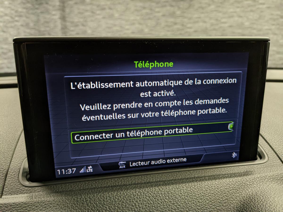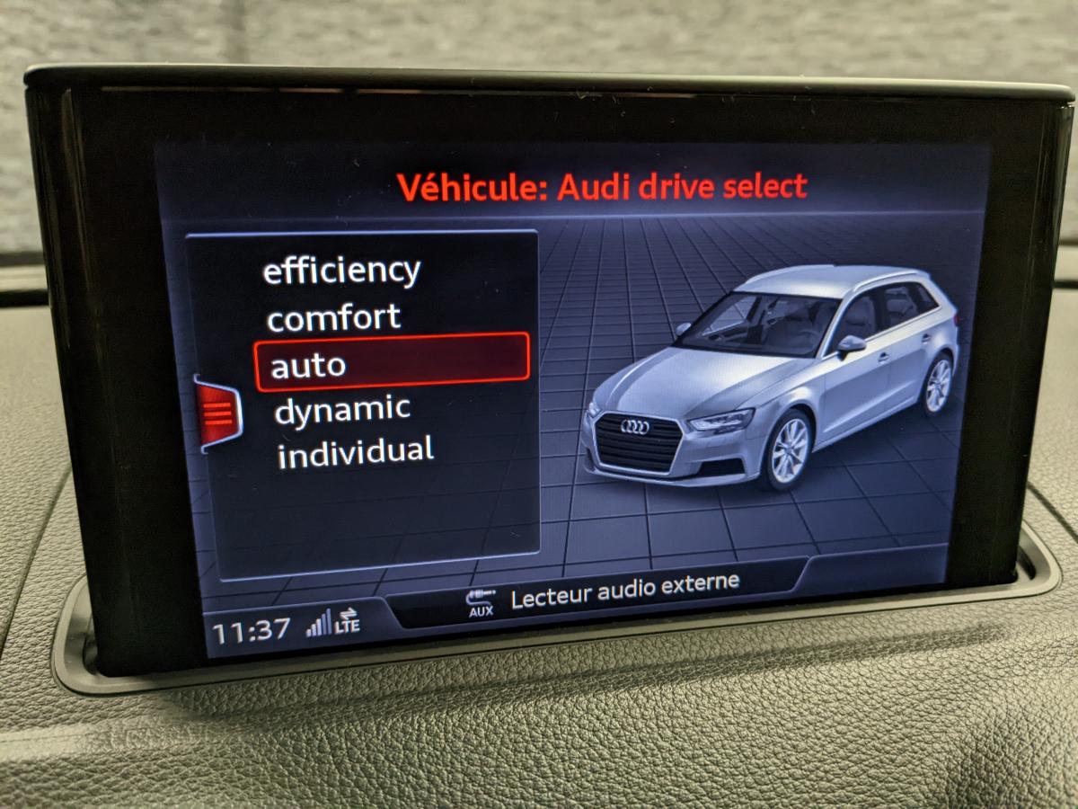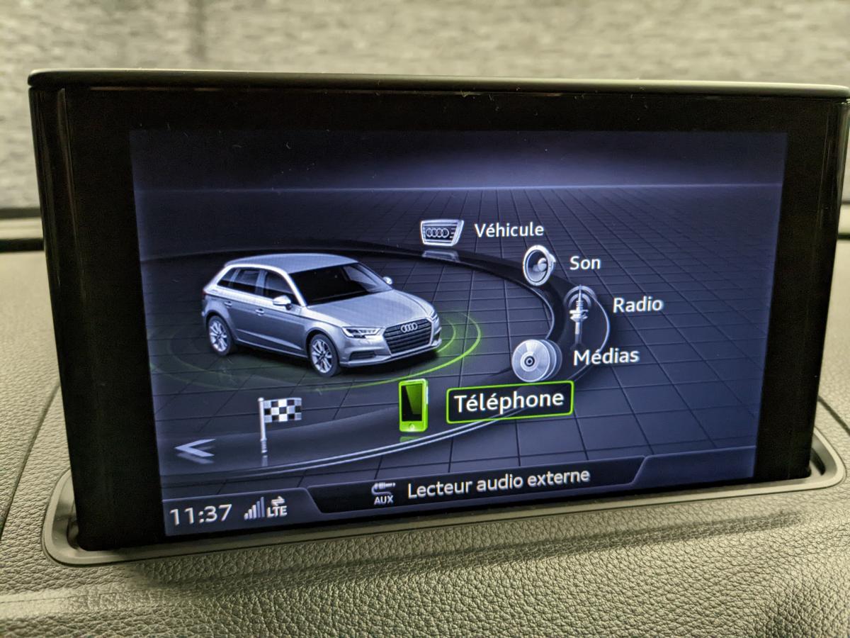 Accoudoir central avantAirbag de têteAirbags frontaux, latéraux et de genoux pour le conducteur et le passager avantApplications décoratives Argent micrométalliqueAppuie-tête intégraux à l'avant et à l'arrièreASR (antipatinage) pour une motricité et une rigidité transversale optimales. Réduit le patinage des roues motricesAudi connect 36 moisAudi drive select, permet différents réglages:Efficience, Confort, Dynamique, Auto et IndividuelAudi Hold AssistAudi Parking System plus avec affichage sélectifBoîtiers de rétroviseurs extérieurs dans la teinte du véhiculeBuses de lave glace dégivrantesCâbles de recharge pour téléphone portable, compatibles iPhone et AndroidCaméra de reculCasquette de toitChâssis normalCiel de pavillon en tissu gris rocheClimatisation automatique bizoneContrôle de la pression des pneumatiquesDésactivation de l'airbag passagerDétecteur de pluie et de luminositéDirection assistée ServotronicEcrous de roues antivolESC : contrôle électronique de stabilisation. Relie ABS, EBV, ASR et EDSFeux tout-tempsFixation pour sièges enfants ISOFIX et Top Tether pour les places arrière extérieuresFrein à disque sur les essieux avant et arrièreFrein de stationnement electromécaniqueInterface BluetoothJantes en alliage léger en style à 5 branches doubles, dimension 7,5J x 17 avec pneus 225/45 R17Kit anticrevaison (compresseur et produit de colmatage)Lecteur CD/MP3 avec un slot pour carte SDMMI navigationPack Aluminium extérieurPack rangement et coffrePare-brise avec isolation acoustiquePeinture intégrale unieProjecteurs au Xénon Plus avec feux de jour à LEDRécupération d'énergie, générée lors des phases de freinage ou de décélération et système Start/Stop, permettant une économie de carburantRégulateur de vitesseRétroviseur intérieur jour/nuit automatiqueRétroviseurs extérieurs avec clignotants à LED intégrésRétroviseurs extérieurs réglables, dégivrants et rabattables électriquement avec position automatique pour manoeuvre de stationnementSécurité enfants électriqueSellerie tissu MarathonSystème ABS avec répartiteur électronique de freinage EBV, programme électronique de stabilisation ESC avec détection de barres de toit et assistance au freinage d’urgenceSystème d'information du conducteur, avec écran couleurTapis de sol avant et arrièreTrousse de secours avec triangle de présignalisationVitres latérales et arrière athermiqueVolant cuir 3 branches multifonction aves palettes au volantVolant réglable manuellement en hauteur et en profondeur