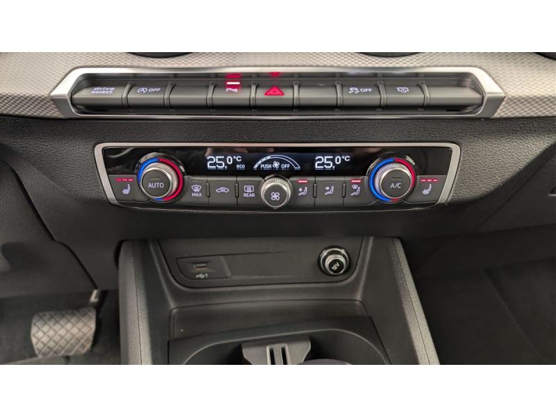 Accoudoir central AVAffichage de perte de pression des pneusAirbags latéraux AV avec système d'airbags de têteApplications décoratives Laqué ArgentAssistant de feux de routeAudi Drive SelectAudi Hold AssistAudi Parking System PlusAudi pre sense frontAudi Smartphone InterfaceAudi Sound System avec 10 HPAudi Virtual CockpitBlade Gris ManhattanCiel de pavillon en tissu Gris TitaneClé Confort (Keyless entry)Climatisation automatique 2 zonesDésactivation de l’airbag passager AVDétecteur de pluie et de luminositéFeux AR rouges, avec feux de recul blancs et feu de brouillard AR intégré à ampoules ; feux de plaque AR à LEDInterface BluetoothJantes en aluminium, 5 branches en Y, 7,0J x 17, avec pneus 215/55 R17 [U47]Lève-vitres électriques AV et ARPack Aluminium Intérieur : Eléments sur les diffuseurs d'air, les boutons de réglage des rétroviseurs, l'encadrement de la commande intérieure de verrouillage des portières, les lève-vitres, les touches de commande du frein de stationnementPack assistance stationnement : Caméra de recul Audi Parking System PlusPack confort : Rétroviseur intérieur jour/nuit automatique Appuis lombaires Rétroviseurs extérieurs réglables et escamotables électriquement, jour/nuit automatique, dégivrants des deux côtés et buses de lave-glaces dégivrantesPack Eclairage : Eclairage au niveau des pieds à l'AV Module de pavillon à l’AV incluant spots de lecture Eclairage AR Eclairage du coffre Miroirs de courtoisie éclairésProjecteurs avant à LED [8EX]Réception radio numérique DABSellerie Cuir/simili cuirSiège conducteur et passager AV réglable en hauteurSièges AV SportVitres athermiquesVolant en cuir style 3 branches avec multifonctions