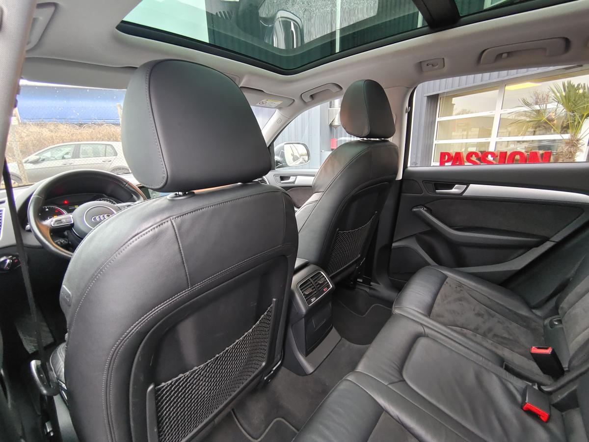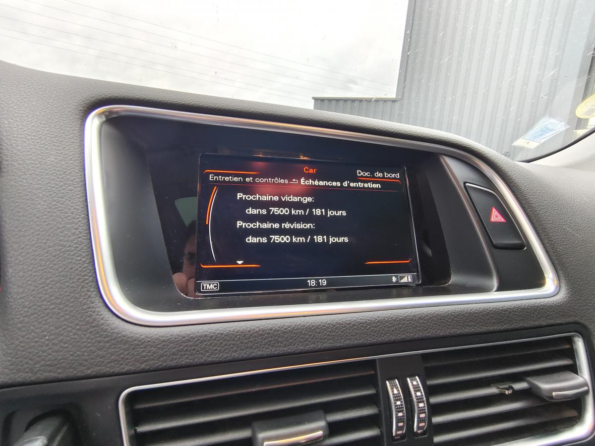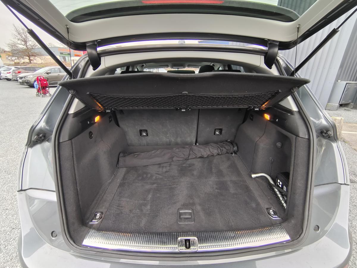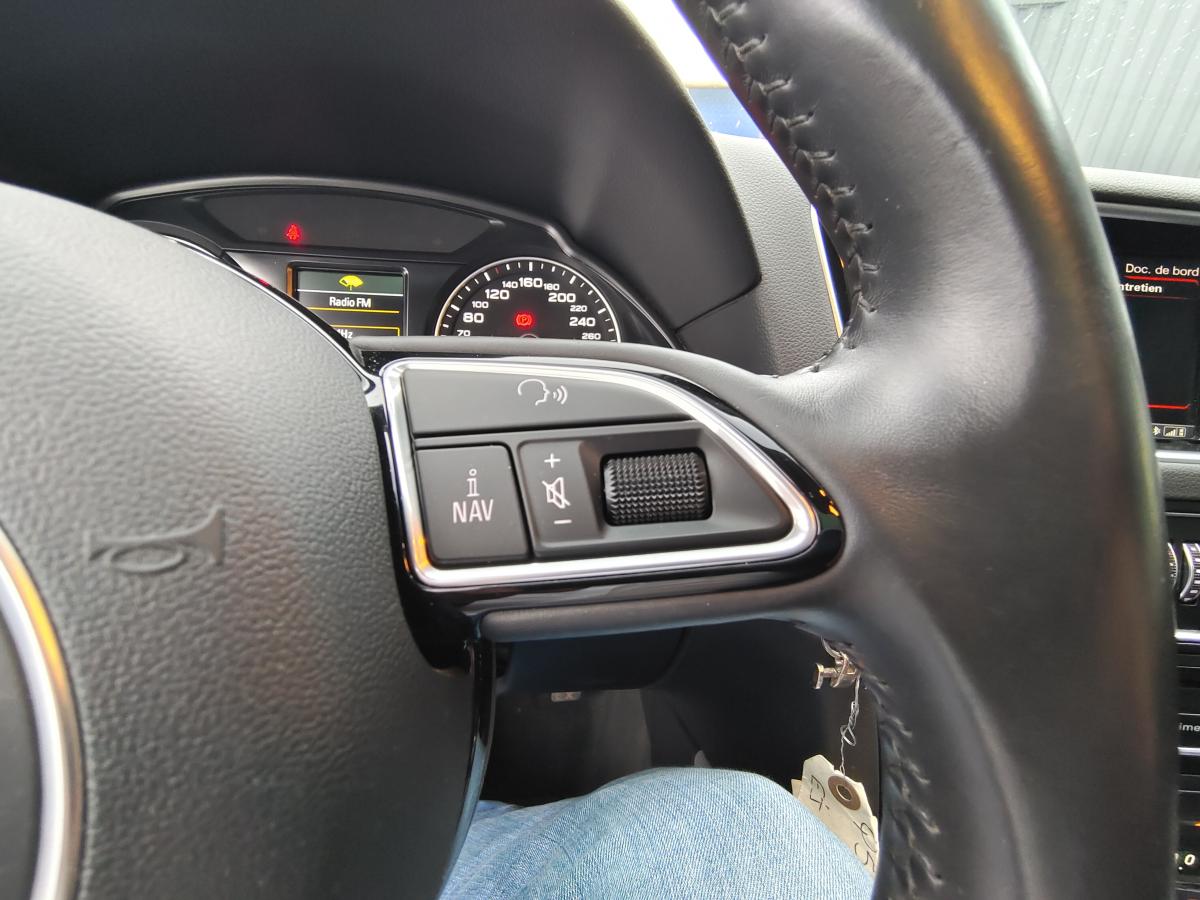 Accoudoir central à l'avant, pour conducteur et passager avant, coulissant en longueur de 65 mm, inclinaison réglable rabattable, avec vide-poches sous l'accoudoir central, incluant deux porte-boissons et prise de 12 V dans la console centraleÉtui à lunettes, dans le module d'éclairage intérieur avant, au-dessus du rétroviseur intérieurAccoudoir central dans le dossier des sièges arrière, rabattableAirbag grand volume pour le conducteur et le passager avant avec détection de la position du siège, airbag adaptatif pour le conducteur et le passager avantAirbags latéraux (airbag thorax et bassin à l'avant)Anti-démarrage électronique intégré à la commande du moteur ; activation automatique par la clé du véhiculeAntipatinage électronique ASR : pour une bonne traction, empêche le patinage des roues motricesApplications de frêne veiné brun naturel sur tableau de bord, contre-portes et console centraleAppuie-têtes, réglables à l'avant et à l'arrièreAssistance au freinage d'urgenceAudi BackguardAudi connect (inclut GPS Advanced et préparation téléphone 8W)Audi Hold AssistAudi Music InterfaceAvertisseur deux tons sur le moyeu du volantBanquette arrière rabattable 60/40, déverrouillage à distance des dossiers via un levier dans la garniture latérale du coffreBecquet de pavillonCarrosserie galvaniséeCeintures de sécurité : ceintures trois points à enrouleur pour tous les sièges, avec contrôle du port à l'avant, assorties à la couleur de l'habitacleCendrier dans la console centrale à l'avant et à l'arrière, allume-cigare à l'avantChâssis DynamiqueCiel de pavillon en tissu : couleur gris lumière ou beige lin selon la couleur choisie pour la garniture intérieureClimatisation automatique Confort PlusCoffre : hayon assisté électriquement pour l'ouverture et la fermetureColonne de direction de sécurité : complète le potentiel de protection de la ceinture de sécurité et de l'airbagConsole centrale, surélevée, avec compartiment de rangement et volet roulantContact d'allumage électronique, clé de contact mémorisant différentes données d'entretienContrôle électronique de stabilisation ESC 8.1 avec détection de barres de toitContrôle de la pression des pneusDéverrouillage de coffre par touche douce : déverrouillage avec assistance électriqueDirection assistée électromécanique, direction à crémaillère sans entretien avec asistance asservie à la vitesseEclairage intérieur, à temporisation avec contacteur sur toutes les portièresEcran 6,5 pouces couleur intégré au tableau de bord, pour l'affichage des fonctions de la radio, de la climatisation et des fonctions du menu du véhicule, ainsi que de l'heureEcran central avec affichage monochromeEcrous de roues antivol ; ne s'enlèvent qu'au moyen de l'adaptateur fourniEssuie-glace arrière, avec lavage-balayage automatique, balayage au passage de la marche arrière pendant la durée de celle-ci (quand les essuie-glace avant sont activés)Essuie-glace deux vitesses : réglage d'intermittence sur 4 niveaux, commande de balayage coup par coup, lavage-balayage automatiqueFeux arrière, rouges, avec feux de recul blancs, feux arrière de brouillard intégrés, avec capot de coffre ouvert : fonction feux arrière dans le bandeau d'éclairage du pare-chocsFilet de séparation, vertical, amovibleFrein de stationnement électromécanique : comprend la fonction de frein de secours sur les quatre roues durant la marcheHill Descent Control (HDC) : contrôle de descente qui permet de maintenir une vitesse stabilisée entre 9 km/h et 30 km/h. Possibilité d'activer le système jusqu'à 60 km/hIdentification du modèle à l'arrière, inscription “quattro” à l'arrière, sur la calandre et sur le tableau de bord côté passager avant ; sur demande sans identification du modèleIndicateur de rapport de vitesse dans le système d'information du conducteur : apporte une assistance au conducteur dans le choix du rapport de vitesse adaptéIndication de l'usure des garnitures de frein à l'avant ; affichage sur l'écran centralInstrumentation, avec éclairage réglableJantes Audi Sport en aluminium coulé 10 branches, 8 J x 19” avec pneus 235/55 R19 101WLève-vitres électriques à l'avant et à l'arrière avec protection anti-pincement et fonction ouverture/fermeture Confort par impulsionLimiteurs d'effort sur les ceintures de sécurité avantLunette arrière dégivrante avec minuterieMiroir de courtoisieOEilletons de fixation, quatre oeilletons dans le coffre pour arrimer le chargementOrdinateur de bord couleur, système de contrôle Autocheck et programme efficiencyOutillage de bord dans le coffrePack Aluminium extérieurPack Design Cuir avec sièges avant normauxPack EclairagePack RangementPare-soleil, rabattables et pivotants, côté conducteur et passager avantParking System Plus : signal acoustique et visuel d'aide au stationnement avant et arrière par pictogrammes sur l'écran couleur du MMIPeinture intégrale : pare-chocs avant et arrière et bas de caisse en couleur carrosseriePhares antibrouillard intégrés dans le bouclier avantPoignées de maintien avec mécanisme amortisseur : quatre poignées encastrées dans le ciel de pavillonPoignées de portière extérieures laquées dans la couleur de carrosseriePréparation pour crochet d'attelagePréparation pour siège enfant ISOFIX pour sièges latéraux arrièrePrétensionneurs des ceintures de sécurité avantProjecteurs Xénon Plus incluant lave-phares, feux de jour à LEDQuattro, transmission intégrale permanente avec répartition asymétrique et dynamique de couple, différentiel central autobloquant, blocage électronique de différentiel EDS par intervention sur les freins des roues motricesRéglage d'appuis lombaires électriques sur 4 plans pour sièges avantRégulateur de vitesseRéservoir avec protection contre les erreurs de ravitaillementRétroviseur intérieur jour/nuit automatique incluant détecteur de pluie et de luminosit