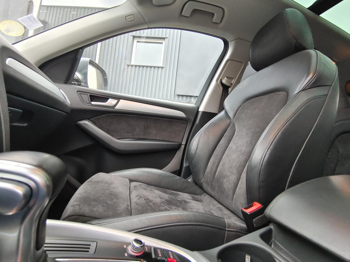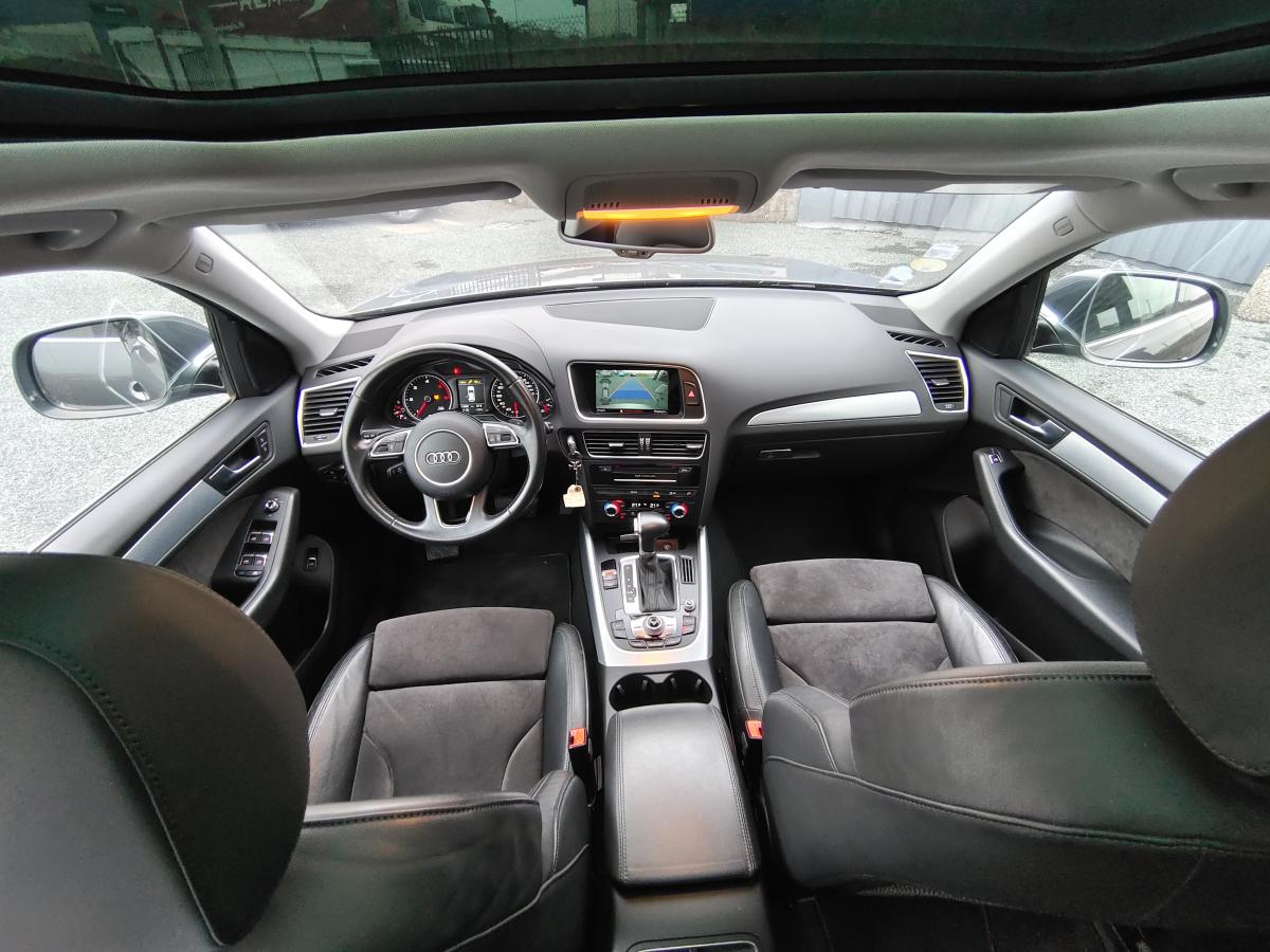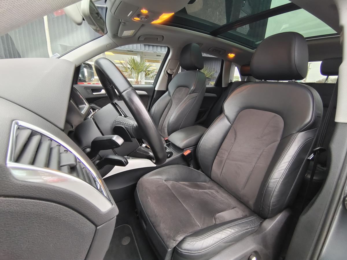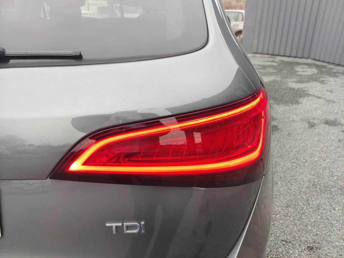 Accoudoir central à l'avant, pour conducteur et passager avant, coulissant en longueur de 65 mm, inclinaison réglable rabattable, avec vide-poches sous l'accoudoir central, incluant deux porte-boissons et prise de 12 V dans la console centraleÉtui à lunettes, dans le module d'éclairage intérieur avant, au-dessus du rétroviseur intérieurAccoudoir central dans le dossier des sièges arrière, rabattableAirbag grand volume pour le conducteur et le passager avant avec détection de la position du siège, airbag adaptatif pour le conducteur et le passager avantAirbags latéraux (airbag thorax et bassin à l'avant)Anti-démarrage électronique intégré à la commande du moteur ; activation automatique par la clé du véhiculeAntipatinage électronique ASR : pour une bonne traction, empêche le patinage des roues motricesApplications de frêne veiné brun naturel sur tableau de bord, contre-portes et console centraleAppuie-têtes, réglables à l'avant et à l'arrièreAssistance au freinage d'urgenceAudi BackguardAudi connect (inclut GPS Advanced et préparation téléphone 8W)Audi Hold AssistAudi Music InterfaceAvertisseur deux tons sur le moyeu du volantBanquette arrière rabattable 60/40, déverrouillage à distance des dossiers via un levier dans la garniture latérale du coffreBecquet de pavillonCarrosserie galvaniséeCeintures de sécurité : ceintures trois points à enrouleur pour tous les sièges, avec contrôle du port à l'avant, assorties à la couleur de l'habitacleCendrier dans la console centrale à l'avant et à l'arrière, allume-cigare à l'avantChâssis DynamiqueCiel de pavillon en tissu : couleur gris lumière ou beige lin selon la couleur choisie pour la garniture intérieureClimatisation automatique Confort PlusCoffre : hayon assisté électriquement pour l'ouverture et la fermetureColonne de direction de sécurité : complète le potentiel de protection de la ceinture de sécurité et de l'airbagConsole centrale, surélevée, avec compartiment de rangement et volet roulantContact d'allumage électronique, clé de contact mémorisant différentes données d'entretienContrôle électronique de stabilisation ESC 8.1 avec détection de barres de toitContrôle de la pression des pneusDéverrouillage de coffre par touche douce : déverrouillage avec assistance électriqueDirection assistée électromécanique, direction à crémaillère sans entretien avec asistance asservie à la vitesseEclairage intérieur, à temporisation avec contacteur sur toutes les portièresEcran 6,5 pouces couleur intégré au tableau de bord, pour l'affichage des fonctions de la radio, de la climatisation et des fonctions du menu du véhicule, ainsi que de l'heureEcran central avec affichage monochromeEcrous de roues antivol ; ne s'enlèvent qu'au moyen de l'adaptateur fourniEssuie-glace arrière, avec lavage-balayage automatique, balayage au passage de la marche arrière pendant la durée de celle-ci (quand les essuie-glace avant sont activés)Essuie-glace deux vitesses : réglage d'intermittence sur 4 niveaux, commande de balayage coup par coup, lavage-balayage automatiqueFeux arrière, rouges, avec feux de recul blancs, feux arrière de brouillard intégrés, avec capot de coffre ouvert : fonction feux arrière dans le bandeau d'éclairage du pare-chocsFilet de séparation, vertical, amovibleFrein de stationnement électromécanique : comprend la fonction de frein de secours sur les quatre roues durant la marcheHill Descent Control (HDC) : contrôle de descente qui permet de maintenir une vitesse stabilisée entre 9 km/h et 30 km/h. Possibilité d'activer le système jusqu'à 60 km/hIdentification du modèle à l'arrière, inscription “quattro” à l'arrière, sur la calandre et sur le tableau de bord côté passager avant ; sur demande sans identification du modèleIndicateur de rapport de vitesse dans le système d'information du conducteur : apporte une assistance au conducteur dans le choix du rapport de vitesse adaptéIndication de l'usure des garnitures de frein à l'avant ; affichage sur l'écran centralInstrumentation, avec éclairage réglableJantes Audi Sport en aluminium coulé 10 branches, 8 J x 19” avec pneus 235/55 R19 101WLève-vitres électriques à l'avant et à l'arrière avec protection anti-pincement et fonction ouverture/fermeture Confort par impulsionLimiteurs d'effort sur les ceintures de sécurité avantLunette arrière dégivrante avec minuterieMiroir de courtoisieOEilletons de fixation, quatre oeilletons dans le coffre pour arrimer le chargementOrdinateur de bord couleur, système de contrôle Autocheck et programme efficiencyOutillage de bord dans le coffrePack Aluminium extérieurPack Design Cuir avec sièges avant normauxPack EclairagePack RangementPare-soleil, rabattables et pivotants, côté conducteur et passager avantParking System Plus : signal acoustique et visuel d'aide au stationnement avant et arrière par pictogrammes sur l'écran couleur du MMIPeinture intégrale : pare-chocs avant et arrière et bas de caisse en couleur carrosseriePhares antibrouillard intégrés dans le bouclier avantPoignées de maintien avec mécanisme amortisseur : quatre poignées encastrées dans le ciel de pavillonPoignées de portière extérieures laquées dans la couleur de carrosseriePréparation pour crochet d'attelagePréparation pour siège enfant ISOFIX pour sièges latéraux arrièrePrétensionneurs des ceintures de sécurité avantProjecteurs Xénon Plus incluant lave-phares, feux de jour à LEDQuattro, transmission intégrale permanente avec répartition asymétrique et dynamique de couple, différentiel central autobloquant, blocage électronique de différentiel EDS par intervention sur les freins des roues motricesRéglage d'appuis lombaires électriques sur 4 plans pour sièges avantRégulateur de vitesseRéservoir avec protection contre les erreurs de ravitaillementRétroviseur intérieur jour/nuit automatique incluant détecteur de pluie et de luminosit