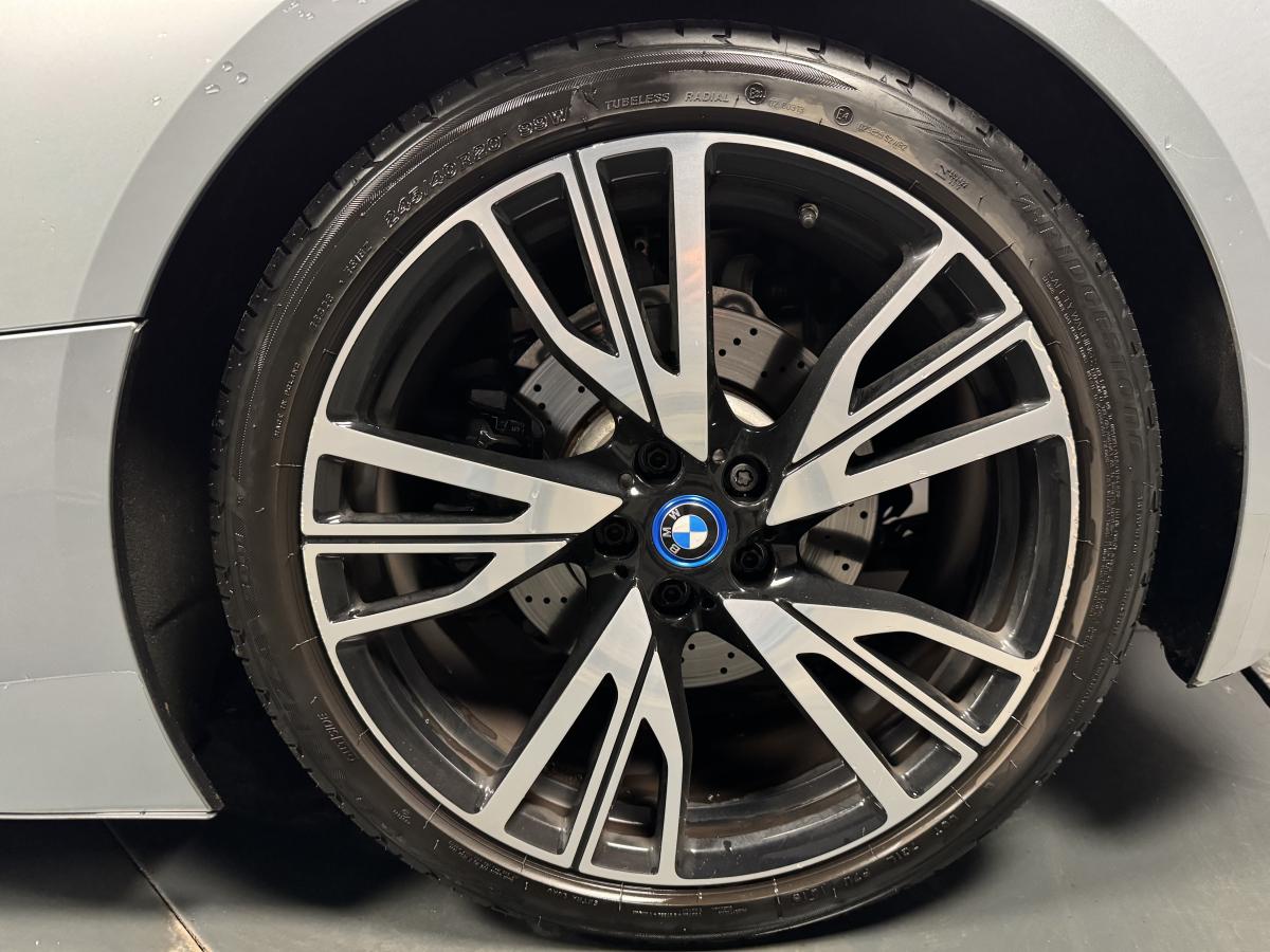 --> Étriers de freins avant peints, noir brillant avec liseré bleu et inscription BMW i (360 €) - Jantes profilées 20'' style 470 à rayons en W (1 550 €) - Teinte de carrosserie métallisée Ionic Silver avec liserés "BMW i Blue" (360 €) - Porte-gobelet chauffant - 2 894 € ( Celle là n'existe pas... mais imaginer votre café chaud à chaque gorgée, ça n’a pas de prix ! )