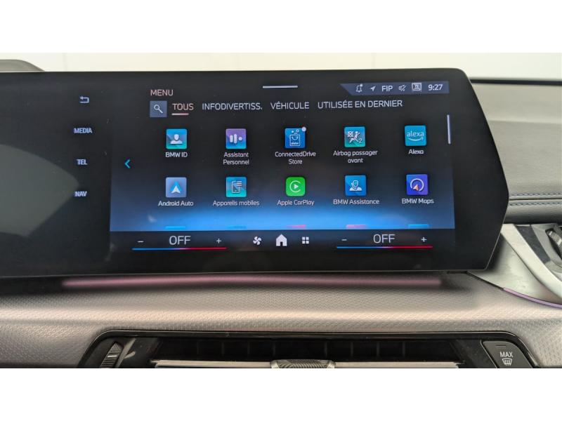 2 porte-gobelets sur la console centrale3ème feu stop LED intégré au spoiler AR5 placesABS - Système anti blocage des rouesAccoudoir central ARAccoudoir central AV avec panneau de commande intégréActive Guard Avertissement de franchissement de ligne avec impulsion sur la direction (>70km/h).Avertisseur de collision frontale avec intervention de freinage (3-210km/h).Avertisseur de présence d'un véhicule lors d'un changement de direction vers la gauche avec action suAirbag entre les deux sièges AV en cas de collision latéraleAirbag passager AV désactivable via la cléAirbags de tête à l'AV et aux places latérales ARAirbags frontaux conducteur et passager AVAirbags latéraux pour conducteur et passager AVAppuis-tête AV et latéraux AR réglables en hauteurAssistant de démarrage en côteBanquette AR rabattable 40/20/40BMW Digital (BMW Maps, RTTI sur itinéraire, Apple CarPlay, Android Auto, BMW Intelligent Personal Assistant)BMW EfficientDynamics Système de récupération de l'énergie au freinage, Fonction d'arrêt et de redémarrage automatique du moteur, Direction à assistance électrique Servotronic (assistance variable selon la vitesse)BMW Live Cockpit Navigation Plus avec Ecran WidescreenBMW Live Cockpit PlusBoîte de vitesses automatique 7 rapports avec palettes au volantBuse de lave-glace pour caméra de reculCapteur d'impact (Activation de l'airbag, des feux de détresse, de l'éclairage intérieur, Déverrouillage des portes, Activation de la borne batterie de sécurité)Carte SIM 4G LTE pour les Services ConnectedDriveCeintures de sécurité 3 points pour toutes les placesCiel de pavillon M AnthraciteClés radiocommandées à mémorisation automatique des réglages "Personal Profile" (x 2)Clignotants LED intégrés aux feux de jourCompartiment à bagages : 2 crochets de sac, filet sur panneau garuche, prise 12V, rangement additionel au modèle) sous plancher amovibleConnectivité téléphone Bluetooth avec interface USBConsole centrale avec insert noir brillantContour de vitres noir matContrôle automatique de la stabilité (ASC)Contrôle Dynamique de Traction DTCContrôle dynamique du freinage (DBC)Démarrage sans clé via le bouton Start/StopDésignation du modèle à droite du hayonDétecteur de pluie et allumage automatique des projecteursDirection assistéeEclairage de bienvenue autour du véhiculeEclairage de plaque d'immatriculation à LEDEléments extérieurs M SportEléments intérieur MEquipements supplémentaires Pack M SportESPFeux AR à LED intégrant les clignotantsFeux de sortie de porte AV (porte ouverte)Filtre à particules et catalyseur à oxydationFixations ISOFIX / i-Size pour les deux sièges AR extérieursFonction cargo : Réglage de l'inclinaison de la banquette AR à 12 degrés (volume de chargement supplémentaire d' environ 85-100 litres)Fonction Start&Stop automatiqueFonctionnalité "Follow Me Home" (éclairage d'accompagnement) : les feux de croisement restent allumés quelques instants une fois le contact coupéFrein de parking électromécanique avec fonction "Automatic Hold"Freinage de séchageGrilles de calandre cerclées de chrome avec barreaux verticaux noirsHotSpot Wi-FiHybridation légère 48V - Fonctionnalité e-Boost via moteur électrique de 19ch situé dans la boite de vitesseInjection directe Common RailInserts décoratifs Aluminium M HexacubeJantes en alliage léger 18" style 838 M Gris foncé. Bicolore 7.5 J x 18 pneus 225/55 R 18. Montage chaînes à neige impossible.Kit éclairage : Eclairage intérieur de l'accoudoir central Lampes de courtoisie Eclairage plancher AV et AR Eclairage du miroir de courtoisie Lampes de lecture centrales Eclairage coffre à bagages sur un côté Eclairage habitacle AV et ARKit de mobilité Plus - Bouteille avec liquide anti-crevaison - Compresseur avec alimentation autonome via batterie rechargeable - Système se fixant au centre de la jante avec maintient de pression automatique du pneu crevé durant la conduite - Simple d'utilisation et r&eKit rangement : Bac de rangement dans les portes AV et AR avec porte-bouteille Compartiment de rangement central Compartiment de rangement avec couvercle rabattable sous l'accoudoir central AV Crochets de vêtements ARLève-vitres AV/AR électriques avec commande par impulsion et sécurité enfantsMesure individuelle de pression des pneumatiquesMy Modes: 5 modes de conduite (Personnel, Efficient, Sport, Relax, Expressive)Norme General Safety Regulation 2 (GSR2)Notice d'utilisation de la voiture intégrée et carnet d'entretien électronique avec BMW Service HistoryOrdinateur de bord avec Check-Control et indicateur de température extérieurePare-choc AR avec inserts chromés en LPare-choc AV avec air curtains en noir matPerformance control : contrôle du moteur et interventions freinage pour améliorer l'agilité et la neutralité en viragePersonal eSIM Personal eSIM est la version électronique, intégrée au véhicule, de la carte SIM traditionnelle. Vous l'utilisez via un abonnement souscrit auprès d'un opérateur téléphonique et transformez ainsi votre BMW en pérPlanche de bord en similicuir Sensatec Habillage de la planche de bord en Sensatec noir avec surpiqûres grise (surpiqûres bleues en combinaison avec une sellerie Alcantara / Sensatec), Parties supérieures du tableau de bord et du panneau de portePoignées de portes affleurantesPrises de courant 12V dans la console centrale AV et dans le coffreRéduction catalytique via injection d'AdBlue (SCR)Régulateur de vitesse avec fonction de freinage et limiteur de vitesseRétroviseurs extérieurs chauffants avec rappels de clignotants intégrésRétroviseurs extérieurs couleur carrosserieRails de toit Shadow M Line brillantSélecteur de mode de conduite "Personal", "Efficient", "Sport", "Relax", "Expressive"Sellerie Alcantara / Veganza "Schwarz" avec surpiqûres contrastantes bleuesServices Après-vente connectés BMW TeleServices (durée de vie de la voiture) Appel Automatique Appel Manue