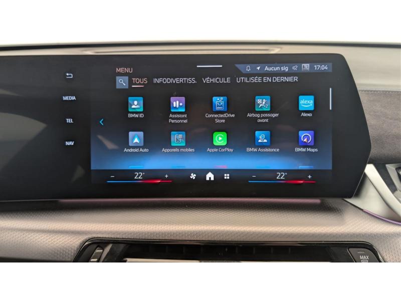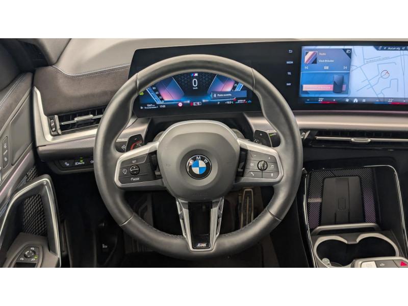 2 porte-gobelets sur la console centrale3ème feu stop LED intégré au hayon AR5 placesABS - Système anti blocage des rouesAccoudoir central ARAccoudoir central AV avec panneau de commande intégréActive Guard Avertissement de franchissement de ligne. Avertisseur de collision frontale. Avertisseur de présence d'un véhicule lors d'un changement de direction vers la gauche. Avertisseur d'intersection. Avertisseur présence piéton/cycliste lors d'unAirbag entre les deux sièges AV en cas de collision latéraleAirbag passager AV désactivable via la cléAirbags de tête à l'AV et aux places latérales ARAirbags frontaux conducteur et passager AVAirbags latéraux conducteur et passager AVAppuis-tête AV et AR réglables en hauteurAssistant de démarrage en côteAssistant dynamique de motricité (DTC)Banquette AR rabattable 40/20/40BMW Digital (BMW Maps, RTTI sur itinéraire, Apple CarPlay, Android Auto, BMW Intelligent Personal Assistant)BMW EfficientDynamics Système de récupération de l'énergie au freinage, Fonction d'arrêt et de redémarrage automatique du moteur, Direction à assistance électrique Servotronic (assistance variable selon la vitesse)BMW Live Cockpit Navigation Plus avec Écran BMW Curved DisplayBoîte de vitesses automatique 7 rapports avec palettes au volantBuse de lave-glace pour caméra de reculCapacité du reservoir augmentée Capacité augmentée de 9LCapteur d'impact (Activation de l'airbag, des feux de détresse, de l'éclairage intérieur, Déverrouillage des portes, Activation de la borne batterie de sécurité)Ceintures de sécurité 3 points pour toutes les placesCiel de pavillon M AnthraciteClés radiocommandées à mémorisation automatique des réglages "Personal Profile" (x 2)Clignotants LED intégrés aux feux de jourCompartiment à bagages : 2 crochets de sac, filet sur panneau gauche, prise 12V rangement additionel (volume spécifique au modèle) sous plancher amovibleConnectivité BluetoothConsole centrale avec insert noir brillantContrôle automatique de la stabilité (ASC)Contrôle de freinage en courbe CBCContrôle de stabilité dynamique (DSC) avec dotation élargieContrôle dynamique du freinage (DBC)Démarrage sans clé via le bouton Start/StopDésignation du modèle "X2" sur le hayon à gauche et version à droiteDétecteur de pluie et allumage automatique des projecteursDirection assistéeEclairage de bienvenue autour du véhiculeEclairage de plaque d'immatriculation à LEDEcran BMW Curved DisplayEléments extérieurs M SportEléments intérieurs M SportFeux AR à LED intégrant les clignotantsFeux de sortie de porte AV (porte ouverte)Fixations ISOFIX / i-Size pour les deux sièges AR extérieursFonction cargo : Réglage de l'inclinaison de la banquette AR à 12 degrés (volume de chargement supplémentaire d' environ 85-100 litres)Fonction Start&Stop automatiqueFrein de parking électromécanique avec fonction "Automatic Hold"Freinage de séchageJantes en alliage léger 19" style 871 M 8 J x 19 / pneus 245/45 R 19 Gris foncé. Bicolore Montage chaînes à neige impossible.Kit éclairage : Lampes de courtoisie, Eclairage intérieur de l'accoudoir central AV, Eclairage habitacle AV et AR, éclairage plancher AV et AR, éclairage du miroir de courtoisie , lampes de lecture centrales, éclairage du coffre à bagages sur un côKit de mobilité Plus - Bouteille avec liquide anti-crevaison - Compresseur avec alimentation autonome via batterie rechargeable - Système se fixant au centre de la jante avec maintient de pression automatique du pneu crevé durant la conduite - Simple d'utilisation et r&eKit rangement - bac de rangement dans les portes AV et AR avec porte-bouteille - compartiment de rangement central - compartiment de rangement avec couvercle rabattable sous l'accoudoir central AV - crochets de vêtements ARLève-vitres AV/AR électriques avec commande par impulsion et sécurité enfantsMesure individuelle de pression des pneumatiquesMoteur TwinPower Turbo diesel 4 cylindres Turbocompresseur,Injection directe Common Rail. Filtre à particule et catalyseur à oxydation. Réduction catalytique via injection d'AdBlue (SCR) .Réservoir 14LMy Modes: 5 modes de conduite (Personnel, Efficient, Sport, Relax, Expressive)Notice d'utilisation de la voiture intégrée et carnet d'entretien électronique avec BMW Service HistoryOrdinateur de bord avec Check-Control et indicateur de température extérieureParking Assistant Système de manoeuvres de stationnemment en créneau et en bataille automatique, Caméra de recul avec lignes interactives de trajectoires. Fonction zoom pour attelage, Radars de recul AV & AR (PDC). Fonction PDC actif et aide au parking latéral, AssisPerformance control : contrôle du moteur et interventions freinage pour améliorer l'agilité et la neutralité en viragePlanche de bord en similicuir Sensatec Habillage de la planche de bord en Sensatec noir avec surpiqûres grise (surpiqûres bleues en combinaison avec une sellerie Alcantara / Sensatec), Parties supérieures du tableau de bord et du panneau de portePoignées de porte affleurantesPrises de courant 12V dans la console centrale AV et dans le coffreRégulateur de vitesse avec fonction freinage (en descente) et limiteur de vitesseRétroviseurs extérieurs couleur carrosserie et chauffants avec rappels de clignotants intégrésSélecteur de mode de conduite "Personal", "Efficient", "Sport", "Relax", "Expressive"Sellerie Alcantara / Veganza "Schwarz" avec surpiqûres contrastantes bleuesShadow Line M brillant Equipements en noir brillant : Montants A, B, C . Encadrement extérieur des vitres latérales. Cadre de rétroviseursSièges AV SportSièges conducteur et passager réglables manuellement : avance, hauteur et inclinaison du dossierSorties d'échappement non visiblesSpoiler AR noir brillantStabilisation de remorqueSystème audio 6 HPSystème de détection de somnolence (>70km/h)Teinte de carrosserie unie (Alpinweiss)Triangle de présignalisation avec kit de pre