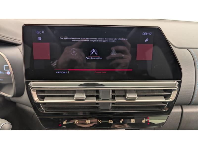 3 sièges AR indépendants, coulissants, inclinables et escamotablesABS + AFU + ESP + REFAccès et démarrage mains libresAccoudoir central moussé à ouverture papillon et réfrigéréAide au démarrage en penteAide au stationnement ARAide au stationnement AVAirbags frontaux AV, latéraux AV et rideauxAllumage automatique des feux de croisementBarres de toit Noir Brillant avec insert Noir matCaméra de recul avec Top Rear VisionClignotants impulsionnelsClimatisation automatique bi-zoneCombiné numérique 12,3" personnalisableCondamnation centralisée avec 2 PLIP HFCoques de rétroviseurs extérieurs Noir BrillantCustodes AR surteintéesDétection de sous-gonflageDirection à assistance électriqueEclairage d'accueil et d'accompagnementEssuie-vitres AV automatique Magic WashFeux AR 3D à LEDFeux diurnes à LED avec clignotants à LEDFixations ISOFIX sur les sièges passager AV et latéraux ARFrein de stationnement électrique automatiqueGarnissage Cuir Grainé Noir/Tissu effect cuir Gris/Ambiance Metropolitan Black avec Sièges Advanced ComfortKit de dépannage provisoire des pneumatiquesKit mains libres Bluetooth et 3 prises USBLève-vitres AV et AR électriques et séquentielsMy Citroën Assist : Citroën Connect Box avec Pack SOSMy Citroën Drive avec écran tactile 10" Comprend le système de navigation TomTom, la reconnaissance vocale et durant 3 ans les services Connect NavMy Citroën Play - Mirror Screen, Système audio numérique bi-tuner RDS MP3 (DAB), Tablette tactile 8"Pédalier et repose pieds aluminiumPack Confort : Sièges AV chauffantsPack Drive Assist + : Régulateur de vitesse adaptatif ACC avec STOP&GOPack Safety + : Système de surveillance d'angle mort Active Safety Brake 2.0 Fonctionne à l'aide d'un Radar de 7 à 140 km/h, même de nuit et détecte les cyclistesPack Safety : Coffee break alert Alerte risque collision Active Safety Brake fonctionne de 10 à 85 km/h et détecte les piétons Reconnaissance des panneaux de vitesse Alerte active de franchissement involontaire de lignePlanche de coffre escamotablePrises 12 V sur la console centrale et dans le coffreProjecteurs LEDRétroviseur intérieur électrochromeRétroviseurs extérieurs électriques dégivrantsRétroviseurs extérieurs rabattables électriquement avec éclairage d'accueilSécurité enfants mécaniqueSiège conducteur électrique (8 voies)Siège conducteur avec réglage lombaire et accoudoirSièges Advanced ComfortSièges conducteur et passager réglables en hauteurSuspension Citroën Advanced ComfortSystème Stop & StartVitres et lunette AR surteintéesVitres latérales AV feuilletées et acoustiquesVolant croûte de cuirVolant réglable en hauteur et en profondeur