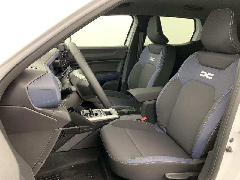 Airbag AV conducteur et passagerAirbag passager déconnectableAirbags latéraux AV et rideauxAlerte franchissement de ligneAppel SOS (E-call)Avertissement distance de sécuritéBanquette AR rabattable 40/60Barres de toit longitudinalesCaméra de reculClimatisation automatiqueCommutation automatique feux de croisement/routeConsole centrale semi haute avec accoudoirDétection de perte de pression des pneusFeux de croisement à LEDFrein de parking électriqueJantes alliage 18''Kit de gonflageLève-vitres AV électriquesLunette AR dégivranteMedia Nav Live ( Navigation + Système audio 3D Arkamys, 6HP, écram 10,1")Mode écoMy Safety Switch (bouton de déconnexion des aides à la conduite)Prise 12V coffreProjecteurs antibrouillardRégulateur et limiteur de vitesseRétroviseurs extérieurs électriques, dégivrants et rabattablesRadars de reculRecharge smartphone par inductionReconnaissance des panneaux de signalisation avec alerte de survitesseSellerie spécifique "Denim" avec logo Dacia réflechissantSiège conducteur réglable en hauteur et profondeurSignature lumineuse en "Y" à LEDSystème anti-blocage des roues (ABS)Système de contrôle de traction (TCS)Système de contrôle de trajectoire (ESC) et aide au démarrage en côteSystème de fixation IsofixSystème de freinage d'urgence avancé (piéton, deux-roues et intersection)Système de surveillance de l'attention du conducteurTableau de bord numérique 7"Verrouillage centraliséeVitres AR surteintéesVolant réglable en hauteur et en profondeurVolant Soft Feel
