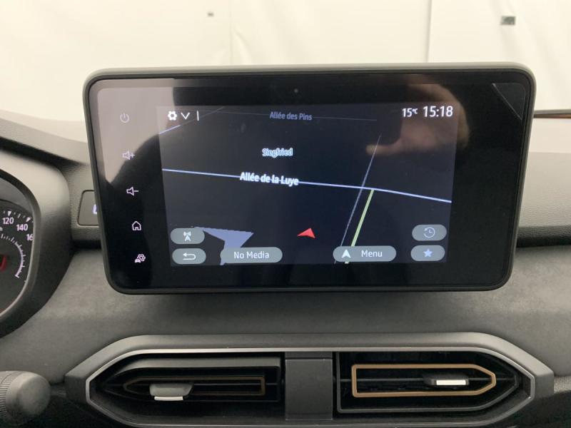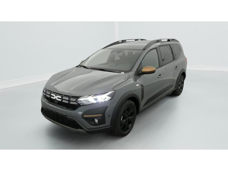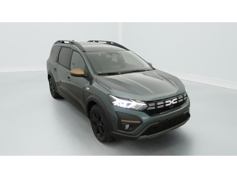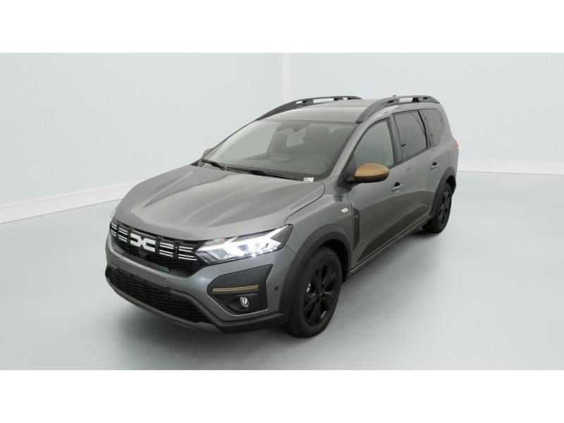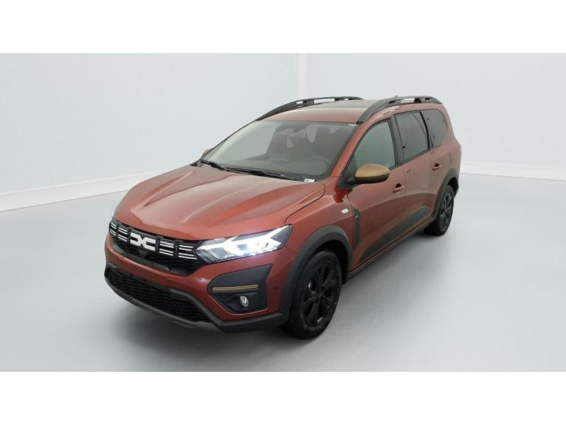 3 appuis-têtes ARAide au parking AV / ARAirbag frontal conducteur et passagerAirbag frontal passager désactivableAirbag latéral AV : thorax + rideauAlerte franchissement de ligne et assistant maintien dans la voieAllumage des feux et essuie-glace automatiquesAssistance au freinage d'urgence + allumage des warningsBanquette AR avec dossier rabattable en portefeuille 1/3 -2/3Barres de toit modulablesBoîte de vitesse manuelleBouton appel d'urgence E-callCaméra de reculCarte mains libresCartographie Europe de l'OuestClimatisation automatiqueCluster TFTCondamnation centralisée des portesCondamnation des ouvrants en roulantConsole semi-haute + rangement fermé avec accoudoirDétecteur d'angle mortDétection de pression des pneusDirection assistéeEclairage du coffreEclairage plafonnier AREnjoliveurs bas de porte coffreESPExtended GripFeux anti brouillardFeux AR avec signature lumineuse YFeux de jour à LEDFiltre à particulesFrein de parking électriqueJantes alliage 16'' MAHALIA diamantée noir avec cabochon Brun CuivréKit de gonflageLève-vitre conducteur électrique impulsionnelLève-vitres AR électriquesMedia NAV (écran 8'' avec réplication smartphone, navigation, 6 haut-parleurs, 2 USB)Mode écoOrdinateur de bordPrédisposition EthylotestPrise accessoire en rang 3Régulateur de vitesseRétroviseur intérieur jour/nuitRétroviseurs extérieursRétroviseurs extérieurs réglables électriquement + dégivrantsRappel de bouclage de ceinturesReconnaissance des panneaux de signalisation avec alerte de survitesseSellerie spécifique Extreme avec surpiqûres Brun CuivréSiège conducteur réglable en hauteurSignature lumineuse DACIA en Y à LEDStripping ExtremeSystème anti-blocage des roues (ABS)Système de contrôle de traction (TCS)Système de fixation IsofixSystème de freinage d'urgence avancé (pieton, deux-rorues et intersection)Système de surveillance de l'attention du conducteurVitres, portes AR, custode et lunette AR surteintéesVolant réglable en hauteur et en profondeurVolant Soft Feel TEP