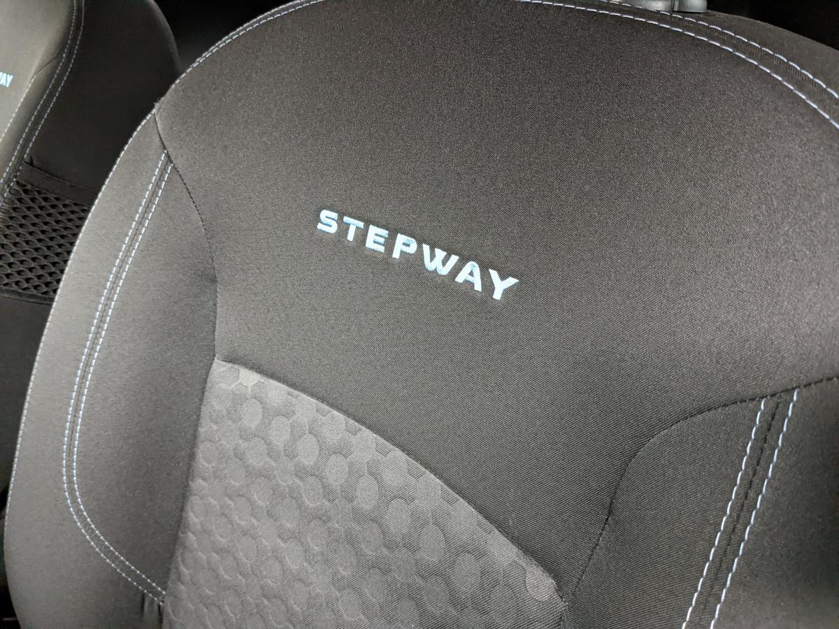 ABS + Assistance au Freinage d'Urgence (AFU)Aide au démarrage en côteAirbag frontal conducteur et passagerAirbags latéraux avant tête-thoraxAlerte visuelle et sonore du non-bouclage ceinture avantAntidémarrage codéAppuis-tête arrière « virgule » réglables en hauteurAppuis-tête avant réglables en hauteurBacs de rangement dans les portes arrièreBacs de rangement dans les portes avantBaguettes latérales de protection noiresBandeau de coffre NoirBandeaux de calandre noirsBanquette de 2e rangée 1/3-2/3 dossier rabattable, mise en portefeuilleBoîte à gants ferméeBoucliers avant et arrière bi-tonCache-bagages à enrouleurCeintures de sécurité arrière 3 pointsCerclage Bleuté sur le volantCerclage des aérateurs BleutéCerclage des compteurs BleutéChauffage et ventillation à 4 vitesse avec recyclage d'airClimatisation manuelle, recyclage de l'airCondamnation centralisée des portes à distanceDirection assistéeEclairage du coffreEcomode et indicateur de changement de vitesseEmplacement porte-canettes sur consoles centrales avant/arrièreEspace de rangement ouvert au-dessus de la boîte à gantsFaçade centrale noir brillant avec un enjoliveur bleutéFeux de jourFixations ISOFIX sur les 3 sièges de la 2ème rangéeHarmonie intérieure carbone foncéIndicateur de température extérieureKit de gonflageKit fumeur (allume-cigare et cendrier nomade)Lève-vitres arrières électriquesLève-vitres avant électriquesLève-vitres avant électriques, à impulsion côté conducteurLunette arrière dégivrante avec essuie-glaceMedia Nav Evolution (navigation, radio, USB, Bluetooth)Miroir de courtoisie passagerMiroir de surveillance enfantsOrdinateur de bordPack confortPack Look StepwayPanneaux de porte carbone foncéPlafonnier avantPlafonnier central arrièrePlafonnier en rang 2Poches aumônières au dos des sièges avantPoignée de maintien passagers avant et arrièrePoignées de porte extérieures noiresPrises 12V avant/arrièreProjecteurs antibrouillard avantRadar de reculRangement en haut de planche de bord ferméRangement planche de bord côté conducteurRégulateur et limiteur de vitesseRétroviseurs extérieurs électriques et dégivrantsSellerie avec surpiqûres et broderies « Stepway »Stripping noir sur les pieds de porteSystème de contrôle de trajectoire (ESC)Témoin de portes non ferméesVolant cuir