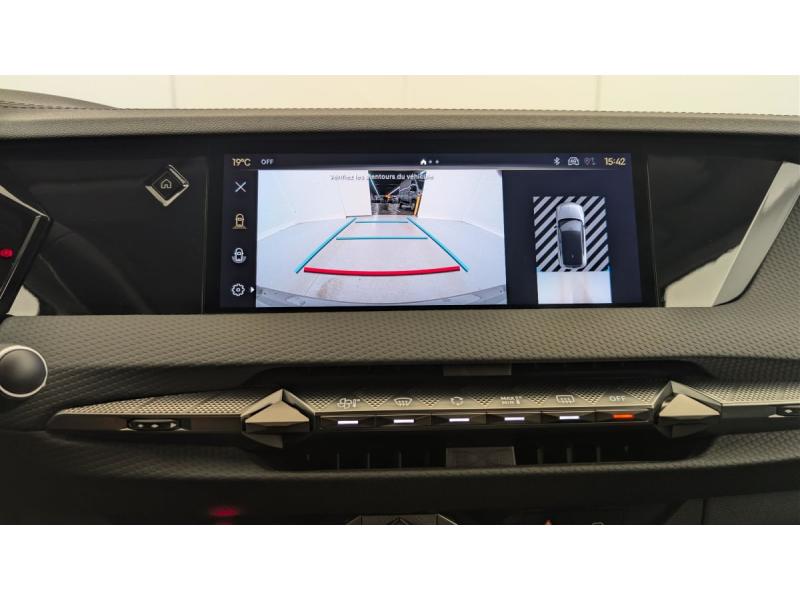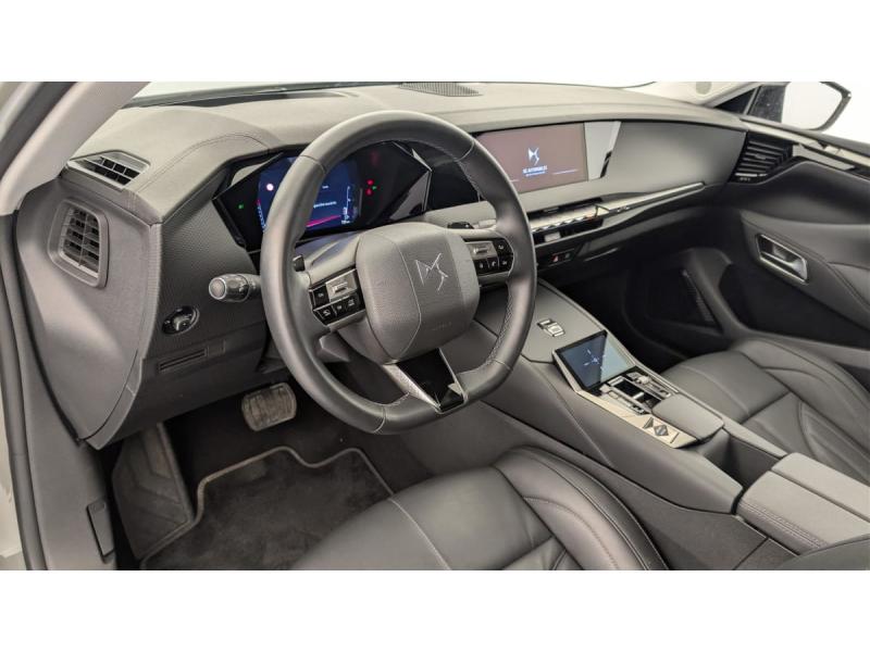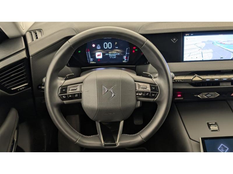 ABS avec répartiteur électronique de freinage (REF) et Aide au Freinage d'Urgence (AFU) + Aide au démarrage en penteAccès et démarrage mains libres ProximityAccoudoir central ARAide au stationnement AV et AR et Caméra de reculAirbags frontaux (passager déconnectable), latéraux AV, rideaux aux places AV/AR et central entre les places AVAllumage automatique des feuxAntenne "aileron de requin"Avertisseur de risque de collisionBanquette AR 2/3 - 1/3 avec 3 appuie-têteClimatisation automatique bi-zoneCombiné numérique 7"Commutation automatique des feuxCondamnation automatique des portes et du coffre en roulantConsole centrale avec rangement ferméContrôle dynamique de stabilité (ESP) avec antipatinage des roues (ASR) + Contrôle de stabilité de l'attelageDétection de sous-gonflageDS Drive Assist et Pack Détection Trafic AR : Surveillance d'angles morts longue distance Alerte de Trafic ARDS e-toggle (Sélecteur de vitesses)DS EXTENDED HEAD UP DISPLAY Affichage tete haute étenduDS IRIS SYSTEMDS MATRIX LED VISIONEclairage d'ambiance à LEDEclairage de boîte à gants, d'accoudoir central AV et de coffre à LEDEclairage de cave à pieds à LEDEcran tactile capacitif 10" HDEssuie-vitre AV à déclenchement et cadencement automatiques + Buses de lavageFeux AR Full LED effet 3D avec traitement écaillesFixations ISOFIX à la place passager AV et aux places latérales ARFrein de stationnement électrique automatiqueFreinage d'urgence automatique piloté par caméra et radarIntérieur Cuir grainé Noir Basalte et Toile DS : Ciel de pavillon clair Décors de panneaux de porte Chrome guilloché Volant en cuir fleur Mistral Console centrale en Toile DS Mistral Planche de bord en toile DS Noir Basalte façon écaille Panneaux de portes Jantes alliage 19" SEVILLAKit de dépannage provisoire de pneumatiquesLève-vitres AV/AR électriques, séquentiels et antipincementLunette AR chauffanteMirror Screen sans fil via Wifi Compatible Apple CarPlay et Android AutoPack Sièges mécaniques avec réglages lombaires conducteur et passagerPalettes au volantPare-brise teinté acoustiquePare-soleil avec miroirs de courtoisie occultables éclairés à LEDRégulateur/Limiteur de vitesseRétroviseur intérieur électrochrome sans cadreRétroviseurs extérieurs électriques, dégivrants, rabattables électriquement Avec éclairage d'accueilRadio numérique terrestre (DAB) Inclut le BluetoothReconnaissance des panneaux de vitesse et préconisationSOSVitres AR et lunette AR surteintéesVolant réglable en hauteur et profondeur