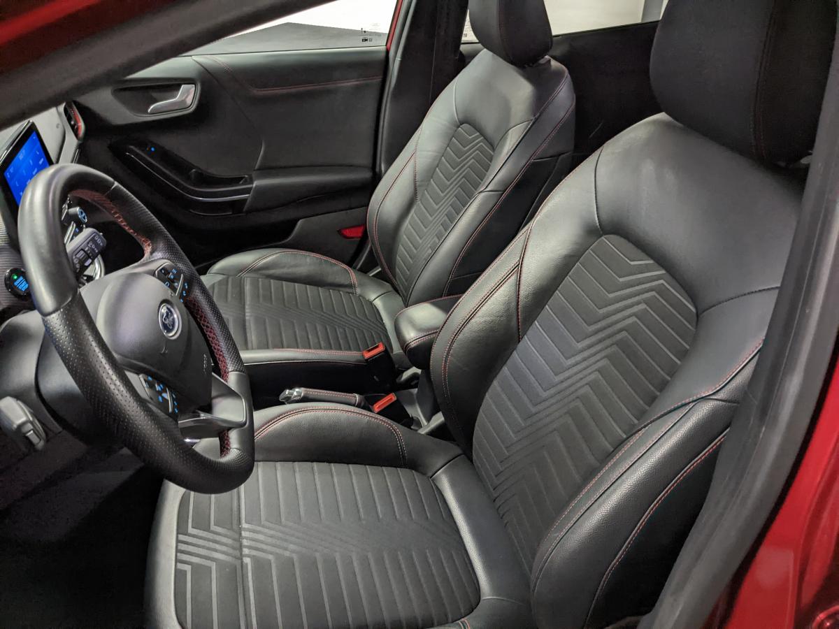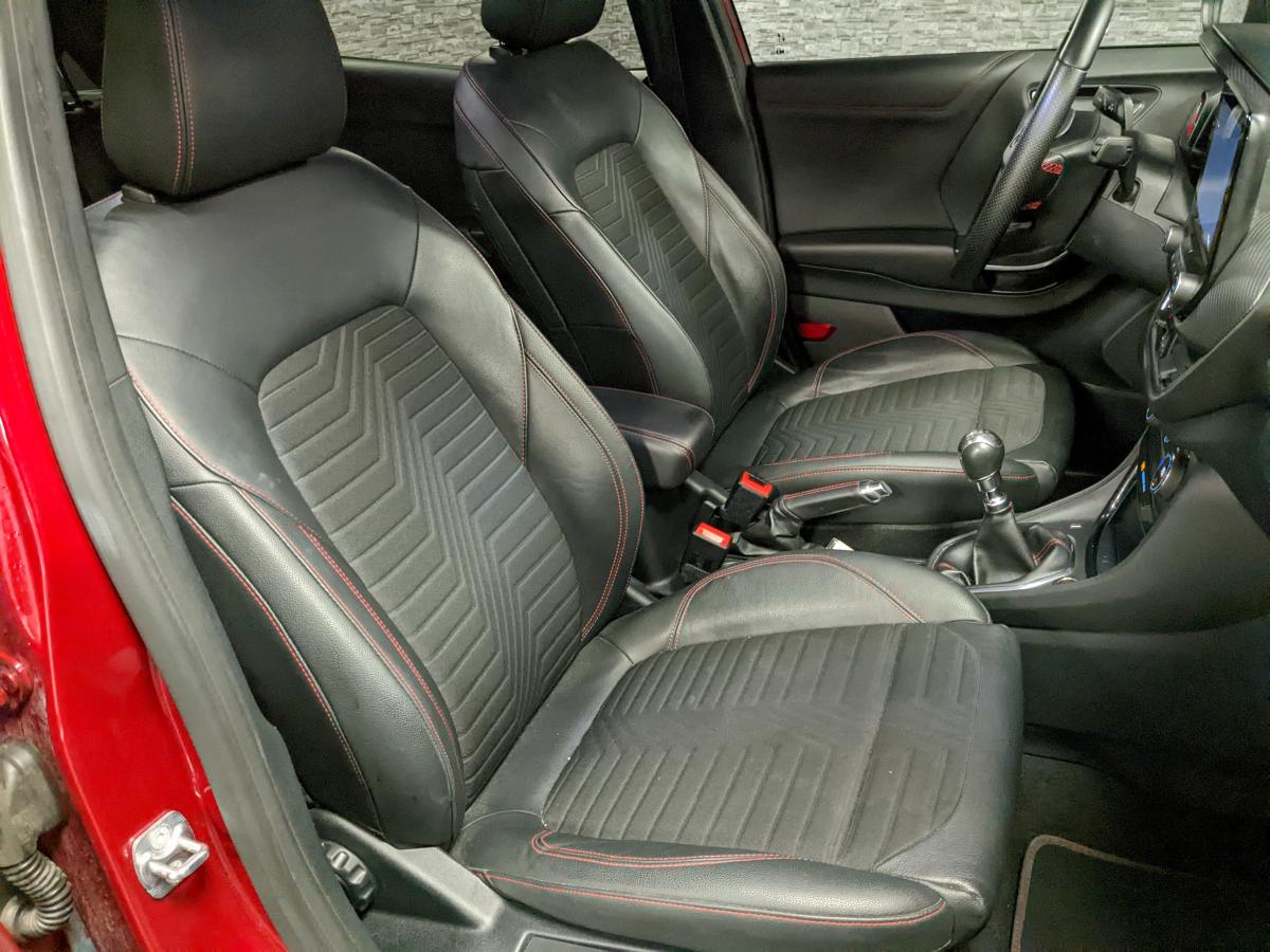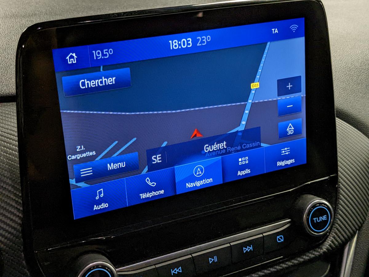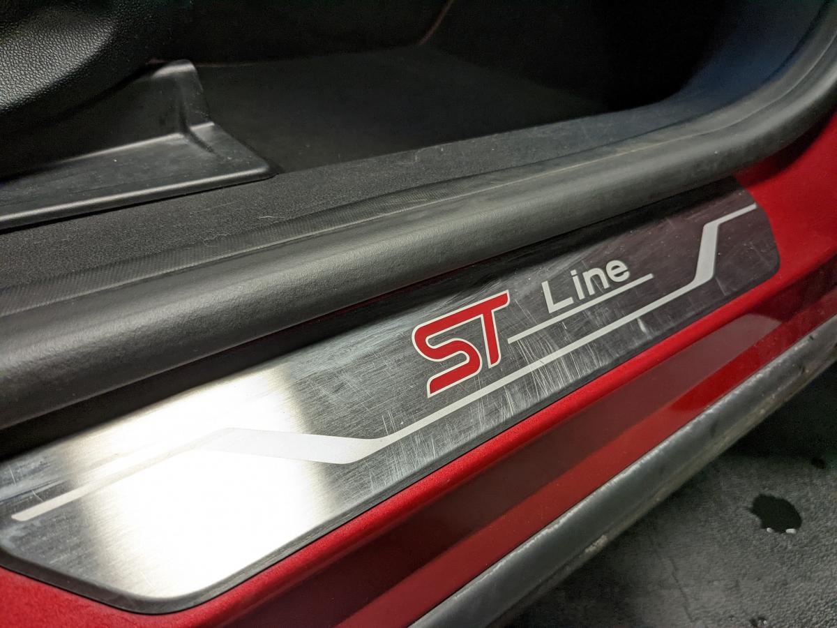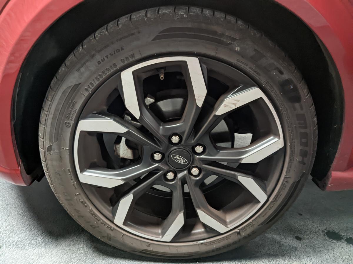 2 Fixations Isofix à l'arrière3ème appuie-tête arrière5 ceintures de sécurité 3 points5 Modes de conduite sélectionnables (normal, eco, sport, faible adhérence, trail)Aide au démarrage en côteAide au maintien dans la voie avec détection des bas-côtésAide au stationnement arrièreAirbags frontaux, latéraux (thorax) et rideauxAlerte d'oubli de ceintures avant/arrièreAlerte de franchissement Involontaire de ligneAllumage automatique des pharesBadges ST-LineBanquette rabattable 60/40Becquet arrière couleur carrosserieBouton de démarrage "Ford Power"Combiné d'instrumentation numérique 12,3" avec EcomodeConsole centrale avant avec deux porte-gobelets rétroéclairésConsole centrale avec accoudoir et rangementsContour des vitres latérales en noir finition brillanteCorrecteur électronique de trajectoire ESPDésactivation de l'airbag passagerDiffuseur intégré dans le pare-chocs arrièreDirection assistée électriqueEclairage d'ambiance intérieurFeux arrière à LEDFeux de jour à LEDFeux de route intelligents (passage feux de croisement/route automatique)FordPass Connect avec modem embarqué et fonction eCallFreins à disques AV et ARGrille de calandre ST-LineJantes alliage 18" 5x2 branches finition Black MattKit de réparation des pneumatiquesLevier de frein à main gainé de SensicoLevier de vitesses gainé de SensicoLimiteur de vitesse intelligentLogo MHEV sur HayonPédalier en aluminiumPack ConfortPare-brise acoustiquePare-chocs avant design ST-LinePare-chocs couleur carrosseriePeinture non-métallisée Bleu AbyssePhares avant antibrouillard avec fonction d'éclairage d'anglePlancher de coffre ajustablePlaques de seuils de portes avant ST-LinePrise 12 V sur console centrale avantRégulateur de vitesseRétroviseur intérieur électrochromeRétroviseurs extérieurs électriques couleur carrosserie, dégivrant et rabattables avec rappels de clignotantsSellerie Mixte noire tissu Tire on Casual et Sensico SalernoSièges avant massantsSièges avant réglables en hauteur avec soutien lombaireSortie d'échappement chroméeSuspensions sportSystème audio B&O avec radio numérique DAB, SYNC 3 avec écran tactile 8", commandes vocales, 2 ports USB, compatible AppLink, Apple CarPlay et Android auto, 10 hauts-parleursSystème de chargement du smartphone par inductionSystème de Navigation Europe et points d'intérêt MichelinSystème de prévention de collision avec freinage post-collision et détection piétonsSystème de surveillance de la pression des pneusSystème MyKey (seconde clé programmable)Tapis de sol avant et arrière avec surpiquresTrappe à carburant Ford EasyFuelVerrouillage centralisé à distanceVitres électriques avant et arrière avec descente et remontée à impulsionVitres arrière surteintéesVolant à méplat 3 branches ST-Line avec surpiqûres rouges