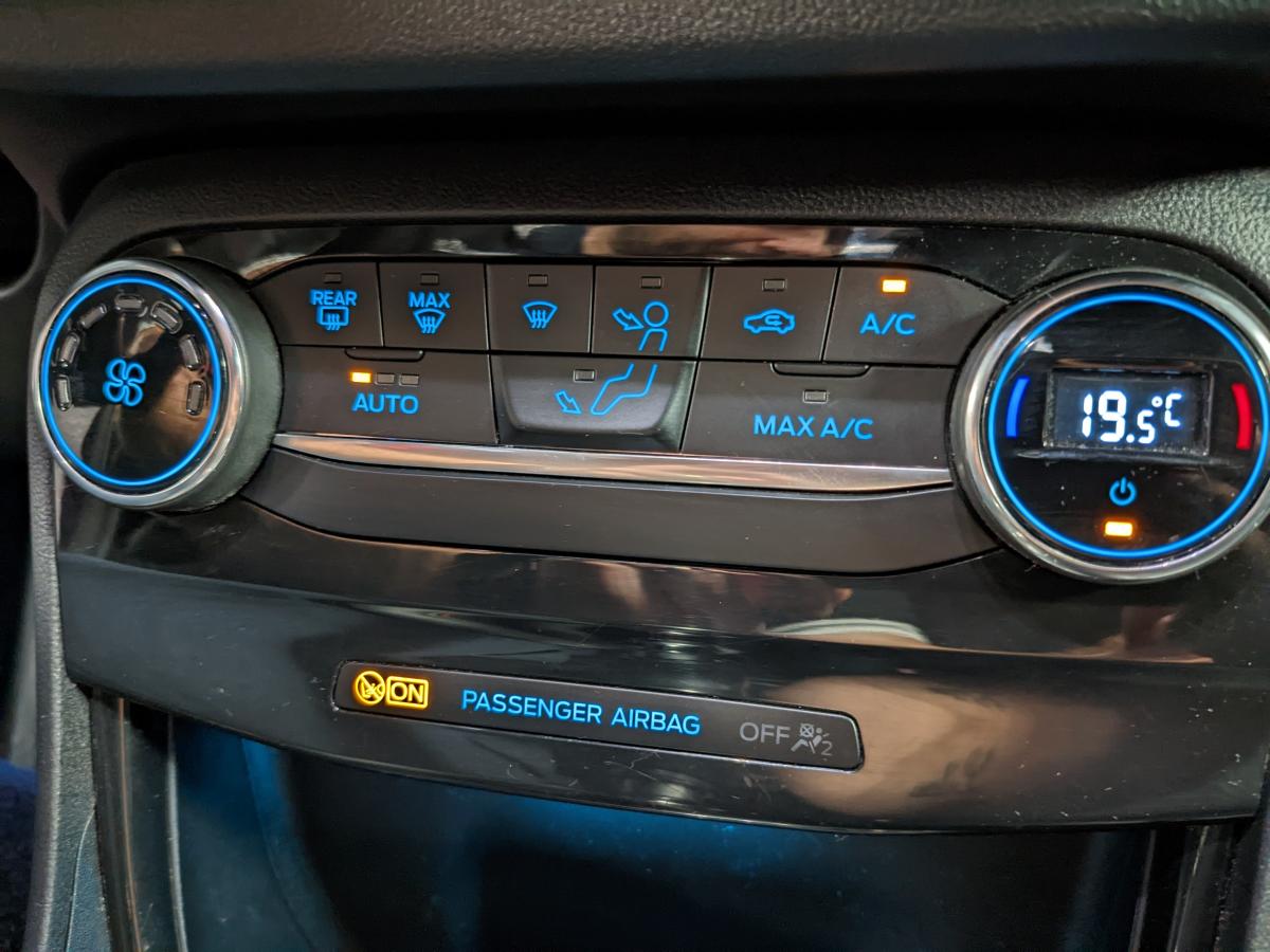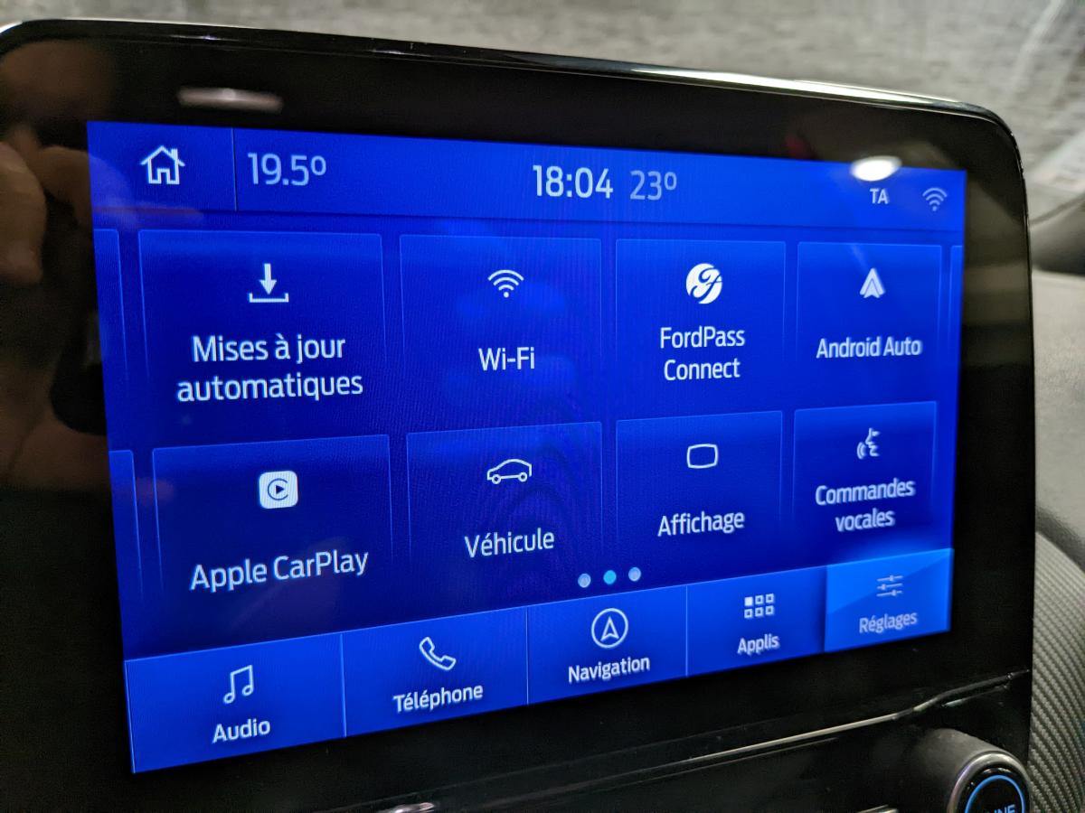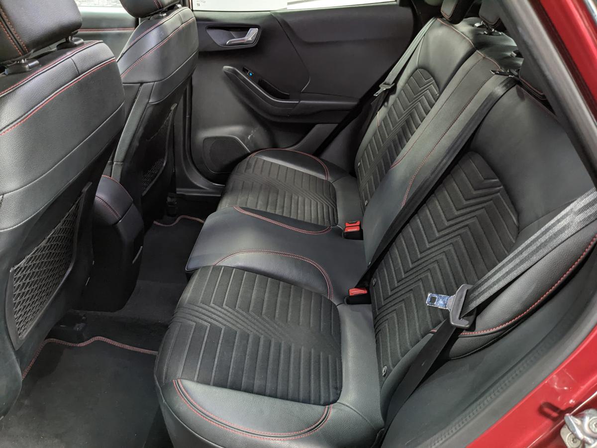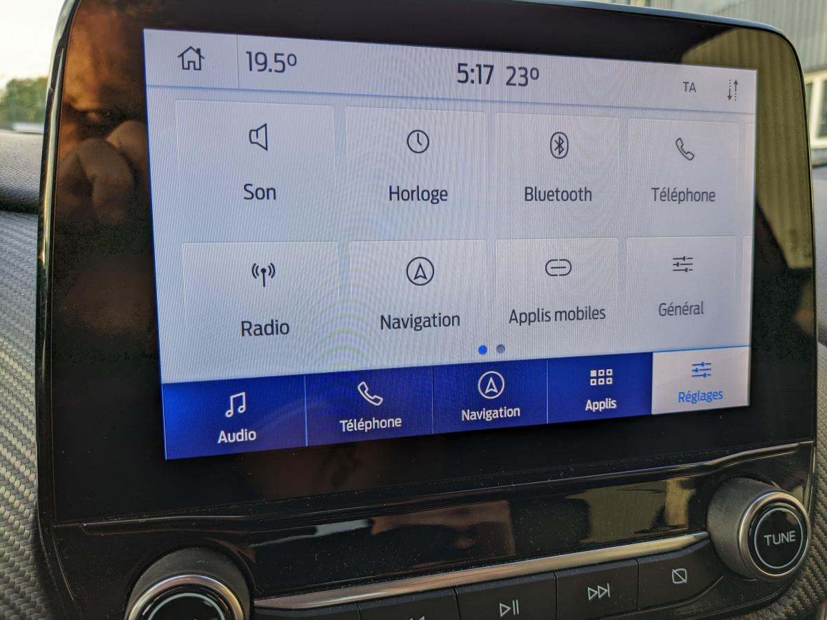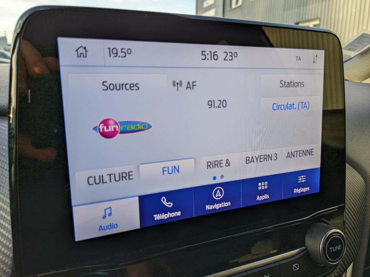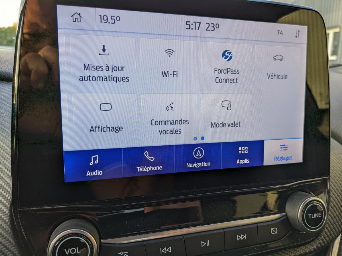 2 Fixations Isofix à l'arrière3ème appuie-tête arrière5 ceintures de sécurité 3 points5 Modes de conduite sélectionnables (normal, eco, sport, faible adhérence, trail)Aide au démarrage en côteAide au maintien dans la voie avec détection des bas-côtésAide au stationnement arrièreAirbags frontaux, latéraux (thorax) et rideauxAlerte d'oubli de ceintures avant/arrièreAlerte de franchissement Involontaire de ligneAllumage automatique des pharesBadges ST-LineBanquette rabattable 60/40Becquet arrière couleur carrosserieBouton de démarrage "Ford Power"Combiné d'instrumentation numérique 12,3" avec EcomodeConsole centrale avant avec deux porte-gobelets rétroéclairésConsole centrale avec accoudoir et rangementsContour des vitres latérales en noir finition brillanteCorrecteur électronique de trajectoire ESPDésactivation de l'airbag passagerDiffuseur intégré dans le pare-chocs arrièreDirection assistée électriqueEclairage d'ambiance intérieurFeux arrière à LEDFeux de jour à LEDFeux de route intelligents (passage feux de croisement/route automatique)FordPass Connect avec modem embarqué et fonction eCallFreins à disques AV et ARGrille de calandre ST-LineJantes alliage 18" 5x2 branches finition Black MattKit de réparation des pneumatiquesLevier de frein à main gainé de SensicoLevier de vitesses gainé de SensicoLimiteur de vitesse intelligentLogo MHEV sur HayonPédalier en aluminiumPack ConfortPare-brise acoustiquePare-chocs avant design ST-LinePare-chocs couleur carrosseriePeinture non-métallisée Bleu AbyssePhares avant antibrouillard avec fonction d'éclairage d'anglePlancher de coffre ajustablePlaques de seuils de portes avant ST-LinePrise 12 V sur console centrale avantRégulateur de vitesseRétroviseur intérieur électrochromeRétroviseurs extérieurs électriques couleur carrosserie, dégivrant et rabattables avec rappels de clignotantsSellerie Mixte noire tissu Tire on Casual et Sensico SalernoSièges avant massantsSièges avant réglables en hauteur avec soutien lombaireSortie d'échappement chroméeSuspensions sportSystème audio B&O avec radio numérique DAB, SYNC 3 avec écran tactile 8", commandes vocales, 2 ports USB, compatible AppLink, Apple CarPlay et Android auto, 10 hauts-parleursSystème de chargement du smartphone par inductionSystème de Navigation Europe et points d'intérêt MichelinSystème de prévention de collision avec freinage post-collision et détection piétonsSystème de surveillance de la pression des pneusSystème MyKey (seconde clé programmable)Tapis de sol avant et arrière avec surpiquresTrappe à carburant Ford EasyFuelVerrouillage centralisé à distanceVitres électriques avant et arrière avec descente et remontée à impulsionVitres arrière surteintéesVolant à méplat 3 branches ST-Line avec surpiqûres rouges