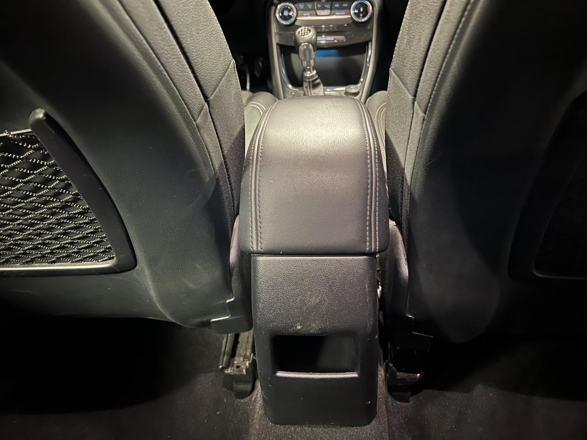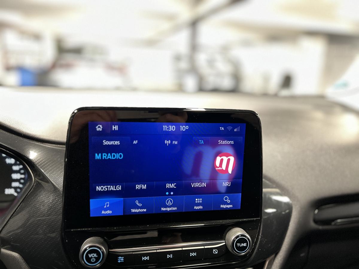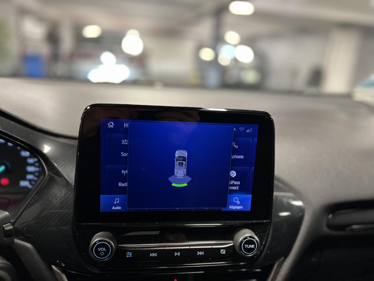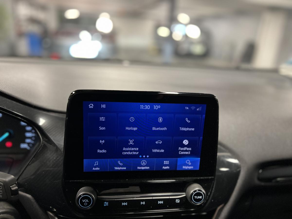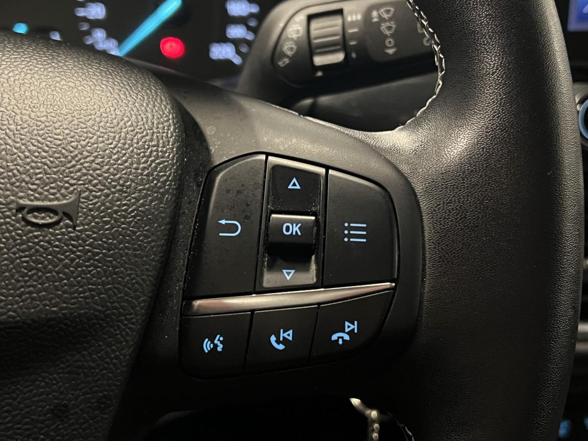 2 Fixations Isofix à l'arrière3ème appuie-tête arrière5 ceintures de sécurité 3 points5 Modes de conduite sélectionnables (normal, eco, sport, faible adhérence, trail)Aide au démarrage en côteAide au Freinage d'Urgence (AFU)Aide au maintien dans la voie avec détection des bas-côtésAide au stationnement arrièreAirbags frontaux, latéraux (thorax) et rideauxAlerte d'oubli de ceintures avant/arrièreAlerte de franchissement Involontaire de ligneAllumage automatique des pharesAntipatinageAppuie-tête arrière réglables en hauteurAvertisseur de freinage d'urgenceBanquette rabattable 60/40Bas de caisse avec finitions chroméesBecquet arrière couleur carrosserieClimatisation manuelleCombiné d'instrumentation TFT couleur 4,2" avec EcomodeConsole centrale avant avec deux porte-gobelets rétroéclairésConsole centrale avec accoudoir et rangementsContour des vitres latérales en noir finition brillanteCorrecteur électronique de trajectoire ESPDésactivation de l'airbag du passager avantDirection assistée électriqueEclairage d'ambiance intérieurFeux arrière à LEDFeux de jour à LEDFeux de route intelligents (passage feux de croisement/route automatique)FordPass Connect avec modem embarqué et fonction eCallFrein à disques à l'avantGrille de calandre avec barres horizontales et contour façon chromeLevier de frein à main gainé de SensicoLevier de vitesses gainé de SensicoLimiteur de vitesse intelligentPare-chocs couleur carrosseriePhares avant antibrouillard avec fonction d'éclairage d'anglePlancher de coffre ajustablePrise 12 V sur console centrale avantRégulateur de vitesseRétroviseurs extérieurs électriques couleur carrosserie, dégivrant et rabattables avec rappels de clignotantsSellerie tissu noir AlhambraSiège conducteur réglable en hauteur avec soutien lombairesSuspension standardSystème audio Ford SYNC 3 avec écran tactile 8", commandes vocales, 2 ports USB, alerte contresens, compatible AppLink, Apple CarPlay et Android auto, 6 hauts-parleursSystème de freinage antiblocage (ABS)Système de Navigation Europe et points d'intérêt MichelinSystème de prévention de collision avec freinage post-collision et détection piétonsSystème de surveillance de la pression des pneusSystème MyKey (seconde clé programmable)Tableau de bord noirTrappe à carburant Ford EasyFuelVerrouillage centralisé à distanceVitres électriques avant et arrière avec descente et remontée à impulsionVolant 3 branches Sensico