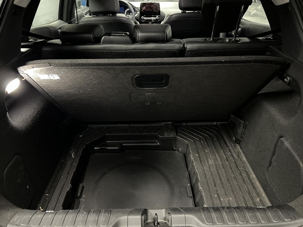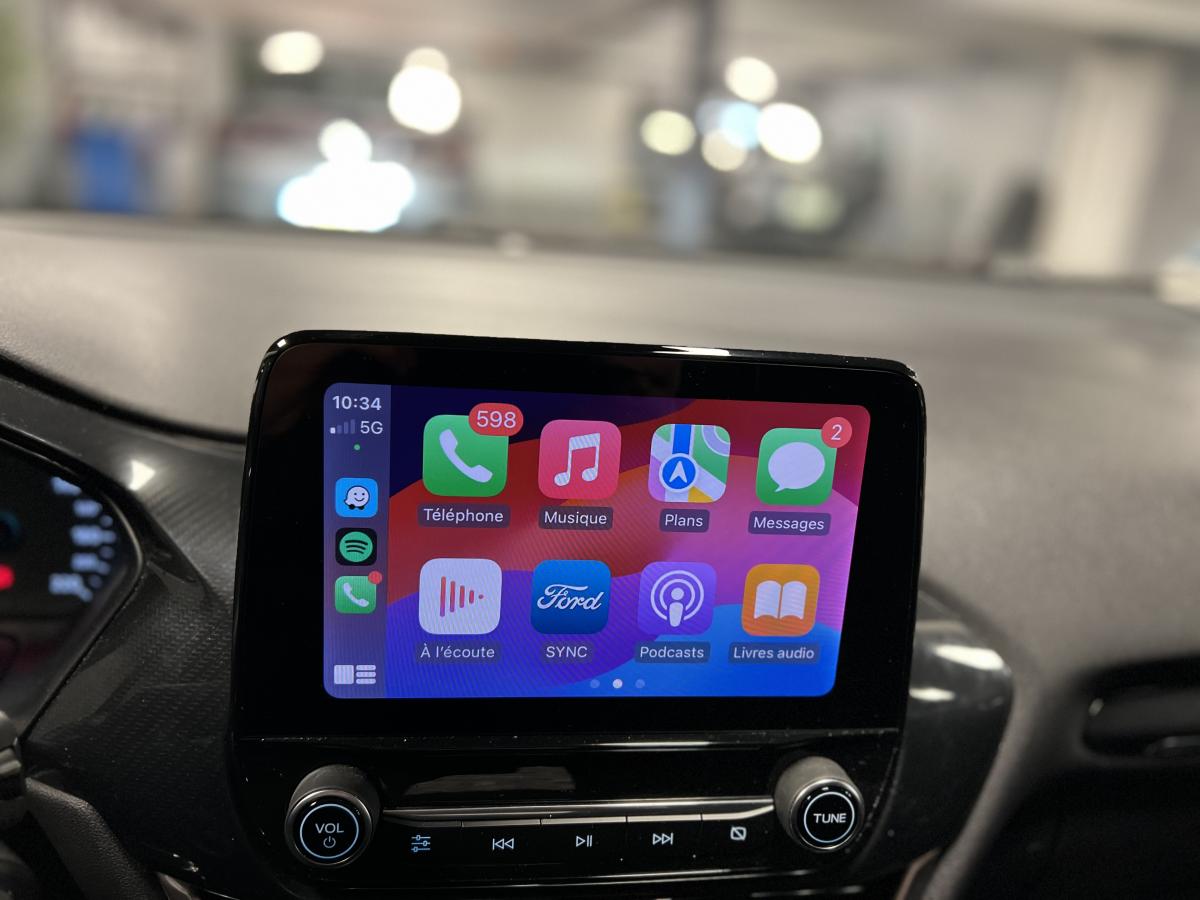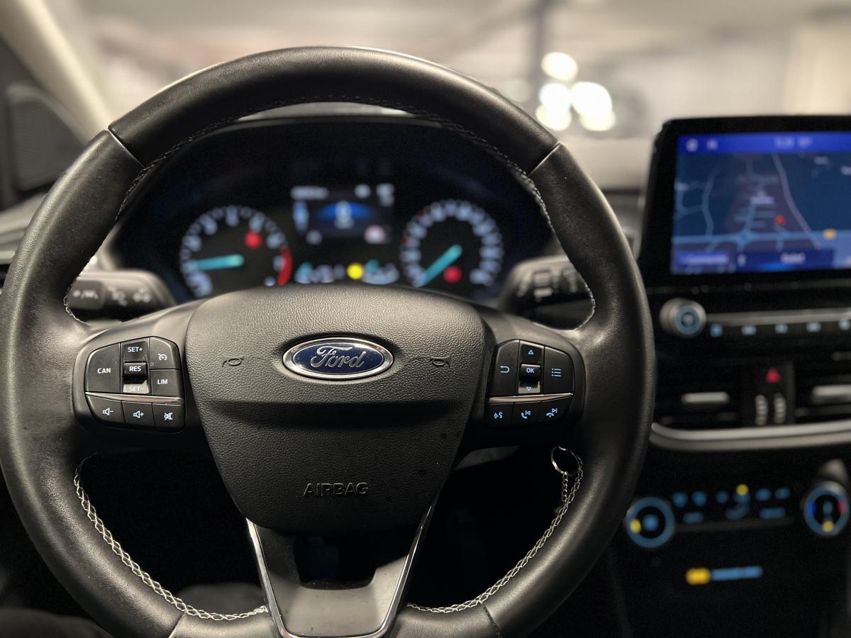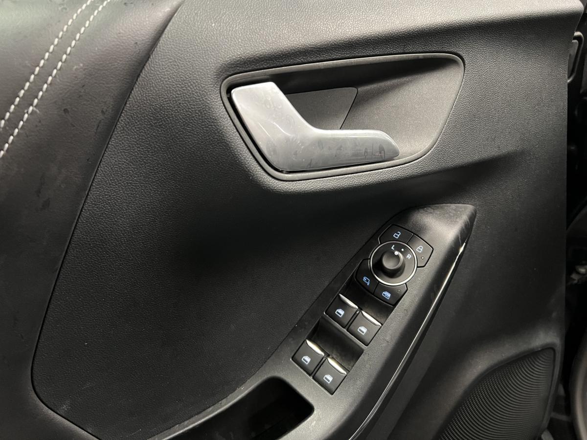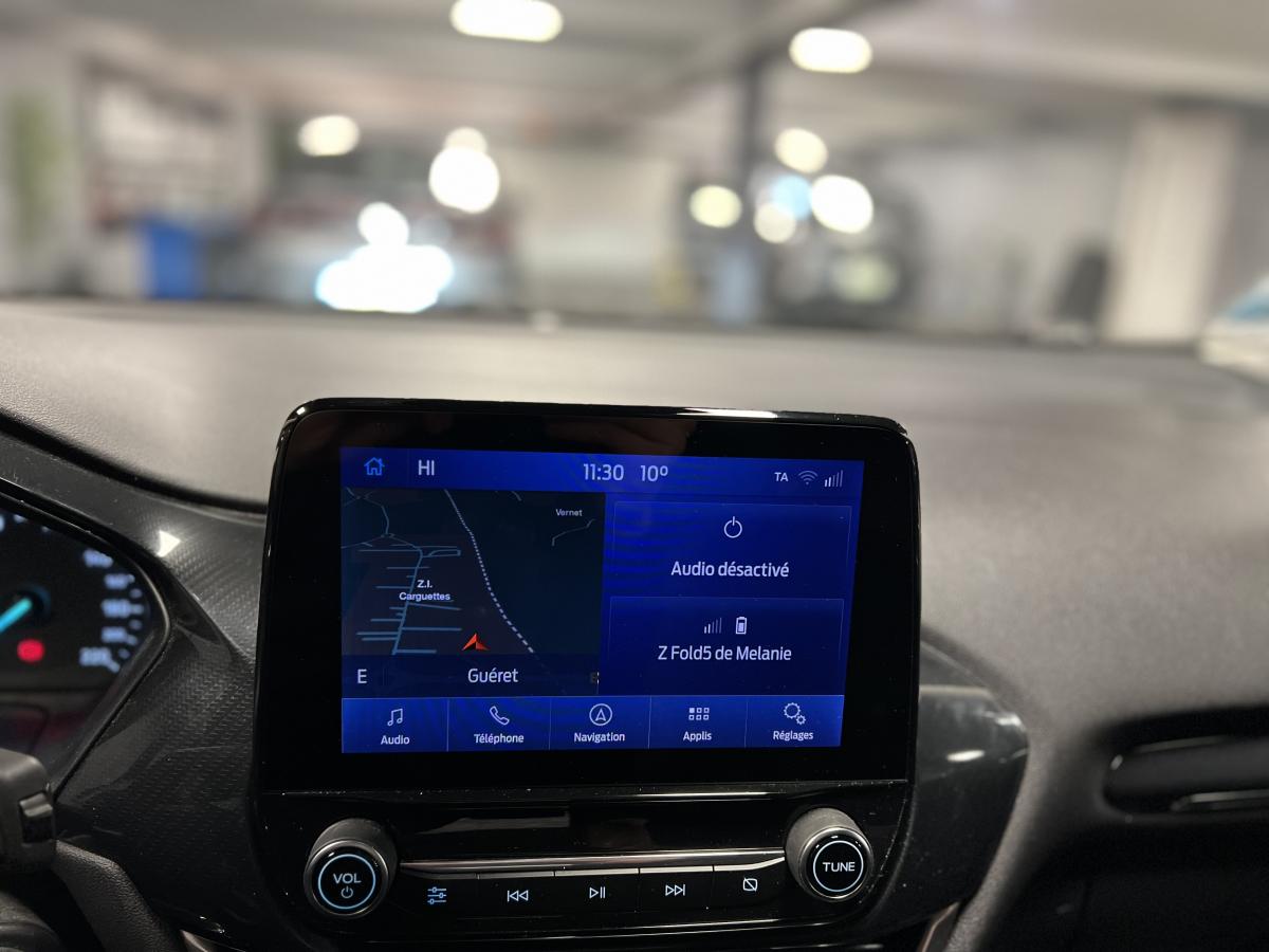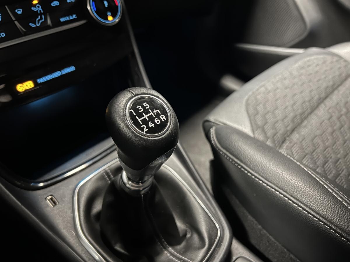 2 Fixations Isofix à l'arrière3ème appuie-tête arrière5 ceintures de sécurité 3 points5 Modes de conduite sélectionnables (normal, eco, sport, faible adhérence, trail)Aide au démarrage en côteAide au Freinage d'Urgence (AFU)Aide au maintien dans la voie avec détection des bas-côtésAide au stationnement arrièreAirbags frontaux, latéraux (thorax) et rideauxAlerte d'oubli de ceintures avant/arrièreAlerte de franchissement Involontaire de ligneAllumage automatique des pharesAntipatinageAppuie-tête arrière réglables en hauteurAvertisseur de freinage d'urgenceBanquette rabattable 60/40Bas de caisse avec finitions chroméesBecquet arrière couleur carrosserieClimatisation manuelleCombiné d'instrumentation TFT couleur 4,2" avec EcomodeConsole centrale avant avec deux porte-gobelets rétroéclairésConsole centrale avec accoudoir et rangementsContour des vitres latérales en noir finition brillanteCorrecteur électronique de trajectoire ESPDésactivation de l'airbag du passager avantDirection assistée électriqueEclairage d'ambiance intérieurFeux arrière à LEDFeux de jour à LEDFeux de route intelligents (passage feux de croisement/route automatique)FordPass Connect avec modem embarqué et fonction eCallFrein à disques à l'avantGrille de calandre avec barres horizontales et contour façon chromeLevier de frein à main gainé de SensicoLevier de vitesses gainé de SensicoLimiteur de vitesse intelligentPare-chocs couleur carrosseriePhares avant antibrouillard avec fonction d'éclairage d'anglePlancher de coffre ajustablePrise 12 V sur console centrale avantRégulateur de vitesseRétroviseurs extérieurs électriques couleur carrosserie, dégivrant et rabattables avec rappels de clignotantsSellerie tissu noir AlhambraSiège conducteur réglable en hauteur avec soutien lombairesSuspension standardSystème audio Ford SYNC 3 avec écran tactile 8", commandes vocales, 2 ports USB, alerte contresens, compatible AppLink, Apple CarPlay et Android auto, 6 hauts-parleursSystème de freinage antiblocage (ABS)Système de Navigation Europe et points d'intérêt MichelinSystème de prévention de collision avec freinage post-collision et détection piétonsSystème de surveillance de la pression des pneusSystème MyKey (seconde clé programmable)Tableau de bord noirTrappe à carburant Ford EasyFuelVerrouillage centralisé à distanceVitres électriques avant et arrière avec descente et remontée à impulsionVolant 3 branches Sensico