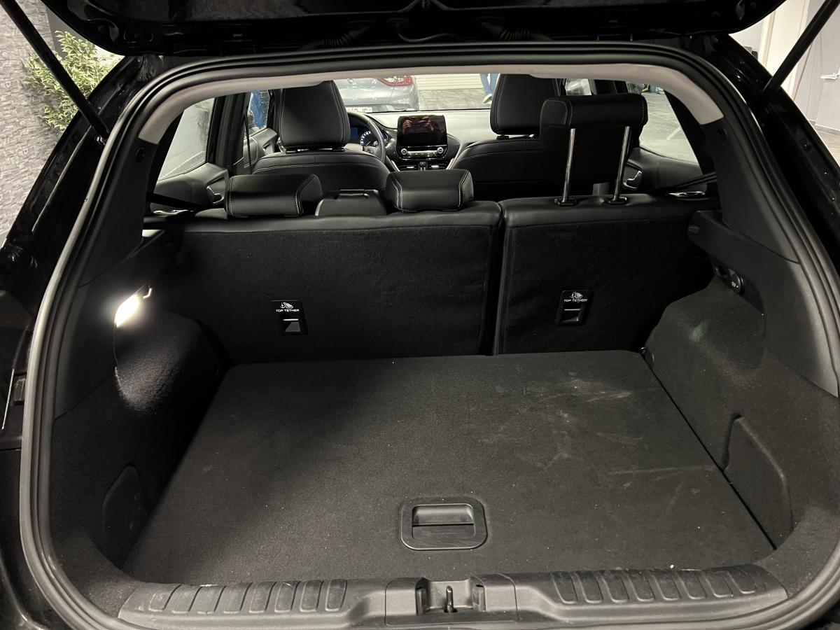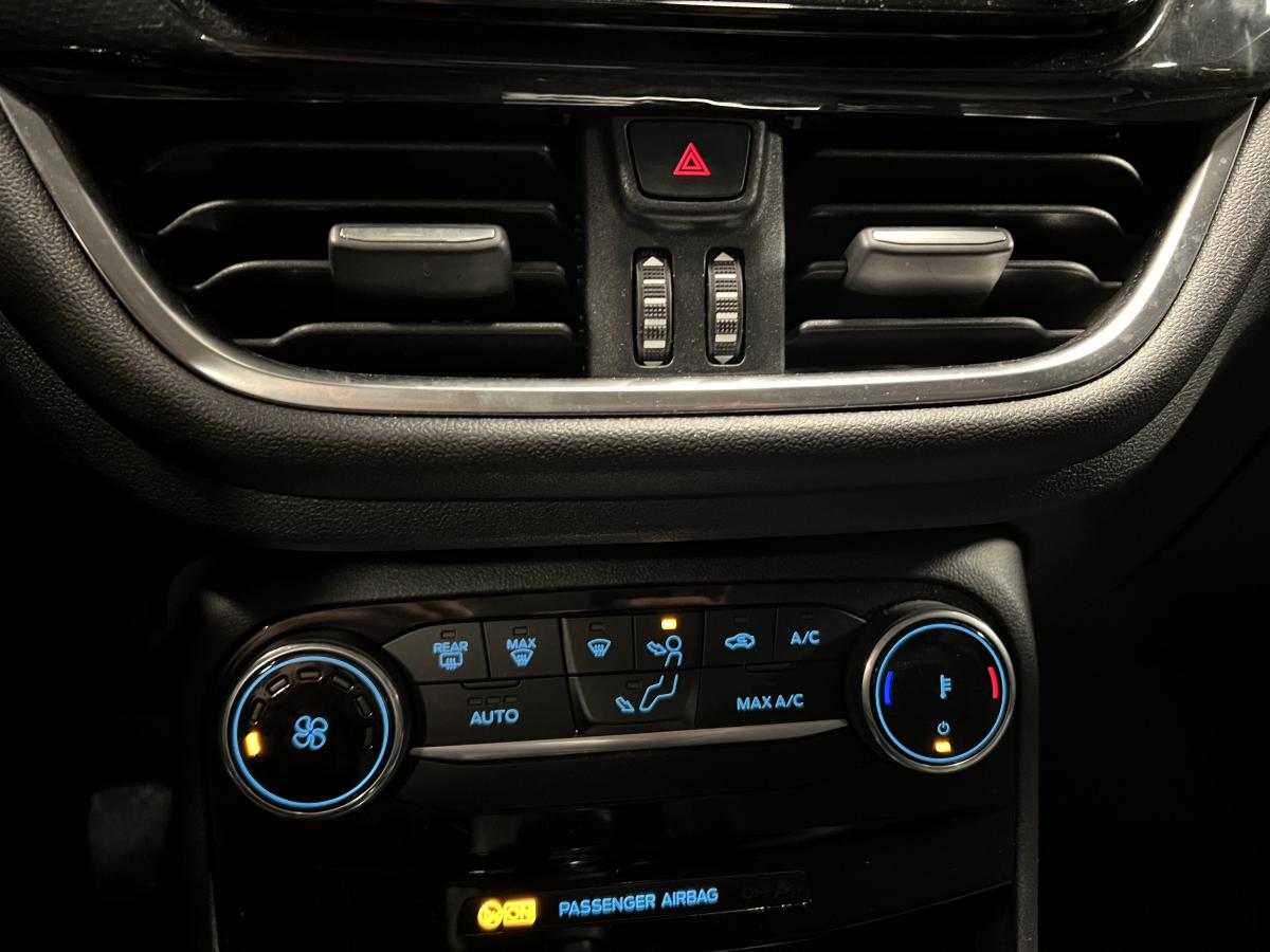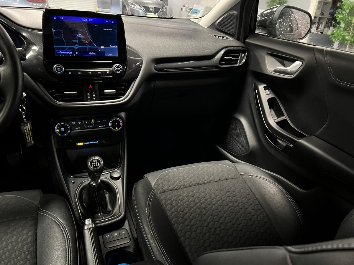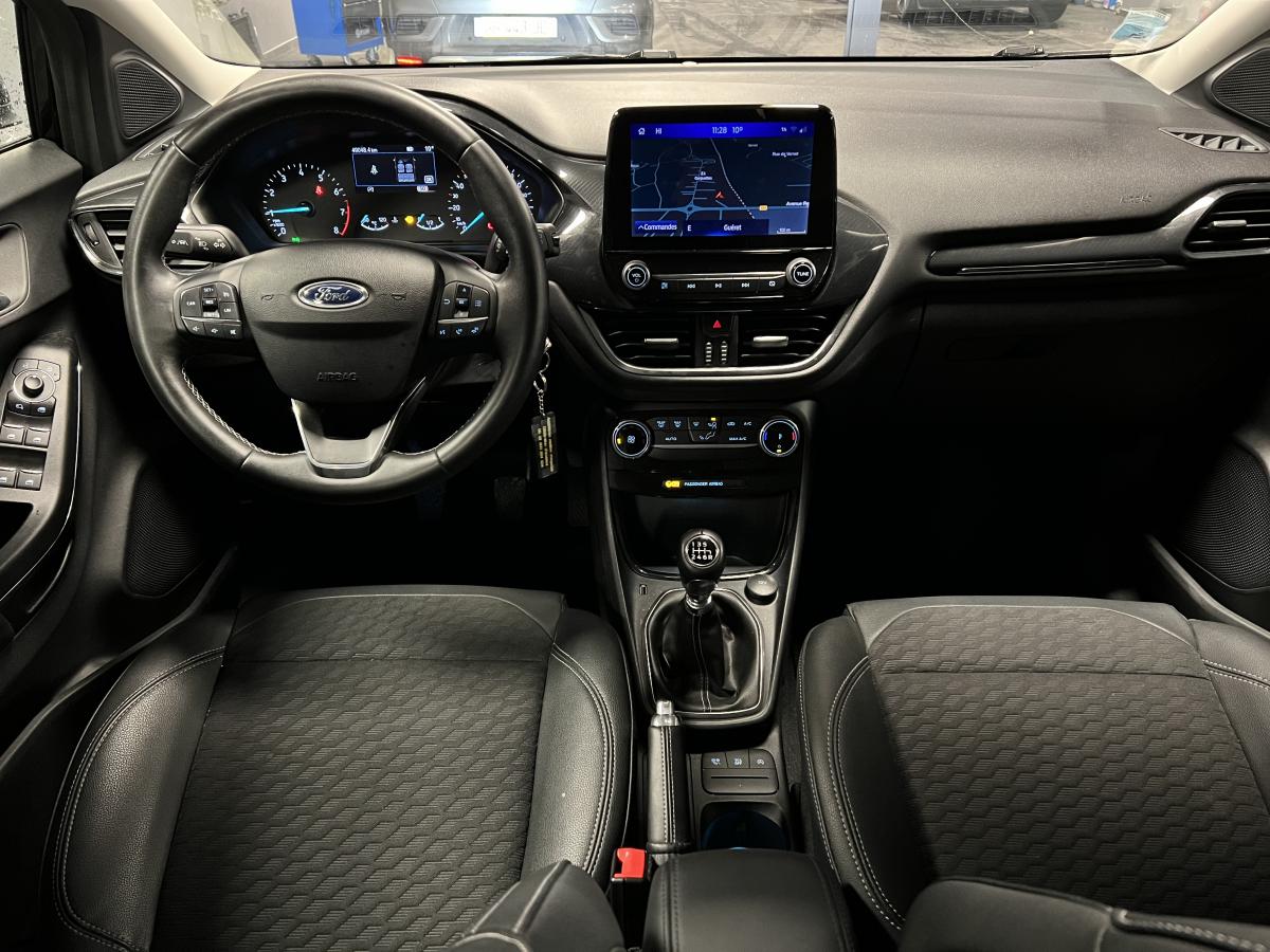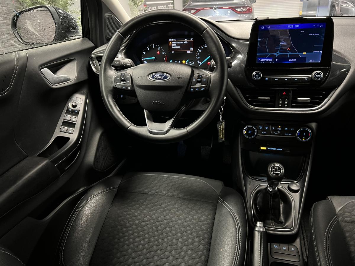 2 Fixations Isofix à l'arrière3ème appuie-tête arrière5 ceintures de sécurité 3 points5 Modes de conduite sélectionnables (normal, eco, sport, faible adhérence, trail)Aide au démarrage en côteAide au Freinage d'Urgence (AFU)Aide au maintien dans la voie avec détection des bas-côtésAide au stationnement arrièreAirbags frontaux, latéraux (thorax) et rideauxAlerte d'oubli de ceintures avant/arrièreAlerte de franchissement Involontaire de ligneAllumage automatique des pharesAntipatinageAppuie-tête arrière réglables en hauteurAvertisseur de freinage d'urgenceBanquette rabattable 60/40Bas de caisse avec finitions chroméesBecquet arrière couleur carrosserieClimatisation manuelleCombiné d'instrumentation TFT couleur 4,2" avec EcomodeConsole centrale avant avec deux porte-gobelets rétroéclairésConsole centrale avec accoudoir et rangementsContour des vitres latérales en noir finition brillanteCorrecteur électronique de trajectoire ESPDésactivation de l'airbag du passager avantDirection assistée électriqueEclairage d'ambiance intérieurFeux arrière à LEDFeux de jour à LEDFeux de route intelligents (passage feux de croisement/route automatique)FordPass Connect avec modem embarqué et fonction eCallFrein à disques à l'avantGrille de calandre avec barres horizontales et contour façon chromeLevier de frein à main gainé de SensicoLevier de vitesses gainé de SensicoLimiteur de vitesse intelligentPare-chocs couleur carrosseriePhares avant antibrouillard avec fonction d'éclairage d'anglePlancher de coffre ajustablePrise 12 V sur console centrale avantRégulateur de vitesseRétroviseurs extérieurs électriques couleur carrosserie, dégivrant et rabattables avec rappels de clignotantsSellerie tissu noir AlhambraSiège conducteur réglable en hauteur avec soutien lombairesSuspension standardSystème audio Ford SYNC 3 avec écran tactile 8", commandes vocales, 2 ports USB, alerte contresens, compatible AppLink, Apple CarPlay et Android auto, 6 hauts-parleursSystème de freinage antiblocage (ABS)Système de Navigation Europe et points d'intérêt MichelinSystème de prévention de collision avec freinage post-collision et détection piétonsSystème de surveillance de la pression des pneusSystème MyKey (seconde clé programmable)Tableau de bord noirTrappe à carburant Ford EasyFuelVerrouillage centralisé à distanceVitres électriques avant et arrière avec descente et remontée à impulsionVolant 3 branches Sensico