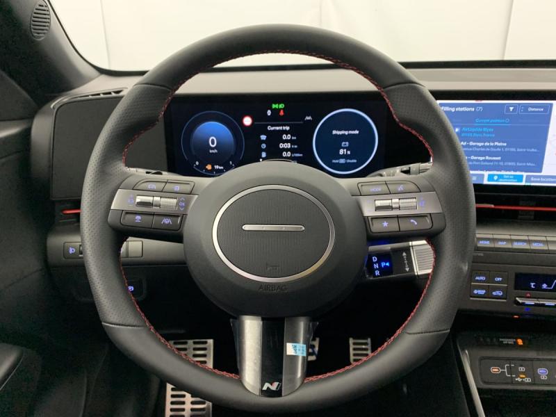 7 Airbags: frontaux conducteur et passager, latéraux AV, rideaux AV/AR, central AVAccoudoir AR avec porte-gobelets intégréAccoudoir AVAide au stationnement AV et ARAlerte de circulation transversale à l'AR avec fonction freinageAlerte de présence de passager ARAllumage automatique des feuxAssistance à la sortie du véhicule pour passagers ARAssistance active à la conduite sur autorouteAssistance active au maintien et au suivi de voieCaméra de recul avec lignes de guidage dynamiquesCapteur de pluieChargeur sans fil pour téléphone compatibleClimatisation automatique bi-zone avec fonction Driver Only et capteur de désembuage automatique du pare-briseCommandes audio au volantCompatibilité Apple CarPlay et Android AutoCompteurs numériques 12.3"Connexion BluetoothConsole de rangement sous accoudoir AVDétection de fatigue du conducteurDossier AR rabattable 40/20/40Drive Mode (Eco, Sport, Snow)eCall : appel d'urgence automatique aux services de secours avec géolocalisation du véhiculeFeux AR à LEDFeux AV bi-LEDFeux de jour et feux de position à LEDFrein de parking électrique avec fonction auto-holdFreinage anti multi-collisionsFreinage d'urgence autonome avec reconnaissance véhicule, piéton, cycliste et fonction intersectionFreinage régénératif modulable via palettes au volantGarantie constructeur 5 ans ramenée à 3 ansMiroirs de courtoisie éclairés conducteur et passager AVPlancher de coffre modulablePoches aumonières au dos des sièges AVPoignées de portes intérieures grain métalPrise 12V à l'AVProtections d'ailes gris anthraciteRéception radio numérique terrestre (DAB)Régulateur de vitesse adaptatif intelligentRétroviseur intérieur jour/nuit automatiqueRétroviseurs électriques et dégivrantsRétroviseurs rabattables électriquementRails de toitReconnaissance des panneaux de limitation de vitesse avec limiteur de vitesse intelligentSellerie tissu N LineSiège conducteur avec support lombaireSièges AV réglables en hauteurSurveillance active des angles mortsSystème audio RDS, compatible MP3, 4HP et 2 tweetersSystème d'accès mains-libres et démarrage sans cléSystème de navigation Europe avec programme de mise à jour à distance et services Hyundai LiveSystème ISOFIX pour siège enfant aux places latérales ARSystème multimédia avec écran couleur tactile 12,3"Transmission à commande électriqueVerrouillage automatique des portes en roulantVerrouillage centralisé à distanceVitres électriques AV/AR et séquentielle à l'AVVitres AR surteintéesVolant gainé cuir