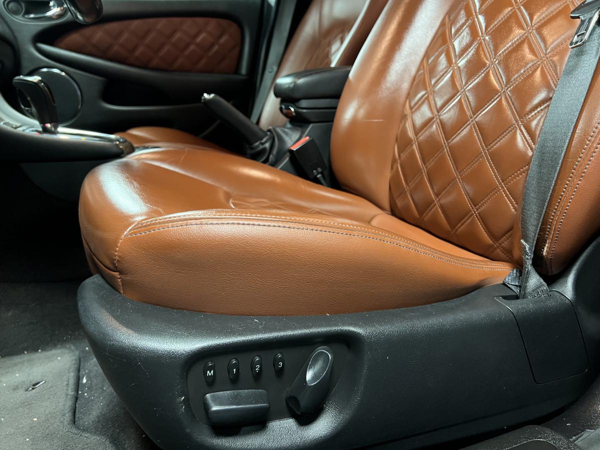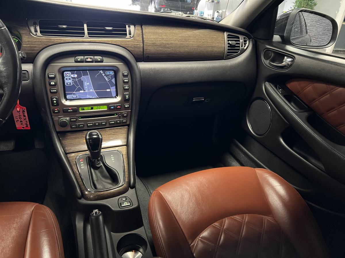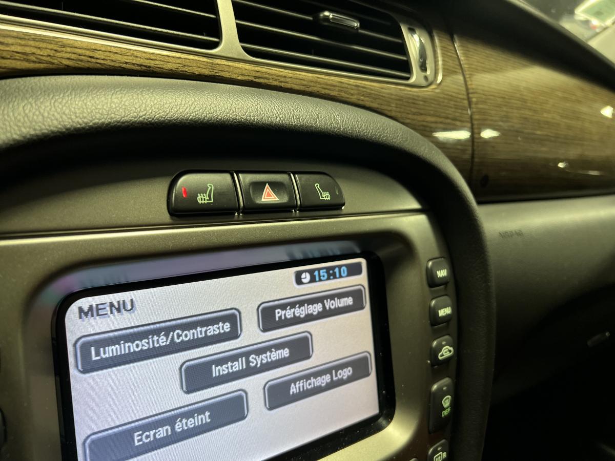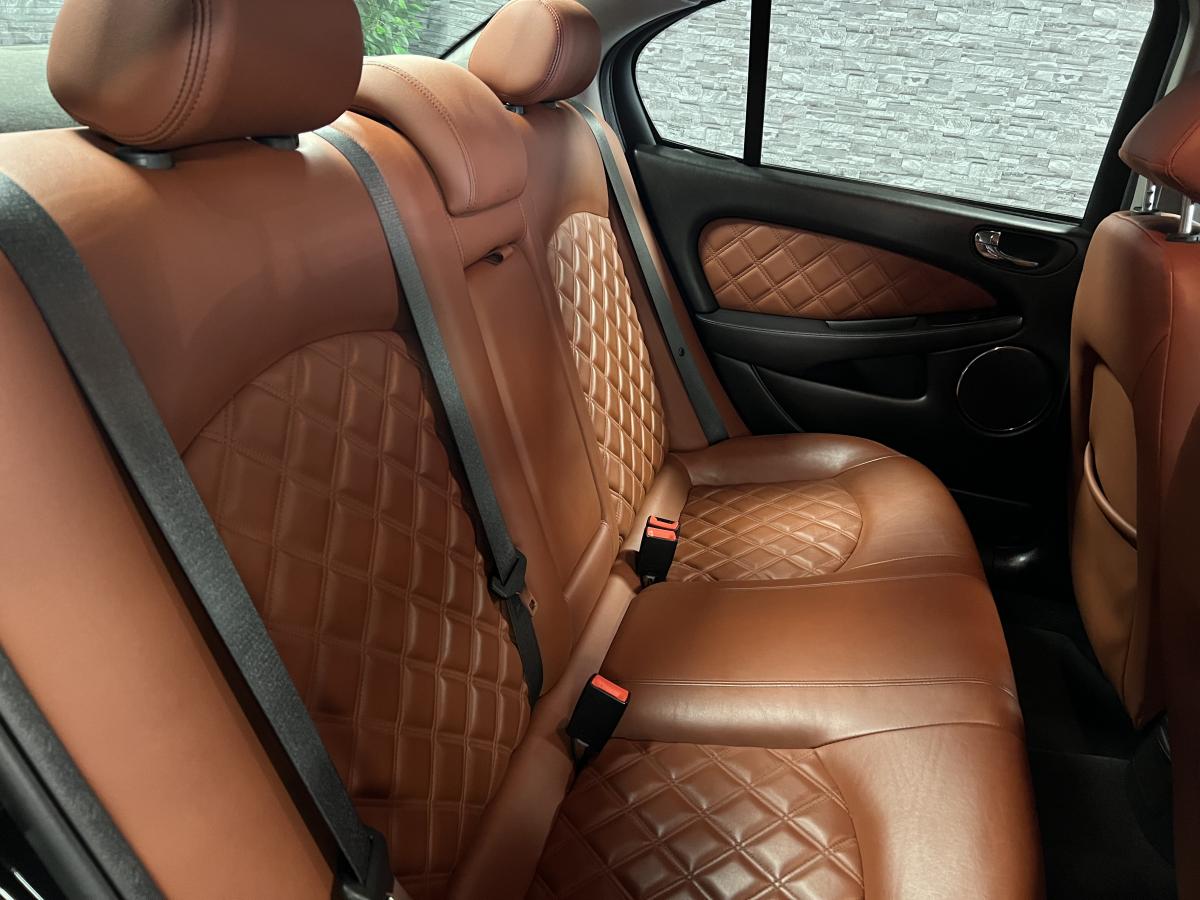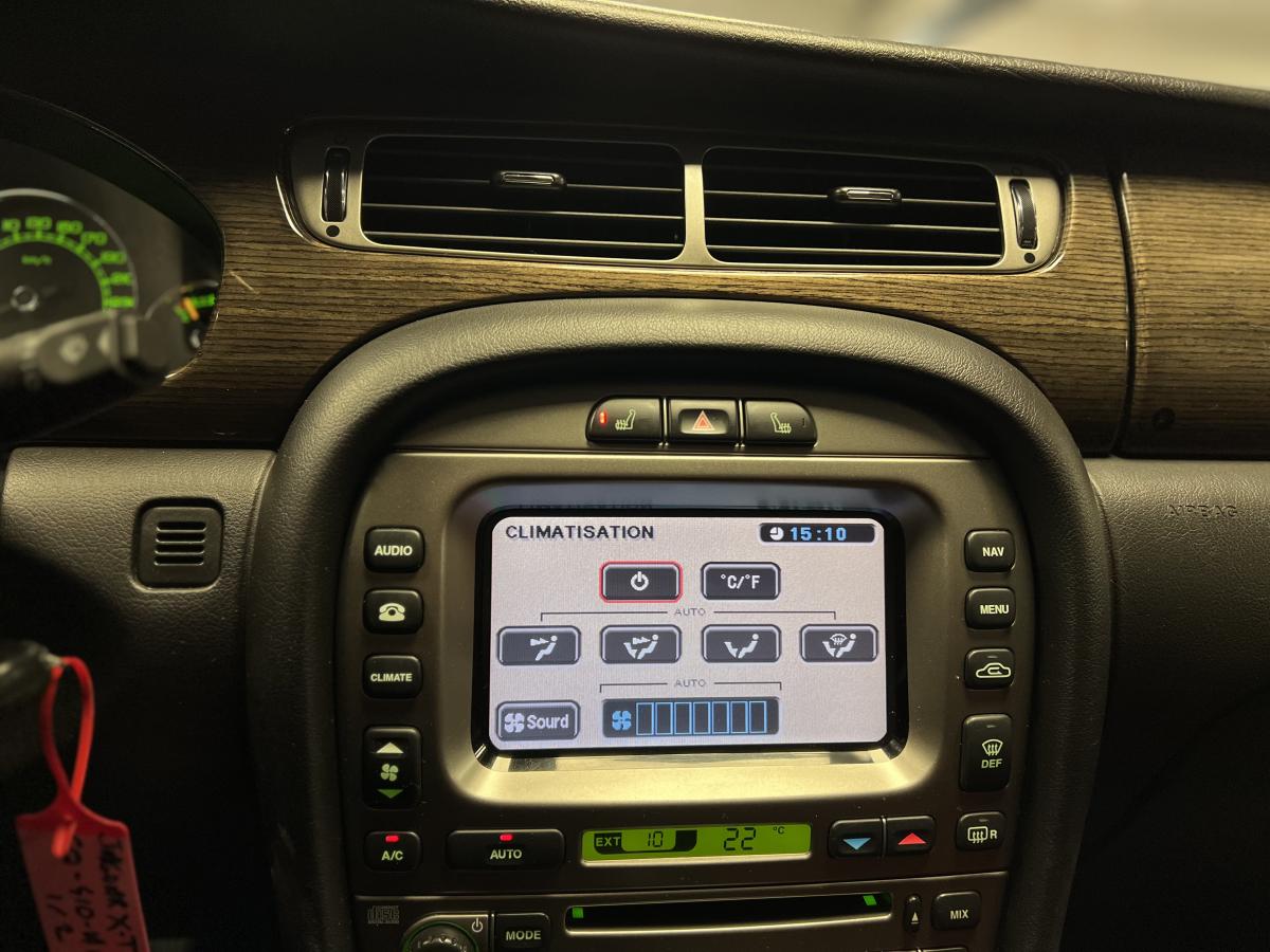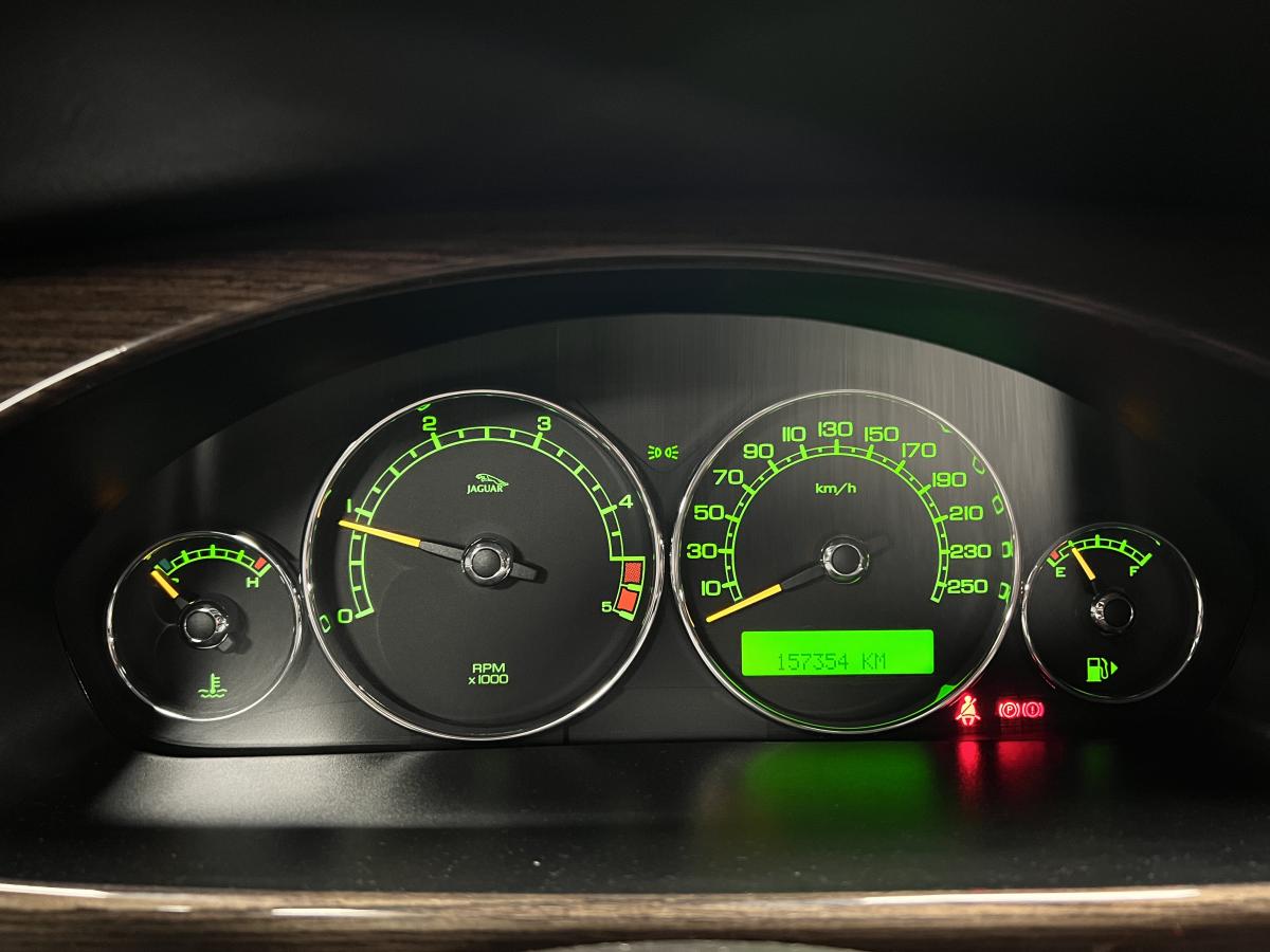 Accoudoir central arrière avec double porte-verreAllumage automatique des phares avec réglage manuel de la hauteur du faisceauAntipatinage Électronique (ETC)Bac de rangement dans la console centrale avant et accoudoir coulissantBadge Jaguar « Executive »Baguettes de porte intérieures en ronce de noyerBanquette arrière fractionnable en 70/30Boiserie ronce de noyerClimatiseur automatique avec filtre à pollen et affi chage de la température extérieureColonne de direction réglable manuellement en hauteur et en profondeurContrôle dynamique de la stabilité (DSC) avec assistance au freinage d'urgence (EBA)Direction assistée à démultiplication variable en fonction de l'angle de braquageDouble porte-verre avantEncadrement de calandre couleur carrosserie avec encadrement intérieur chroméEntourage des vitres latérales chroméEssuie vitre à déclenchement automatiqueGrille de calandre maillée brillante avec badge « tête de Jaguar » centralJantes en alliage Barbados 7" x 17"Lève-vitres électriques avant et arrière à anti-pincement, commandés par simple impulsionLecteur simple CDOrdinateur de bordPare-brise arrière chauffant à temporisationPare-soleil avec miroirs de courtoisie éclairés, conducteur et passager avantPlaques de seuil de porte à l'arrièrePommeau de levier de vitesse cuirProjecteurs antibrouillard avantRégulateur automatique de vitesse avec commandes au volantRétroviseur intérieur automatique jour/nuitRétroviseurs extérieurs chauffants et escamotables électriquementRétroviseurs extérieurs couleur carrosserie, chauffants et réglables électriquement avec rappels de clignotants intégrésSièges avant chauffants avec réglages indépendantsSièges en cuir avec double couture horizontale et passepoils contrastés, réglables électriquement en 10 directions (incluant les supports lombaires) pour les sièges conducteur et passager avantSuspension TouringSystème audio Jaguar 120WSystème d'aide au parking arrièreSystème de téléphonie BluetoothTapis de sol textile à l'avant et à l'arrièreTrois appuie-tête arrièreTrois mémorisations possibles pour les réglages du siège conducteur et des rétroviseurs extérieursVolant 4 branches multifonctions habillé de cuir avec commandes du système audio, du régulateur de vitesse, du système de téléphonie Bluetooth® (si option montée) et commandes vocales JaguarVoice®