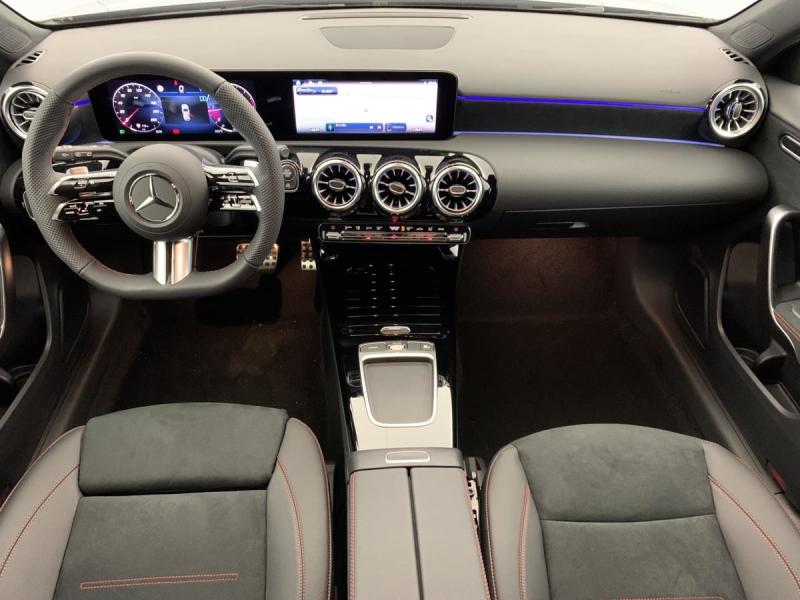 ABS (anti-blocage de roues), ASR (antipatinage), BAS (freinage d'urgence assisté)Accoudoir rabattable dans la console centrale pour le conducteur et le passager AVADAPTATIVE BRAKE avec fonction HOLD et système d'aide au démarrage en côte, préremplissage et séchage des freins par freinage en cas de pluieAirbags frontaux pour le conducteur et le passager AVAirbags latéraux pour le conducteur et le passager AV (airbags combinés thorax et bassin)Airbags rideauxAntenne pour GPSAppuie-tête intégraux sur les sièges AVAssistant de limitation de vitesse par lecture des panneaux grâce à une caméraAssistant de stabilisation en cas de vent latéralAssistant limitation de vitesseATTENTION ASSISTAvertisseur de franchissement de ligne actifBaguettes de ligne de ceinture et entourages de vitres Noir BrillantBoîte à gants éclairéeBoîte de vitesse automatique 8G-DCTBuses de ventilation dans le ton noir avec bague extérieure en argent matCalandre avec pattern étoilé chromé, étoile centrale Mercedes et lamelle unique chroméeCaméra de reculCapot moteur avec bossages stylisésCapteur de luminositéCeintures de sécurité noiresCiel de pavillon en tissu NoirConnexion Bluetooth pour téléphone portableContrôle de pression des pneumatiquesDirection paramétriqueDirection paramétrique avec assistance asservie à la vitesseDossiers des sièges AR rabattables selon un rapport de 40/20/40Double porte-gobeletsDYNAMIC SELECTEcran média 10,25"Etriers de frein AV avec monogramme Merceds-BenzFeux de stop adaptatifsFilet de rangement au dos des sièges AVFixations iSize pour siège-enfant avec sangle Top Tether aux places extérieures ARFrein de stationnement électriqueFreinage d'urgence assisté actifGarniture en Similicuir ARTICO/microfibre MICROCUT NoirGilet de sécurité pour le conducteurInserts décoratifs en microfibre MICROCUTInstrumentation digitale avec écran 10"Jupe AR AMG avec enjoliveurs de sortie d’échappement apparents et insert décoratif chroméJupe AV AMG avec splitter AV en finition chroméeKit anticrevaison TIREFITModule de communication LTE pour l'utilisation des services connectésPédalier AMG sport en acier inoxydable brossé à picots en caoutchouc noirsPack USB Plus : 2 ports USB-C sous l'accoudoir central 1 port USB-C pour l'AR 1 port USB-C dans le vide-poche Prise 12 V dans le vide-pochesPack Visibilité : Essuie-glaces avec détecteur de pluie Pare-soleil avec miroir de courtoisie éclairé Lampes d'éclairage intérieur AV et AR, du plancher, du porte gobelets et spots de lecturePare-soleil avec miroir de courtoisie éclairéPré-équipement pour la surveillance du véhicule incluant la localisation de celui-ci et la notification en cas de mouvementPré-équipement pour services à distance via l'application Mercedes me sur smartphone incluant: - Réglage de la température intérieure, - Envoi d'adresses au système de navigation, - Verrouillage des portesProtections de bas de caisse AMG dans le ton carrosserieRégulateur de vitesse TEMPOMAT avec limiteur de vitesseRadio digitaleRappel de présenceService connecté : Fonctionnalités élargies MBUXService connecté : Navigation MBUX PremiumService connecté : Services à distanceSièges AV chauffantsSurpiqûres contrastées noires (en liaison avec la garniture en ARTICO/microfibre MICROCUT noire)Système d'appel d'urgence Mercedes-BenzTrain de roulement confort avec châssis surbaisséVide-poche sur la console centrale avec couvercle à enrouleur
