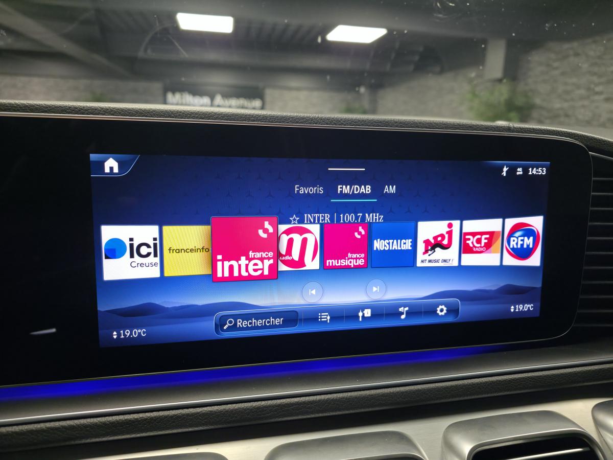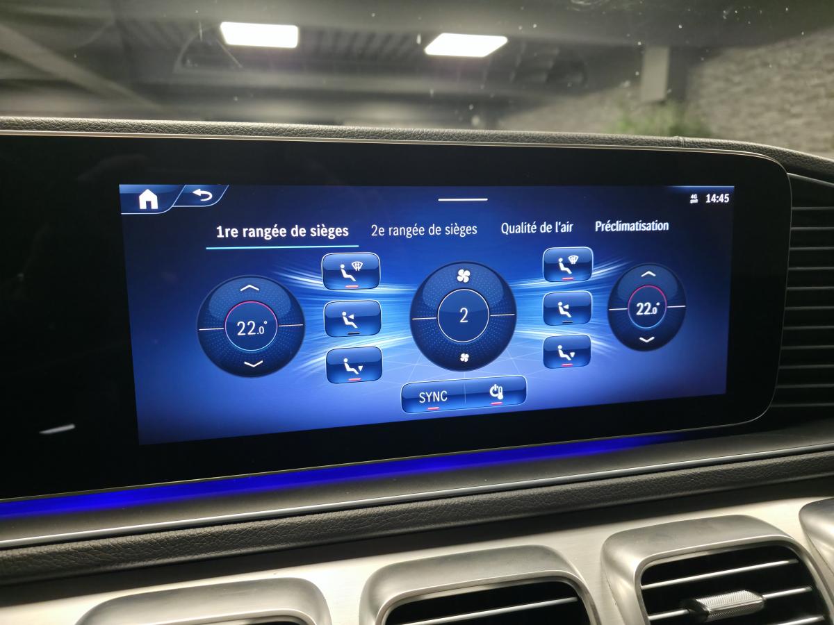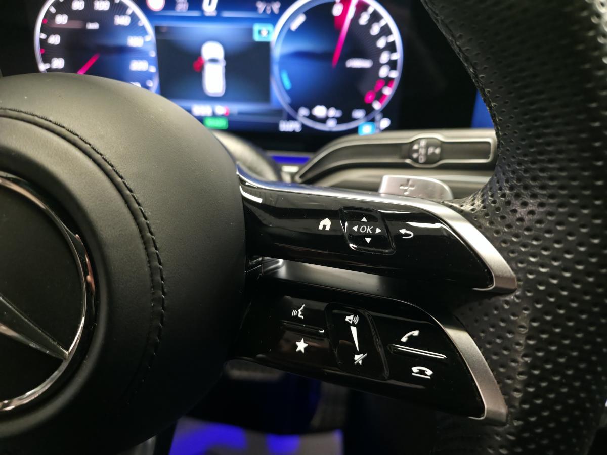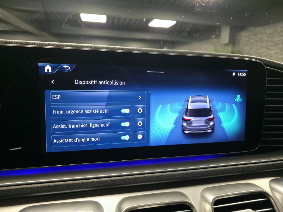 --> 2 prises USB à l'arrière (200 €) - Affichage tête haute (1 350 €) - Régulateur de vitesse adaptatif - Airbags latéraux à l'arrière (450 €) - Barres de toit (350 €) - Climatisation automatique à 4 zones "Thermotronic" (850 €) - Jantes alliage AMG 53,3 cm (21") multibranches 1 (1 100 €) - Jeu d'antivols de roue pour jantes alliage (75 €) - Marchepieds éclairés en finition aluminium avec picots en caoutchouc (750 €) - Pack d'assistance à la conduite (2 400 €) - Pack Premium (Affichage tête haute Climatisation automatique à 4 zones "Thermotronic" Pack Air Balance Pack Energizing Porte-gobelet chauffant et réfrigérant Sièges avant climatisés (chauffants et ventilés) Toit ouvrant panoramique (5 100 €) - Pack Premium Plus (7 950 €) - Planche de bord et bordures des portes en similicuir ARTICO (1 100 €) - Toit ouvrant panoramique (2 000 €)