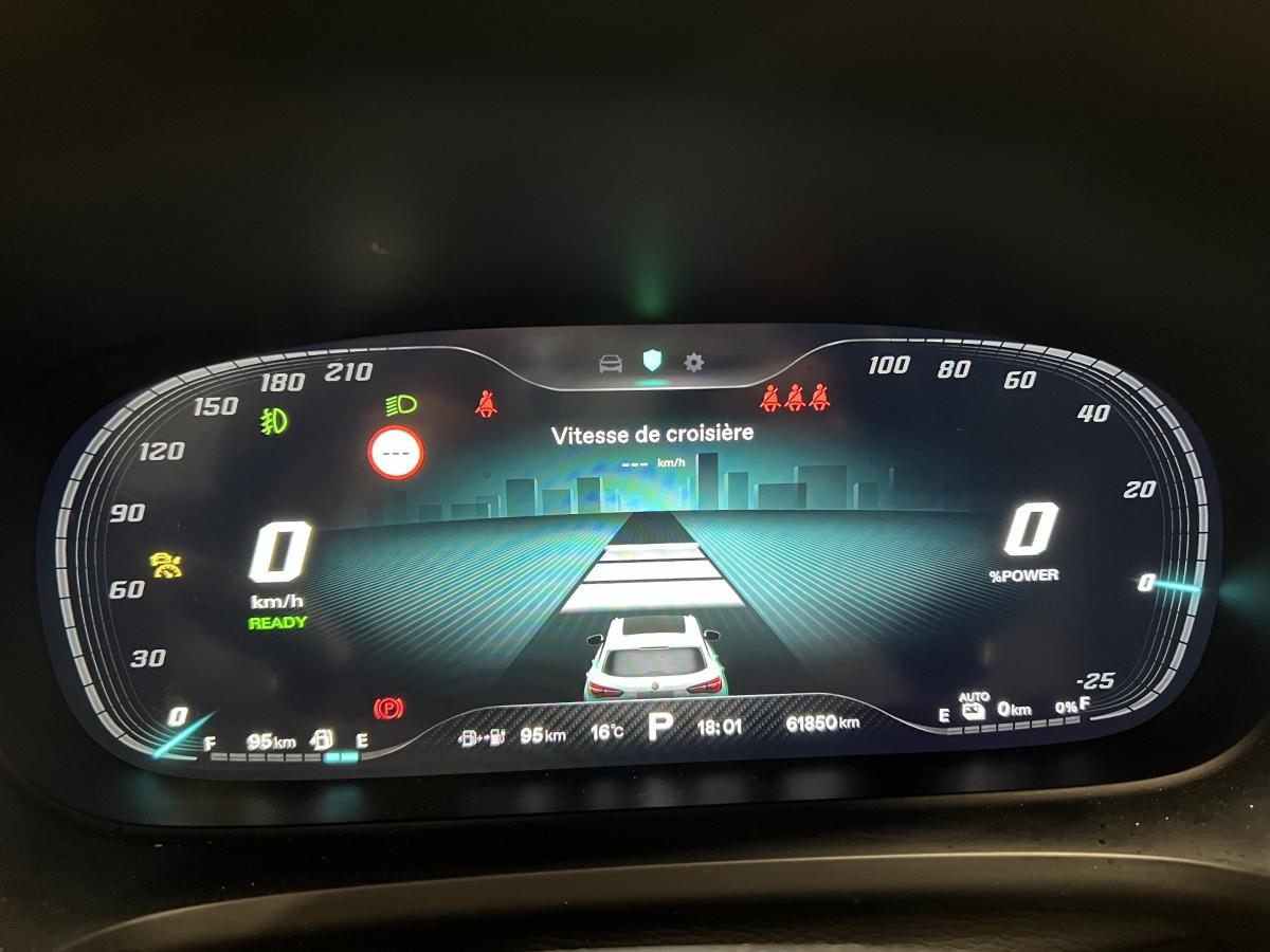 2 appuie-tête avant réglable en hauteur3 appuie-tête arrière réglables en hauteur4 freins à disques dont 2 ventilés4 prises USB AR6 haut-parleursAccoudoir central arrièreAccoudoir central AVAffichage de la pression des pneus et alerte en cas de sous-gonflageAffichage multi-fonctionsAide au stationnement latéralAir conditionné bi-zoneAirbags avant passager et conducteurAirbags latéraux AVAjustement manuel de la hauteur des pharesAlarmeAllumage automatique des pharesAntipatinageApple CarPlayAssistance au freinage d'urgenceAutoradio AM/FMAvertisseur de franchissement de ligne avec intervention dans la directionBanquette arrière rabattable 1/3 - 2/3 avec dossier rabattable, assise fixeBoucliers chromésBouton de démarrageCache-bagages flexibleCaisson de basseCaméra 360°Caméra de reculCapacité conduite autonomeCarte à télécommande avec condamnation centralisée des ouvrantsCeinture de sécurité Arrière : 3 pointsCeinture de sécurité centrale arrière à 3 pointsCeintures AV réglables en hauteurClignotants avant et arrières à LEDCommande ventilation additionnelle siège passager, avec affichage digitalCommandes radio au volantCompte-toursConnexion Bluetooth pour téléphone portableConsole de pavillon partielleConsole de plancher noirContour des vitres chroméContreportes en cuir synthétiqueContrôle de freinage en courbe CBCDésactivation d'airbag passagerDirection assistée asservie à la vitesseEclairage d'ambianceEclairage du coffreEcran couleur tactileEcran de divertissement: 10,1 " tactileEssuie-glace à détecteur de pluieEssuie-glace AR à balayage constantFeux AR à LEDFeux de croisement à LEDFeux de détresse automatiquesFeux de jour à LEDFeux de route à LEDFeux stop à LEDFeux stop actifsFiltre à particulesFiltre à pollenFonction Start/StopFrein à main électriqueHayonIntégration smartphoneJantes alliage bi-ton 18''Kit anti-crevaisonLimiteur de vitesseModes de conduite gèrent la cartographie moteurMP3Ordinateur de bordOuverture électrique du coffrePare-soleil avec miroir de courtoisie conducteur et passagerPeinture opaquePhares ellipsoïdauxPlanche de bord en cuir synthétiquePlancher platPneus 235/50 R18Poignée de frein à mainPommeau de levier de vitesse noirPorte-gobelet AV et ARPréparation ISOFIXPrise USB avantPrises 12 V à l'avantProgramme de stabilité électronique (ESP)Projecteurs antibrouillard avantRadars de stationnement arrièreRadars de stationnement avantRails de toit chromésReconnaissance vocaleRégulateur de vitesseRétroviseur intérieur électrochromeRétroviseurs extérieurs électriques chauffants avec rappel des clignotants intégréRétroviseurs extérieurs peintsRétroviseurs rabattables électriquementRoues motrices avant électriquesSellerie cuirSiège conducteur électrique 3 positionsSiège conducteur électrique avec réglages longitudinal, en hauteur, en inclinaison du dossierSiège passager avant électrique 2 positionsSiège passager avant réglable en hauteurSiège passager réglable en longeur et inclinaisonSièges avant chauffantsSièges avant sportSmart card / Smart key automatique gérant : entrée sans clé et démarrage sans cléSpoiler chroméSpots de lecture avant et arrièreSystème anti-collision à basse vitesse et détection des piétonsSystème antiblocage des roues (ABS)Système de freinage à récupération d'énergieSystème de navigation: visualisation 3D et voix, avec écran tactile, affichage couleur, 12,3 pouces alimentation par internetSystème de surveillance de la vigilance du conducteur (DMS)Système multimédiaSystème préventif antiretournementTableau de bord avec écran virtuel TFT reconfigurableTempérature extérieureToit ouvrant électrique inclinable et coulissantVitres électriques ARVitres électriques avant commande sequentielleVolant aluminium et cuirVolant multifonctionVolant réglable en hauteur et en profondeur