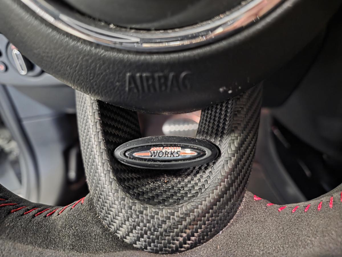 --> Affichage tête-haute rétractable (610 €) - jantes 19” Circuit Spoke John Cooper Works - Navigation GPS - Recharge smartphone par induction - Bandes décoratives de capot spécifiques sport noires ou rouges (250 €) - Caméra de recul (410 €) - Pack City Zen (1 400 €) - Régulateur de vitesse actif (200 €) - Sellerie Cuir/Dinamica Carbon Black (1 910 €) - Sièges avant chauffants (400 €) - Système de haut-parleurs HiFi Harman/kardon (800 €) - Système pour telephone portable Bluetooth avec interface USB (220 €) - Toit ouvrant panoramique en verre (990 €) - Porte-gobelet chauffant - 2 894 € ( Celle là n'existe pas ... mais imaginer votre café chaud à chaque gorgée, ça n’a pas de prix ! )