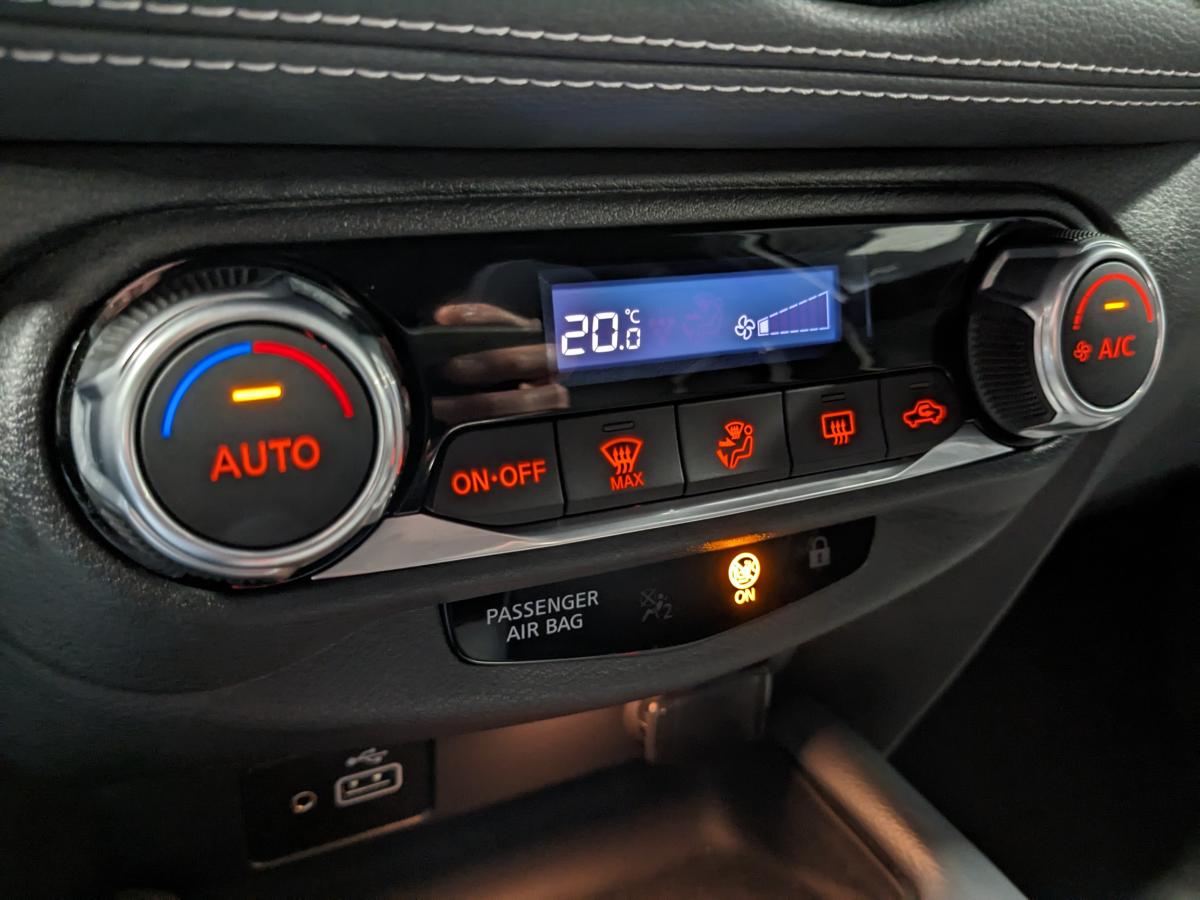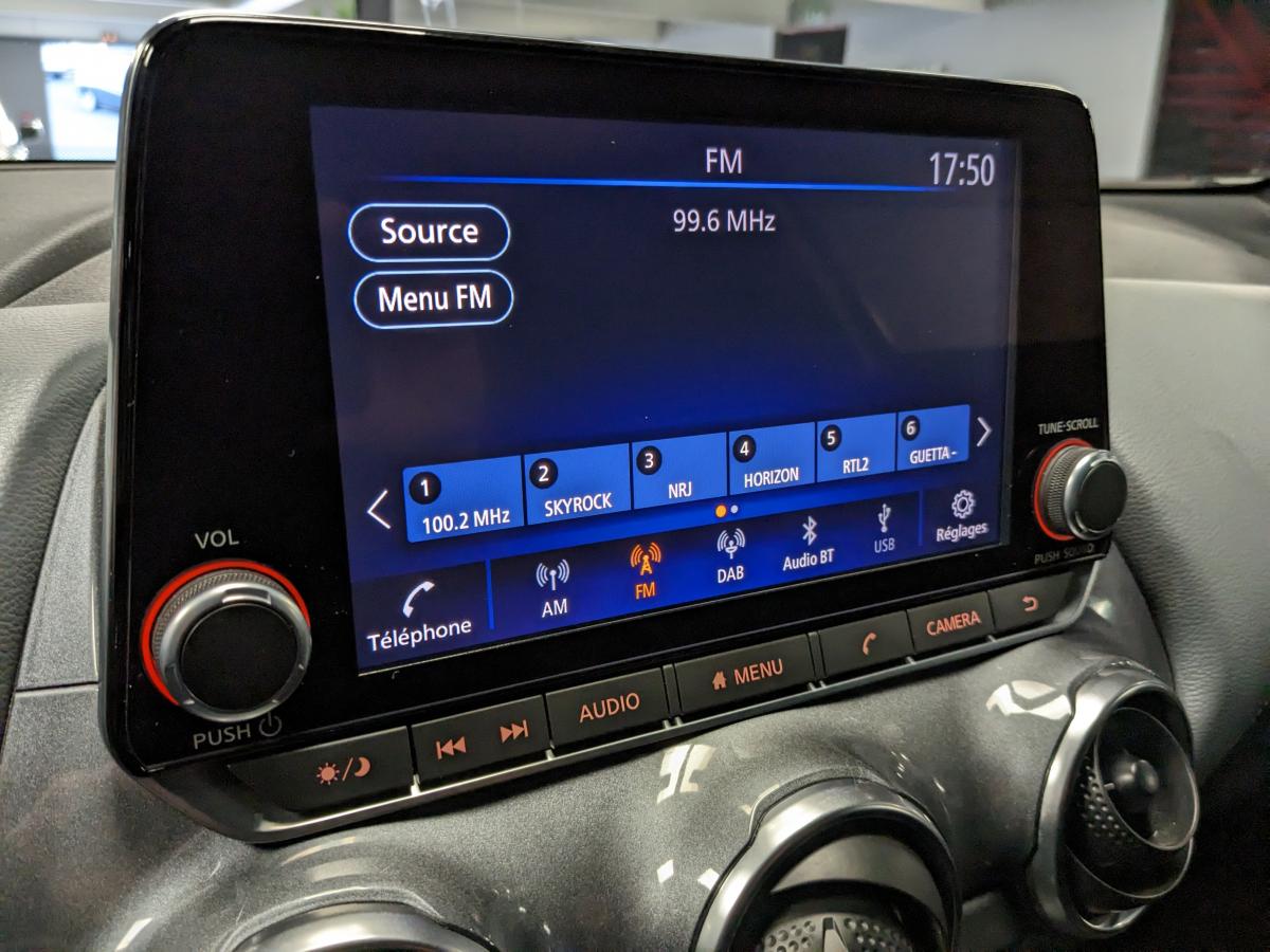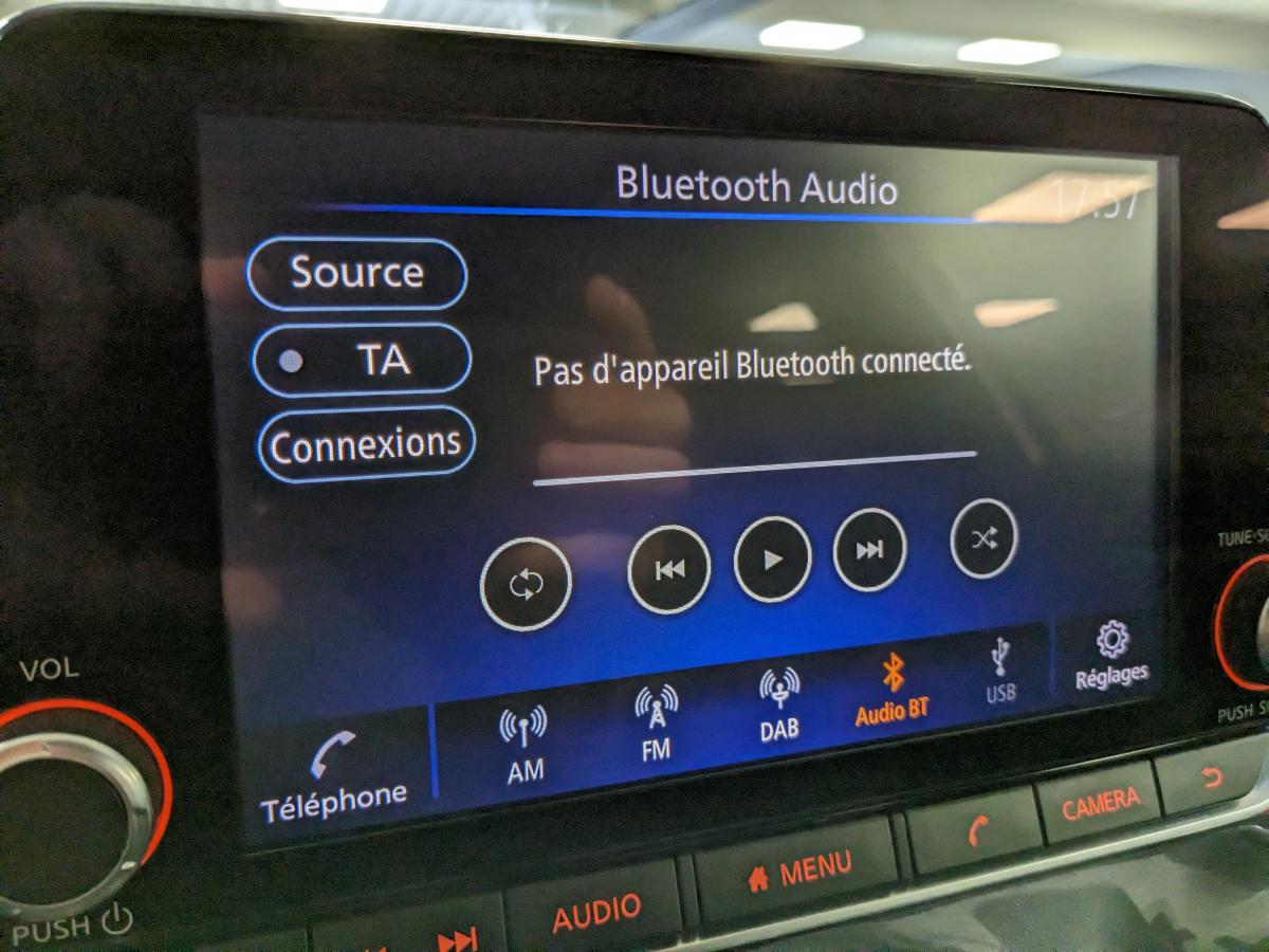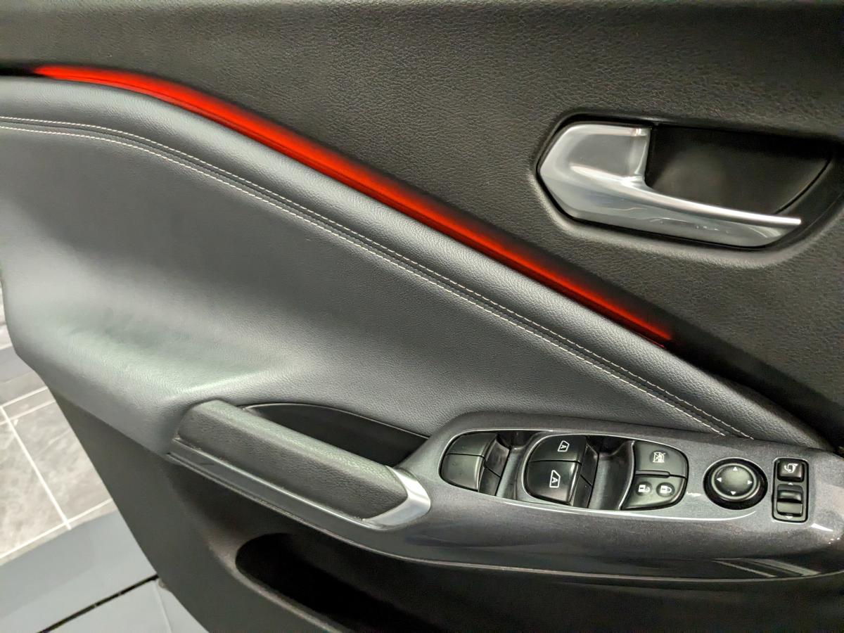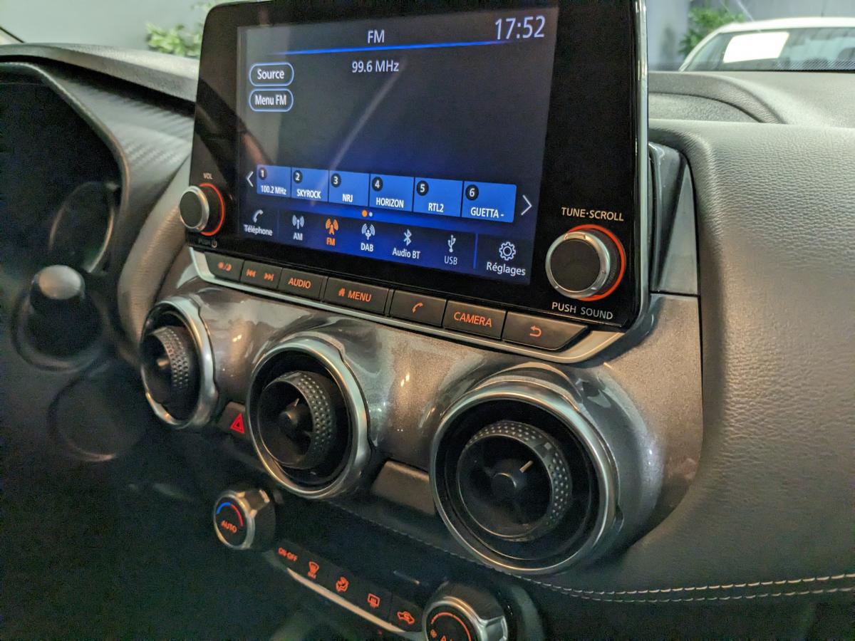 2 porte-gobelets3 appuis-tête arrière réglables6 haut-parleursABS (anti-blocage des roues), EBD (répartiteur électronique de freinage)Accoudoir central avantAide au démarrage en côteAide au stationnement arrière avec caméra de reculAirbags frontaux, latéraux avant et rideauxAllumage automatique des phares intelligentAntenne aileron de requin noireAvertisseur sonore ceintures de sécuritéBacs de rangement dans les contre-portes avant avec porte-bouteillesBanquette arrière rabattable 60/40Cache-bagages amovibleCeintures de sécurité avant ajustable en hauteurClignotants à trois clignotementsClimatisation automatiqueCombiné d'instrumentation avec écran couleur LCD-TFT 7"Commandes au volant (audio, Bluetooth, régulateur et limiteur de vitesse, contrôle de l'ordinateur de bord)Contrôle de pression des pneus ( TPMS )Contre-portes et tableau de bord en TEP grisCoques de rétroviseurs extérieurs noiresCorrecteur électronique de trajectoire ESPDéclenchement automatique des feux de détresseDirection assistée asservie à la vitesseEclairage d'accompagnement "Follow me Home"Eclairage d'ambiance (contre-portes et levier de vitesses)Eclairage de coffreEssuie glaces automatiques avec capteur de pluieFeux arrière LEDFeux avant à LEDFeux de route adaptatifsFeux diurnes à LEDFonction appel d'urgenceFrein à main électrique avec aide au stationnement/démarrage et fonction AutoholdFreinage actif d'urgence avec détection des piétons et cyclistesIndicateur de changement de rapportJantes alliage 17"Kit de réparation de pneumatiqueLève-vitres électriques avant et arrière (à impulsion à l'avant)Liseuses à l'avant et à l'arrièreNBAS (Amplificateur de freinage d'urgence)NissanConnect ServicesPalettes au volantPare-soleil côté conducteur et passager avec miroir de courtoisie éclairéPare-soleil conducteur avec pochette porte-cartesPoche aumônière au dos du siège conducteur/passagerPoignées de maintien pour passager avant et arrièrePoignées de portes extérieures couleur carrosseriePoignées intérieures d'ouverture des portes chroméesPoints d'ancrage de sièges enfant ISOFIX à l'arrièrePommeau de levier de vitesse gaîné cuirPort USB + BluetoothPort USB arrière (uniquement pour charge 2,4A)Prévention de franchissement de ligne intelligentPrise 12VPrise AUXProjecteurs antibrouillard à LEDRéglage des sièges avantRégulateur et limiteur de vitesseRétroviseur intérieur automatique jour/nuitRétroviseurs extérieurs à réglages électriques, dégivrants et rabattables automatiquementRétroviseurs extérieurs réglables électriquement avec indicateurs de changement de directionReconnaissance des panneaux de signalisationRepose-genoux en TEPSélecteur de mode de conduite (ECO / NORMAL / SPORT)Sellerie Tissu Noir avec surpiqûres grisesSiège conducteur réglable en hauteurSièges avant "monoform style"Spoiler arrièreSystème "Chassis Control"Système audio radio avec écran tactile 8" avec interface personnalisable, Apple CarPlay et Android Auto,commandes vocalesSystème d'ouverture et de démarrage sans clé "Intelligent key" avec bouton Start/StopSystème Stop & StartVitres arrière teintéesVolant gainé cuirVolant réglable en hauteur et en profondeurWi-Fi (service payant) et reconnaissance vocale