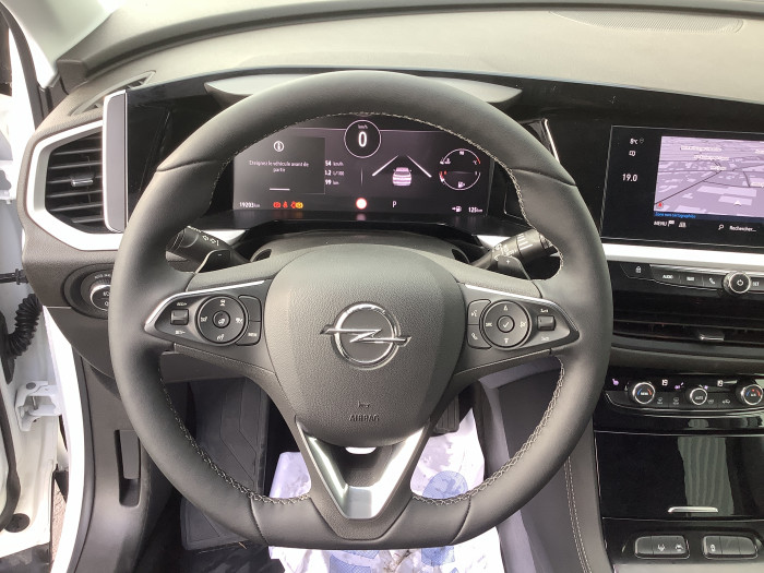 2 prises USB3 appuis-tete AR6 HPAccoudoir avec rangement et 2 porte-gobeletsAide au demarrage en coteAirbags frontaux et lateraux conducteur et passager AVAlerte de sous-gonflage des pneumatiquesAllumage automatique des feuxAndroid AutoAntenne aileron de requinApple CarPlayAppuie-tetes AV reglablesBanquette AR 40/60 avec trois appuis tetesBas de pare-choc AV/AR arches de roue : Noir brillantBluetoothCamera de recul 180°Capteur de pluieCeintures de securite a prehension pyrotechniqueClignotants AVClignotants AV et feux AR a LEDClimatisation automatique bi-zoneCommutation automatique des feux de routeCoques de retroviseurs exterieurs NoirCoquilles de retroviseurs peintes en noirDetecteur d'angles mortsDetecteur de pluieEclairage du coffreEcran d'instrumentation couleur 12"Ecran tactile 10'' couleur avec BluetoothFeux AR a LEDFeux de jour a LEDFeux de jour, clignotants AV et feux AR a LEDFrein de parking electriqueFreins a disques AV et ARKit anti-crevaisonLigne de vitrage noireLogos AV/AR chromesModule Opel ConnectOpel PURE PANELOrdinateur de bordPack Camera Opel Eye : Regulateur et limiteur de vitesse programmable, Reconnaissance des panneaux de signalisation amelioree, Systeme anti-collision a basse vitesse et detection des pietons, Alerte anti-somnolence, Aide actif au maintien dans la voiePack exterieur Black "GS" : Protections bas de porte Noir brillant, Logos noirs brillants, Bas de pare-choc AV/AR arches de roue : Noir brillant, Rails de toit noir brillant, Toit Noir Karbon, Sabots de protection AV/AR Noir brillant, Opel Vizor noirPalettes de changement de vitesses au volantPare-soleil avec miroir de courtoisie eclairePark AssistPhares AV Eco LEDPrise 12V a l'AVPrise 12V a l'AV sur la console centraleProtections bas de porte Noir brillantRadio FM/AM/DAB+Retroviseur interieur electrochromeRetroviseurs exterieurs rabattables electriquementSabots de protection AV/AR Noir brillantSiege conducteur avec coussin d'assise reglable en longueurSiege conducteur avec soutien lombaire reglableSpots de lecture AV et ARSysteme anti-blocage des roues (ABS)Systeme Isofix sieges lateraux ARSysteme Start/StopToit Noir KarbonVerrouillage centraliseVitres AV et AR electriquesVolant avec palette de changement de rapportsVolant cuir multifonctions 3 branches a meplatVolant TEP Vegan