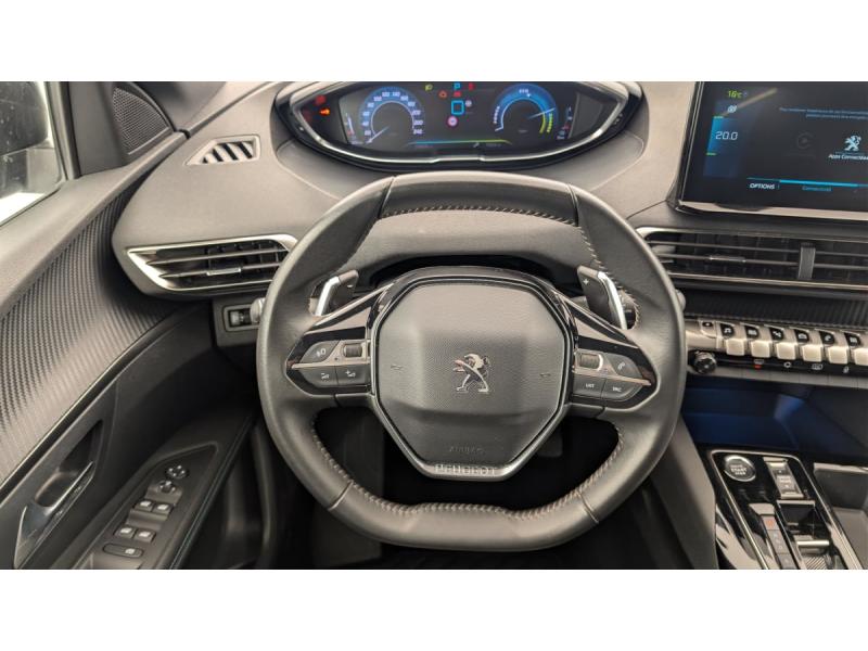 6 airbags (Frontaux adaptatifs, latéraux AV, rideaux AV/AR)Accès et démarrage mains libresAccoudoir central AV à ouverture papillon, avec compartiment de rangement éclairé et réfrigérableAir conditionné automatique bi-zone avec aérateurs aux places ARAppuis-tête à sécurité optimisée réglables en hauteur (conducteur, passager et AR x3)Avertisseur de temps de conduiteAvertisseur sonore audible depuis l'extérieur pour la sécurité piétonsBanquette AR rabattable 1/3 - 2/3 avec accoudoir centralCâble de recharge T2 mode 2 (10 A / 2,3 kW)Calandre á damiers chromésCoques de rétroviseurs extérieurs Noir Perla NeraDétection de sous-gonflage indirecteDirection assistée électrique, colonne de direction réglable en hauteur et profondeur (mécanique)Enjoliveur d'arc de pavillon en Inox BrillantEnjoliveurs d'ailes AV chromésFeux AR à LED avec effet 3D, clignotants à défilementFixations ISOFIX (passager AV et aux places latérales AR)Fonction "Mirror Screen" (Apple CarPlay / Android Auto )Frein de stationnement électrique avec aide au démarrage en pente et serrage automatiqueGarnissage TEP avec Tissu Colyn MistralJantes alliage 18" diamantées DETROIT bi-ton Gris Storm brillant avec pneumatiques 225/55 R18 102 VKit de dépannage de pneumatiqueLève-vitres AV/AR électriques et séquentiels avec antipincementNavigation 3D connectée avec écran tactile capacitif 10" HDPack City : Aide graphique et sonore au stationnement AR Visiopark 1 : caméra de recul avec restitution sur l'écran tactile d'une vue AR et d'une vue de dessus de l'environnement AR du véhiculePack Safety Plus : Alerte Risque de Collision (Distance Alert) Alerte attention conducteur Commutation automatique des feux de route / feux de croisement Alerte active de franchissement involontaire de ligne et bas côté Freinage d'urgence automatique avec caméra & radarPack Visibilité : Eclairage d'accompagnement automatique Allumage automatique des feux de croisement Essuie-vitre AV à déclenchement automatiquePares-soleil avec miroirs de courtoisie éclairésPassages de roues rapportés Noir MatPEUGEOT Connect SOSPeugeot i-Cockpit avec combiné tête haute numérique, volant compact multi-fonctionsPlafonniers AV/AR à LED avec 2 spots de lecturePlancher de coffre fixe avec articulation pour accès au coffre de rangement du câble de rechargePoches/filets aumonières au dos des sièges AVPrise 12 V (x3 : zone connectique, AR de console et coffre)Projecteurs "Peugeot LED Technology" avec feux diurnes à LED sous projecteursRétroviseur intérieur photosensibleRétroviseurs extérieurs dégivrants avec réglage et rabattement électriquesReconnaissance étendue des panneaux de signalisationSécurité enfants électrique des vitres ARSélecteur de modes de conduite (Electric, Hybrid, Sport)Sièges AV réglables en hauteurVitres latérales AR et lunette AR chauffante surteintées