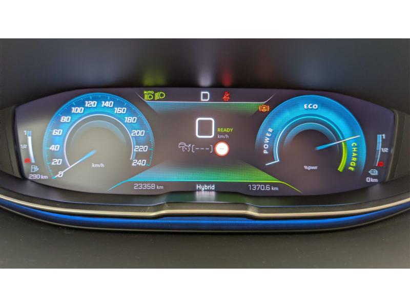 6 airbags (Frontaux adaptatifs, latéraux AV, rideaux AV/AR)Accès et démarrage mains libresAccoudoir central AV à ouverture papillon, avec compartiment de rangement éclairé et réfrigérableAir conditionné automatique bi-zone avec aérateurs aux places ARAppuis-tête à sécurité optimisée réglables en hauteur (conducteur, passager et AR x3)Avertisseur de temps de conduiteAvertisseur sonore audible depuis l'extérieur pour la sécurité piétonsBanquette AR rabattable 1/3 - 2/3 avec accoudoir centralCâble de recharge T2 mode 2 (10 A / 2,3 kW)Calandre á damiers chromésCoques de rétroviseurs extérieurs Noir Perla NeraDétection de sous-gonflage indirecteDirection assistée électrique, colonne de direction réglable en hauteur et profondeur (mécanique)Enjoliveur d'arc de pavillon en Inox BrillantEnjoliveurs d'ailes AV chromésFeux AR à LED avec effet 3D, clignotants à défilementFixations ISOFIX (passager AV et aux places latérales AR)Fonction "Mirror Screen" (Apple CarPlay / Android Auto )Frein de stationnement électrique avec aide au démarrage en pente et serrage automatiqueGarnissage TEP avec Tissu Colyn MistralJantes alliage 18" diamantées DETROIT bi-ton Gris Storm brillant avec pneumatiques 225/55 R18 102 VKit de dépannage de pneumatiqueLève-vitres AV/AR électriques et séquentiels avec antipincementNavigation 3D connectée avec écran tactile capacitif 10" HDPack City : Aide graphique et sonore au stationnement AR Visiopark 1 : caméra de recul avec restitution sur l'écran tactile d'une vue AR et d'une vue de dessus de l'environnement AR du véhiculePack Safety Plus : Alerte Risque de Collision (Distance Alert) Alerte attention conducteur Commutation automatique des feux de route / feux de croisement Alerte active de franchissement involontaire de ligne et bas côté Freinage d'urgence automatique avec caméra & radarPack Visibilité : Eclairage d'accompagnement automatique Allumage automatique des feux de croisement Essuie-vitre AV à déclenchement automatiquePares-soleil avec miroirs de courtoisie éclairésPassages de roues rapportés Noir MatPEUGEOT Connect SOSPeugeot i-Cockpit avec combiné tête haute numérique, volant compact multi-fonctionsPlafonniers AV/AR à LED avec 2 spots de lecturePlancher de coffre fixe avec articulation pour accès au coffre de rangement du câble de rechargePoches/filets aumonières au dos des sièges AVPrise 12 V (x3 : zone connectique, AR de console et coffre)Projecteurs "Peugeot LED Technology" avec feux diurnes à LED sous projecteursRétroviseur intérieur photosensibleRétroviseurs extérieurs dégivrants avec réglage et rabattement électriquesReconnaissance étendue des panneaux de signalisationSécurité enfants électrique des vitres ARSélecteur de modes de conduite (Electric, Hybrid, Sport)Sièges AV réglables en hauteurVitres latérales AR et lunette AR chauffante surteintées