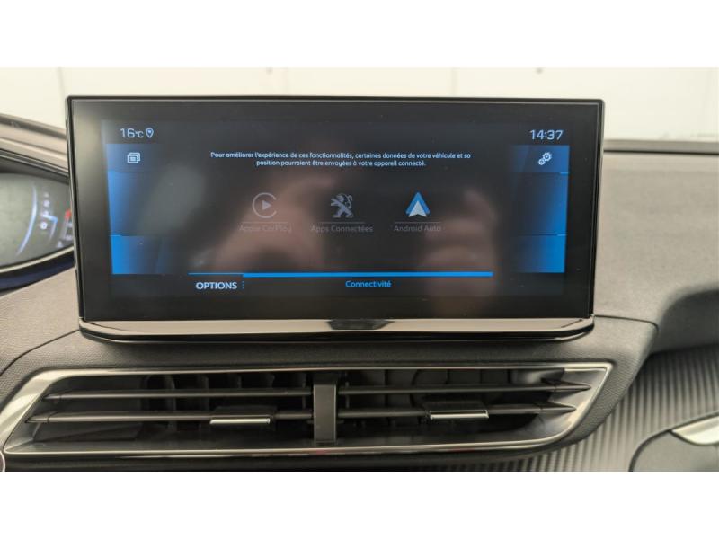 "Toggle Switches" chromés (touches "piano" d'activation des fonctions de l'écran tactile)6 Airbags (frontaux, latéraux AV et rideaux)Accoudoir central AV à ouverture papillon, avec compartiment de rangement éclairé et réfrigérableAide graphique et sonore au stationnement ARAir conditionné automatique bi-zone avec aérateurs aux places ARAirbags frontaux conducteur et passager adaptatifs (passager neutralisable par clé), airbags latéraux conducteur et passager AV.airbags rideaux de tête aux places AV/ARAppuis-tête à sécurité optimisée réglables en hauteur sur les sièges conducteur et passager AV ainsi que sur les places latérales ARAvertisseur de temps de conduiteBandeau de pare-chocs AR chroméBanquette AR rabattable 1/3 - 2/3 (avec modularité "Magic Flat" et commandes dans le coffre) avec accoudoir et trappe à skisBoîte à gants floquée et éclairéeCalandre á damiers chromésCeintures de sécurité 3 points à enrouleur (x3) au 2ème rang, avec prétensionneurs et limiteurs d'effort aux places latéralesCeintures de sécurité AV 3 points à enrouleur, réglables en hauteur avec prétensionneurs et limiteurs d'effortCommande de verrouillage à distance (2 plips)Contrôle dynamique de stabilité CDS avec antipatinage électronique ASRCoques de rétroviseurs couleur carrosserieDécors de planche de bord et panneaux de portes aspect carboneDécors intérieurs (baguettes de planche de bord et panneaux de portes, enjoliveur de console) chromésDémarrage mains libresDétection de sous-gonflage indirecteDirection assistée électrique, colonne de direction réglable en hauteur et profondeur (mécanique)Eclairage intérieur à LEDEco ModeEnjoliveur d'arc de pavillon en inoxEnjoliveur en inox sur les protecteurs de bas de portesEssuie-vitre AR avec enclenchement automatique en marche AREssuie-vitre AV avec système de lavage "Magic Wash"Fixations ISOFIX (passager AV et aux places latérales AR)Frein de stationnement électrique avec aide au démarrage en penteGarnissage TEP avec Tissu Colyn MistralIndicateur de rapport conseilléInserts d'ailes AV chromésJantes alliage 18" "Detroit" bi-ton diamantées Gris StormLève-vitres AV/AR électriques et séquentiels avec antipincementLunette AR chauffante avec antennes sérigraphiéesMiroirs de courtoisie éclairésMirror Screen (compatible Mirrorlink, Apple CarPlay, Android Auto)Pack City 1 : Aide graphique et sonore au stationnement AV Visiopark 1 : caméra de recul avec restitution sur l'écran tactile d'une vue AR et d'une vue de dessus de l'environnement AR du véhiculePack Safety Plus : Active Safety Brake avec Distance Alert Alerte active de franchissement involontaire de ligne et bas côté Alerte attention conducteur Commutation automatique des feux de route / feux de croisement Système de surveillance d'angle mortPack Visibilité : Allumage automatique des feux de croisement Eclairage d'accompagnement automatique Essuie-vitre AV à déclenchement automatique Rétroviseur intérieur photosensiblePassages de roues rapportés noirsPeugeot Connect: Ecran tactile capacitif 10'' HD,navigation 3D connectée avec reconnaissance vocale aux services de Navigation connectée TomTom, SOS & Assistance, TeleservicesPeugeot i-Cockpit avec combiné tête haute numérique reconfigurable, écran tactile capacitif 10" et volant compact multi-fonctionsPlafonniers AV et AR avec spot de lecturePlancher de coffre 2 positionsPoches/filets aumonières au dos des sièges AVPrise 12 V (x3 : zone connectique, AR de console et coffre)Prise USB (dans la zone connectique)Projecteurs "Peugeot LED Technology" avec feux diurnes à LED sous projecteursRégulateur / Limiteur de vitesseRétroviseurs extérieurs dégivrants à réglage électriqueRétroviseurs extérieurs rabattables électriquement avec éclairage d'accueil à LEDRadio avec fonction DAB,bi-tuner compatible MP3 et connectivité Bluetooth (audio streaming, kit mains libres), avec commandes au volant, 6 HP, écran tactile capacitif 10" HDReconnaissance étendue des panneaux (Stop, Sens interdit) et préconisation des panneaux de vitesseSécurité enfants électrique des vitres ARSabots de pare-chocs AV gris métalliséSellerie TEP & Tissu 'Colyn'Siège conducteur à réglage lombaire manuelSièges AV mécaniques à réglage manuel en hauteurSystème d'antiblocage des roues ABS avec répartiteur électronique de freinage REF et assistance au freinage d’urgence AFUVerrouillage automatique de tous les ouvrants en roulantVitres latérales AR et lunette AR surteintéesVolant Cuir fleur