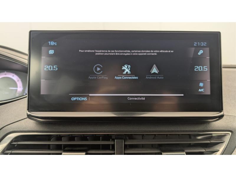 "Toggle Switches" chromés (touches "piano" d'activation des fonctions de l'écran tactile)2 sièges escamotables et extractibles pour les passagers - 3 rang3 sièges indépendants,coulissants,inclinables et escamotables dans le plancher - 2 rangAccès et démarrage mains libresAccoudoir central AV à ouverture papillon, avec compartiment de rangement éclairé et réfrigérableAide graphique et sonore au stationnement ARAir conditionné automatique bi-zone avec aérateurs aux places ARAirbags frontaux conducteur et passager adaptatifs (passager neutralisable par clé), airbags latéraux conducteur et passager AV, airbags rideaux de tête aux places AV et AR, en rang 1,2,3Appuis-tête à sécurité optimisée réglables en hauteur sur les sièges conducteur et passager AV ainsi que sur les places latérales ARAvertisseur de temps de conduiteBarres de toit longitudinales profilée en AluminiumBoîte à gants floquée et éclairéeCalandre GT avec design évolutif chroméCanules d'echappement de style chroméesCommande de verrouillage à distance (2 télécommandes)Commandes de lève-vitres avec inserts chromésContrôle dynamique de stabilité ESP avec antipatinage électronique ASRCoques de rétroviseurs extérieurs Noir Perla NeraDécors de planche de bord et panneaux de portes Alcantara Gris Greval :Décors intérieurs (baguettes de planche de bord et panneaux de portes, enjoliveur de console) chromésDétection de sous-gonflage indirecteDirection assistée électrique, colonne de direction réglable en hauteur et profondeur (mécanique)Drive Mode : Choix de 2 modes de conduite (Eco ou Sport)Driver Sport Pack Sonorité du moteur amplifiée et plus sportive, pédale d'accélarateur plus réactive, direction assistée plus sportive, passage de vitesses sport (pour les motorisaions à boîte automatique). Possibilité d'affichaEclairage intérieur à LED: plafonniers et rangementsEnjoliveur d'arc de pavillon en inoxEnjoliveur de seuil d'entrée de coffre chroméEnjoliveur en inox sur les protecteurs de bas de portesEssuie-vitre AR avec enclenchement automatique en marche AREssuie-vitre AV avec système de lavage "Magic Wash"Fixations ISOFIX aux 3 places AR en rang 2Frein de stationnement électrique avec aide au démarrage en penteHabitacle et ciel de pavillon Noir MistralIndicateur de rapport conseilléInserts d'ailes AV chromésJantes alliage 18" "Detroit" bi-ton diamantées Noir OnyxJoncs de vitres latérales en inoxKit de dépannage de pneumatique : compresseur 12 volts, flacon de produit de colmatage, anneau de remorquage, deux cales de roue, manivelle de frein de stationnement électriqueLève-vitres AV et AR électriques séquentiels avec antipincementLunette AR chauffante avec antennes sérigraphiéesMiroirs de courtoisie éclairésMirror Screen (compatible Mirrorlink, Apple CarPlay, Android Auto)Navigation 3D connectée avec écran tactile capacitif 10" HD Avec reconnaissance vocale, cartographie EuropePédale d'accélarateur plus réactivePédalier et repose-pied conducteur en aluminiumPack City 1 : Aide graphique et sonore au stationnement AV Visiopark 1 : caméra de recul avec restitution sur l'écran tactile d'une vue AR et d'une vue de dessus de l'environnement AR du véhiculePack Drive Assist Plus : Régulateur de vitesse adaptatif avec fonction Stop&Go Aide au maintien de la position dans la voie (Lane Positioning Assist) Active Safety Brake avec Distance AlertPack Eclairage d'ambiance : LED d'ambiance dans plafonnier AV, éclairage à LED des caves à pied, et des panneaux de portes AVPack Safety Plus : Alerte attention conducteur Commutation automatique des feux de route Alerte active de franchissement involontaire de ligne et bas côté Active Safety Brake avec Distance Alert Système de surveillance d'angle mortPack Visibilité : Eclairage d'accompagnement automatique Allumage automatique des feux de croisement Rétroviseur intérieur photosensible Essuie-vitre AV à déclenchement automatiquePassages de roues rapportés noirsPEUGEOT Connect SOS & Assistance et TeleservicesPeugeot i-Cockpit avec combiné tête haute numérique haute qualité d'affichage, écran tactile capacitif 10" HD et volant compact multi-fonctionsPlafonniers avec spots de lecture avant (x2), arrière (x2) et en rang 3 (x2)Planche de bord surpiquéePoches/filets aumonières au dos des sièges AVPrise USB (dans la zone connectique)Prises 12 V (x 3 : zone connectique, AR de console et coffre)Prises USB de charge (x2) au 2 rangProjecteurs "Peugeot Full LED Technology" avec correction automatique de site, fonction Eclairage Virage Statique,"Foggy Mode" et feux diurnes à LED prolongés dans les projecteursRégulateur / Limiteur de vitesseRétroviseur intérieur photosensible sans cadreRétroviseurs extérieurs électriques, dégivrants et rabattables électriquement avec éclairage d'accueil à LEDRadio avec fonction DAB,bi-tuner compatible MP3 et connectivité Bluetooth (audio streaming, kit mains libres), avec commandes au volant, 6 HP, écran tactile capacitif 10" HDReconnaissance étendue des panneaux (Stop, Sens interdit) et préconisation des panneaux de vitesseRideaux pare-soleil en rang 2Sécurité enfants électrique des vitres ARSabot de pare-chocs AV gris métalliséSellerie mi-TEP & Tissu "Belomka"Seuils de portes AV en InoxSiège conducteur mécanique avec réglage lombaireSiège passager AV avec mise en tabletteSièges AV mécaniques à réglage manuel en hauteurSystème d'antiblocage des roues ABS avec répartiteur électronique de freinage REF et assistance au freinage d’urgence AFUTablettes aviation aux dos des sièges du rang 1Toggle Switches' chromés (touches 'piano' d'activation des fonctions de l'écran tactile)Toit "Black Diamond" (toit Noir Perla Nera)Trappes de rangement (x2) aux pieds des passagers du 2ème rangVerrouillage automatique de tous les ouvrants en roulantVitres latérales AR et lunette AR surteintéesVolant cuir fleur perforé avec bagues chromées et badge GT