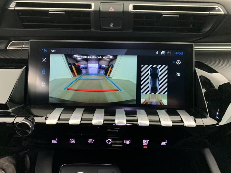 6 airbags (Frontaux adaptatifs, latéraux AV, rideaux AV/AR)ABSAccès et démarrage mains libresAccoudoir central AV en TEP à ouverture papillonAide au stationnement AR, AV et latérale (graphique et sonore)Air conditionné automatique bi-zone avec aérateurs aux places ARAppuis-tête à sécurité optimisée réglables en hauteur (conducteur, passager et AR x3)Avertisseur de temps de conduiteBanquette AR rabattable 1/3 - 2/3 avec accoudoir central, trappe à skisBoîte de vitesse automatique (8 rapports)Câble de recharge T2 mode 2 (10 A / 2,3 kW)Calandre avec motif évolutif de la couleur de la carrosserieChargeur embarqué 3,7 kWCommande d’ouverture de la trappe à carburant depuis l’habitacleContours de vitres latérales noir brillantCoques et embases de rétroviseurs extérieurs Noir brillantDétection de sous-gonflage indirecteDirection assistée électrique, réglable en hauteur et profondeur (mécanique)ESPFeux arrière Full LED avec indicateurs de direction défilantsFixations ISOFIX aux places latérales ARFonction DAB (Radio Numérique Terrestre)Fonction Mirror Screen (Apple CarPlay / Android Auto ) sans filFrein de stationnement électrique avec aide au démarrage en pente et serrage automatiqueHabitacle et ciel de pavillon Noir MistralJantes alliage 17" Merion bi-ton diamanteesKit de dépannage de pneumatiquePack Safety Plus : Freinage d'urgence automatique avec caméra & radar Système de surveillance d'angle mort Reconnaissance étendue des panneaux de signalisation Alerte risque de collision et Alerte attention conducteur Alerte de franchissement involontaire de lignePack Visibilité : Eclairage d'accompagnement automatique Allumage automatique des feux de croisement Essuie-vitre AV à déclenchement automatiquePeugeot Connect SOSPeugeot i-Cockpit avec combiné numérique tête haute 12,3"Peugeot i-Connect Advanced - Navigation 3D connectée (cartographie Europe) avec écran tactile 10" HD - Reconnaissance vocale en langage naturelProgramme de Stabilité Electronique (ESC) Avec antipatinage des roues (ASR), antiblocage des roues (ABS), répartiteur électronique de freinage (REF), assistance au freinage d'urgence (AFU), contrôle dynamique de stabilité (CDS) et contrôle de stabilit&eacProjecteurs Peugeot Matrix LED Technology Eclairage adaptatif avec correction automatique de site, 3 modes (Routes, Autoroutes et Brouillard) et feux diurnes 3 griffes à LED intégrés aux projecteursRégulateur / limiteur de vitesse avec Préconisation Limitation de VitesseRétroviseur intérieur électrochromeRétroviseurs extérieurs électriques et dégivrants, rabattables électriquement avec éclairage d'accueil à LED, témoins de surveillance d'angles mortsSélecteur de boite de vitesses automatique e-ToggleSélecteur de modes de conduite 'Drive Mode' (Electric, Hybrid, Sport)Toggle Switches' chromés (touches 'piano' d'activation des fonctions de l'écran tactile)Verrouillage automatique de tous les ouvrants en roulantVisioPark 1 Caméra de recul Haute Définition 180° avec restitution sur l'écran tactile d’une vue AR et d'une vue de dessus de l'environnement AR du véhiculeVitres électriques AVVitres latérales AR et lunette AR surteintéesVolant cuir fleur avec commandes intégrées
