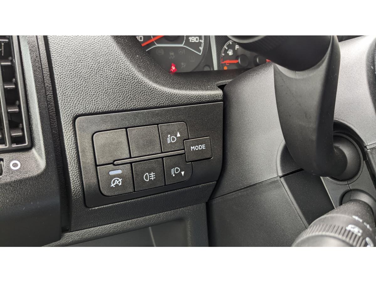 10 anneaux d'arrimage dans la cellule de chargementAide au démarrage en penteAide au Freinage d'Urgence (AFU)Airbag conducteurAnti-démarrage électronique activé par transpondeurAntipatinage roue (ASR)Bacs de rangement dans les portesBaguettes latérales de protectionBanquette passager 2 placesBoîte à gantsCloison de séparation tôléeCoffre central sur planche de bordCondamnation centralisée à distance avec plip haute fréquenceCondamnation séparée de la cabine et de la cellule de chargementContrôle dynamique de trajectoire (ESP) avec ABSEnjoliveurs 15"Essuie-vitre avant à 2 vitesses avec intermittenceFeu arrière anti-brouillardGarnissage Tissu DARKOLève-vitres électriques séquentiel montée et descente sans anti-pincement côté conducteurMarchepied intégré dans les pare-chocs avantOrdinateur de bordOuverture des portes arrière à 180°Peinture opaquePorte latérale droite coulissante tôléePortes arrière battantesPrédisposition radio DABRégulateur et limiteur de vitesseRéservoir à carburant - 90 lRétroviseurs extérieurs électriques et chauffantsRoue de secours sous plancher positionnable avec treuilSiège conducteur inclinable avec réglage longitudinalSiège conducteur réglable en hauteurVitres avant électriques séquentielles (à la descente côté passager)Vitres teintéesVolant réglable en profondeur