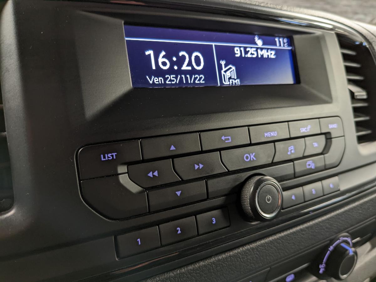 Aide au Freinage d'Urgence (AFU)Air conditionnéAirbag conducteurAirbags frontaux passagers double déconnectableAlerte de temps de conduiteBaguettes latérales de protection teintées masseBanquette passager 2 places avec rangement sous l'assiseBoucliers noirs teintés masseCloison de séparation tôléeCombiné LCD texte blancCommandes d'ouvertures extérieures teintées masseCondamnation centralisée avec plipESC avec aide au démarrage en côte HSAFeux diurnesGarnissage Tissu tri-ton curitiba noir-grisLève-vitres avant électriques séquentielsOrdinateur de bordPack acoustiquePack électriquePeinture opaque Blanc BanquisePorte latérale droite coulissante tôléePortes battantes arrière tôlées 50/50, ouverture à 180°Prédisposition attelagePrise 12 V dans l'espace de chargementPrise 12 V sur planche de bordPrise USB sur planche de bordProjecteurs avec DRL intégréRégulateur et limiteur de vitesseRevêtement de sol en TPO dans l'habitacleRoue de secours homogèneRoues tôle 16’’ avec cabochons noirSiège conducteur avec accoudoir, rehausse et réglage lombaireSystème antiblocage de roues (ABS)Système audio RD6 (Radio + 2HP + 2 tweeters) + 2 prises 12V + fonction bluetoothVolant réglable en hauteur et en profondeur