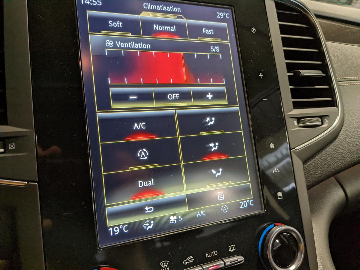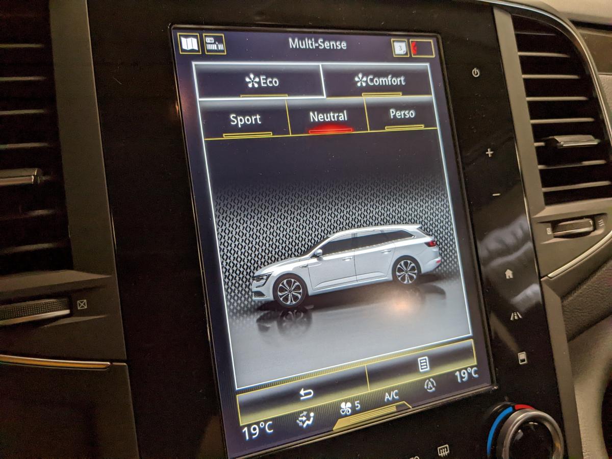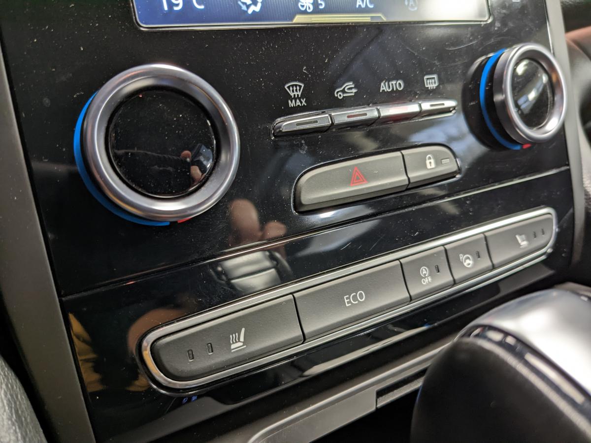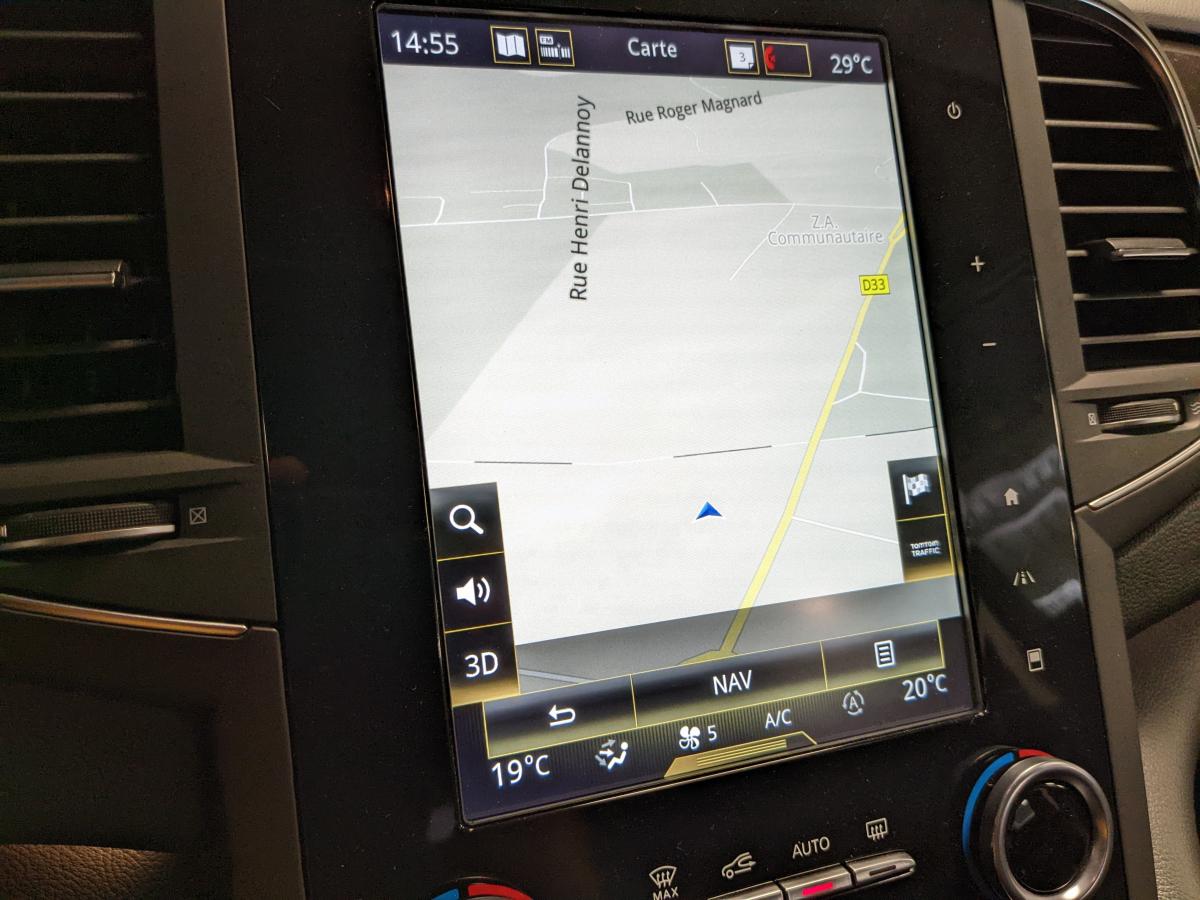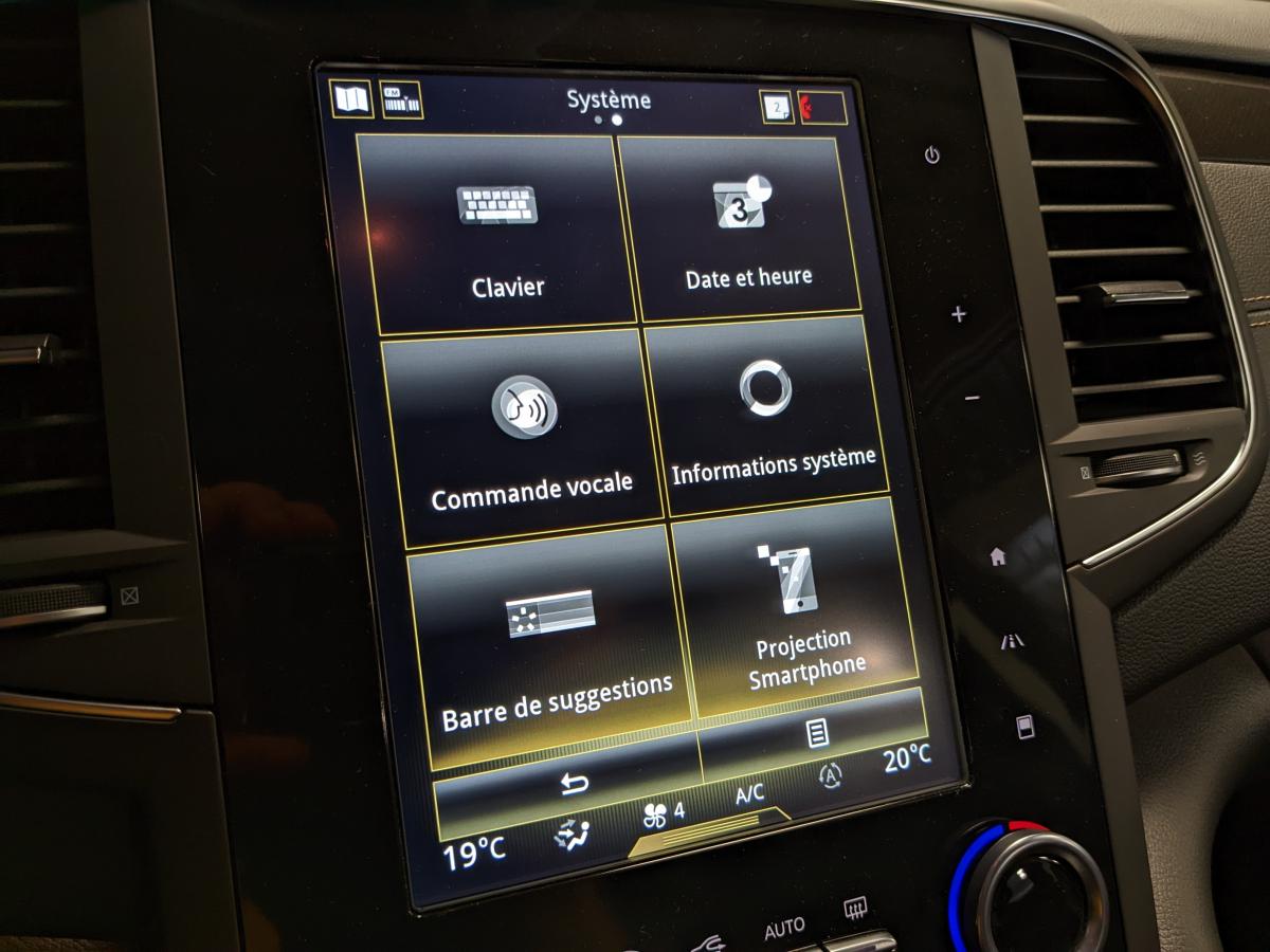 2 prises USB et 1 AUX arrièreAérateurs aux places arrièresABS avec aide au freinage d'urgenceAide au démarrage en côteAirbags frontaux conducteur et passager adaptatifs (airbag passager déconnectable)Airbags latéraux (thorax / bassin) avantAirbags rideaux de tête aux places avant et arrièreAmbiance lumineuseBanquette 60/40 fractionnable avec accoudoir et trappe à skisBas de planche de bord gainéCapteur de toxicitéCapteurs de pluie et de luminositéCarte Renault mains-libres avec allumage des feux à l'approcheClimatisation automatique bizoneCompatibilité Apple CarPlay et Android AutoCompteur digital TFT 7“Condamnation automatique des ouvrants en roulantContrôle dynamique de trajectoire (ESC)Eclairage d'accueil sur rétroviseurs extérieursEco driving (Monitoring, Scoring, Coaching et conseils)Feux arrière avec signature lumineuse à LED à technologie EDGE et effet 3D, clignotants et feux stop à LEDFeux de jour à LEDFeux LED Pure VisionFiltre combinéFixations Isofix et i-Size 2 sièges arrièreFrein de parking assistéJantes alliage 18" DuettoKit de réparation / regonflage de pneusLève-vitres électriques avant à impulsionLève-vitres arrière électriques impulsionnelsMiroirs de courtoisie éclairésOrdinateur de bordPack Aides à la conduitePack Renault R-Link 2 avec écran 8,7"Pack Visio SystemPlanche de bord noirePrédisposition pour alarme disponible en accessoirePrises 12 V à l'avant et à l'arrièreProjecteurs antibrouillard LED avec fonction corneringRétroviseur intérieur jour/nuit automatiqueRétroviseurs extérieurs électriques, dégivrants et rabattables électriquementRails de toit en aluminiumRangement bouteille réfrigéré en consoleRangement console sous accoudoir avec plateau amovibleRenault Multi-SenseRideaux pare-soleil aux portes arrièreSellerie tissu/similicuir NoirSeuils de portes avantSiège conducteur massant à réglages manuels avec réglages lombaires électriquesSiège passager avec réglage lombaire manuelSon Arkamys 8 haut-parleursSystème d'aide au parking avant et arrièreSystème de surveillance de la pression des pneumatiquesSystème Easy Break pour banquette arrièreSystème Stop & StartVitres latérales arrière et lunette arrière surteintéesVolant et pommeau de levier de vitesse en cuirVolant réglable en hauteur et en profondeur