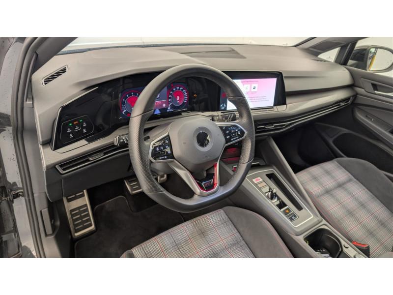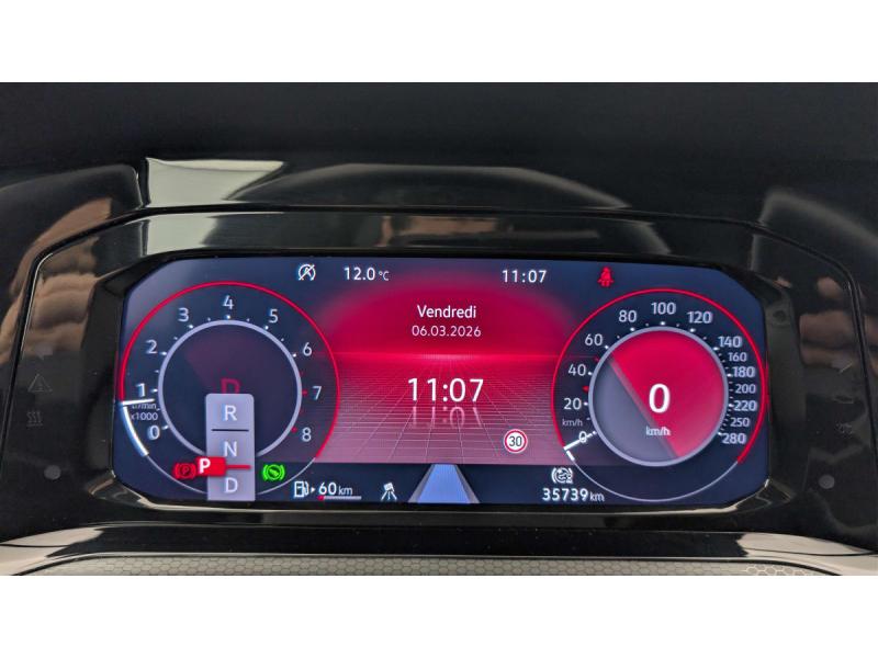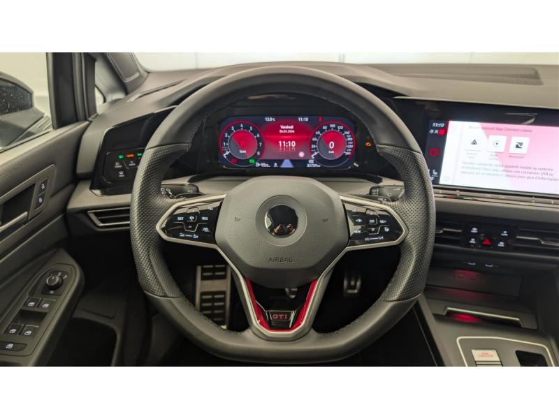 2 interfaces USB-C à l'AV2 prises de chargement USB-C derrière l'accoudoir pour les passagers ARAccoudoir central AV et ARAirbags de tête pour passagers AV/ARAirbags frontaux AV conducteur et passager (Airbag passager désactivable)Airbags latéraux AVAlerte de perte de pression des pneusApp-Connect sans fil: affichage et contrôle via l'écran tactile de la voiture, du contenu, des fonctions et des applications compatibles présents sur le Smartphone (compatibilité avec les systèmes Apple CarPlay et Android Auto). Fonction sans fil uniquement disAssistant de conduite "Travel Assist" avec "Emergency Assist"Baguette lumineuse entre les projecteursBanquette AR rabattable 2/3-1/3 avec trappe à skisCaméra de recul "Rear View"Ciel de pavillon Noir SoulClimatiseur "Air Care Climatronic" 3 zones et filtre anti-allergène et éléments de commandes à l'ARDigital Cockpit Pro : combiné d'instruments digital avec écran digital haute résolution de 10,25"Eclairage d'ambiance 30 couleursFatigue Detection : système de détection de fatigue du conducteur qui analyse le comportement du conducteur et recommande un temps de repos par l'apparition d'un message visuel et sonoreFrein de stationnement électromécanique avec fonction d'immobilisation en pente "Auto Hold" et assistant de démarrage en côteFront Asisst avec détecteur des piétonsInterface téléphone BluetoothKit de dépannage : compresseur 12 V et produit d'étanchéité de pneuLane Assist: Assistant de maintien dans la voieOeillets d'arrimage ISOFIX (dispositif pour fixation de 2 sièges-enfants sur la banquette AR)Pack Visibilité : Allumage automatique des feux avec fonctions "Coming Home - Leaving Home" Capteur de pluie avec essuie-glace automatiqueParkPilot, aide au stationnement AV/ARPeinture unie Gris UranoPrise 12 V dans le coffreProjecteurs antibrouillard avec feux de braquageProjecteurs LED Plus haute performance avec éclairage de jour à LEDRéception radio numérique DAB+Régulateur de vitesse adaptatif et prédictif ACC avec limiteur de vitesseRétroviseurs extérieurs à réglage et dégivrage électriquesRangement et prise 12 V à l'AVSélection du profil de conduiteSellerie en tissu "Scale paper"Sièges AV sports specifique GTI, appui-tetes intégrés, appuis lombaires AVSign Assist: Reconnaissance des panneaux de signalisationSystème Navigation & Infotainment "Discover Media"Système Start/Stop avec récupération d'énergie au freinageVitres AR et lunette AR surteintées à 65 %Vitres AV/AR électriquesVolant réglable en hauteur et en profondeurVolant sport multifonction en cuir spécifiqque "GTI" palettes au volant, commades tactiles et retour haptique