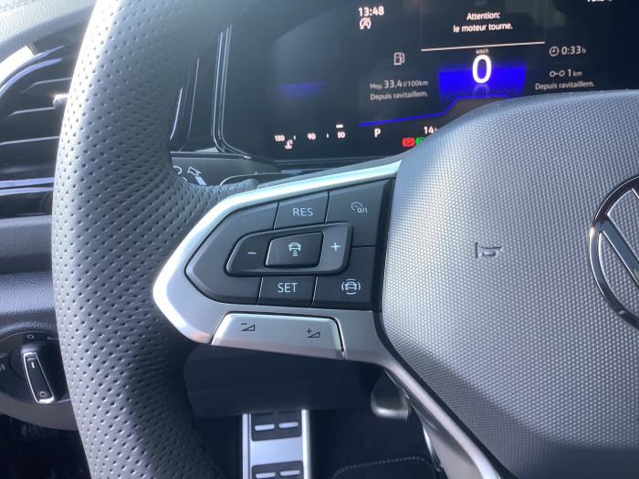 2 interfaces USB-C AV et 2 ports USB-C de recharge AR2 lampes de lecture a l'AVACC : Le Regulateur de vitesse adaptatif avec limiteur de vitesse (ACC)Accoudoir central a l'AV reglable en longueur, avec compartiment de rangementAide au demarrage en cote ""Hill-Hold""Airbags latéraux AVAlerte de perte de pression des pneusAntidémarrage électroniqueApp-Connect sans filApplication decorative de tableau de bord ""Piano Noir"" brillanteAppuis-tête AR (3) et ceintures de sécurité 3 points (3) sur la banquette ARAvertisseur de non bouclage des ceintures de securite AV et ARBoîte de rangement sous le siège passager AVCamera de recul Rear view avec visualisation de la zone situee a l'AR du vehiculeChargeur de telephone par inductionChassis Sport: Direction progressiveCiel de pavillon noirClimatisation automatique tactile Climatronic bi-zone avec filtre anti-allergene, reglableCombiné d'instrumentalisation entièrement digital 'Digital Cockpit'Compartiment de rangement pour manuel d'utilisation sous siege conducteurCorrecteur electronique de trajectoire ESP, systeme d'antiblocage de roues ABS, EDL, EDTC,Emergency AssistEssuie-glaces AV/AR avec commande d'intermittence et lave-glaceFatigue Detection : systeme de detection de fatigue du conducteur qui analyse le comportement duFeux AR de brouillard des 2 cotes, feux de recul des 2 cotesFeux AR rouge clair a LEDFrein de stationnement electromecanique avec fonction d'immobilisation en pente ""Auto Hold"" etFront Assist avec fonction de secours en ville et detecteur de pietonInsert argent sur le haut des vitresInsert argent sur le haut des vitres, allant des portieres AV jusqu'a l'AR du vehiculeInterface Bluetooth pour telephone mains libresKeyless Access: Système de verrouillage/déverrouillage sans clé et démarrage avec bouton start/stopLampes de lecture AV/ARLane Assist - Assistant au maintien dans la voie avec correction de trajectoireLight Assist : Regulation automatique des feux de routeLogo R-Line brode sur les sieges AVLogo R-Line sur la calandre et sur les ailesPack ""Aide a la conduite IQ.DRIVE""Pack Aide a la ConduitePack VisibilitéPack Aide a la conduite IQ.DRIVEPalettes au volantPare chocs AR spécifiques R-Line dans la couleur carrosseriePare chocs AV spécifique R-Line dans la couleur carrosseriePark Assist - Assistance au stationnementPark Assist - assistant aux manoeuvres de stationnementPartie exterieure et appuie-tete bi-matiere ArtVelours et surpiques en GrisPartie exterieure et appuie-tete en similicuir et surpiques en GrisPedalier en acier inoxydable brossePlancher de coffre a bagages reglable en hauteur et amoviblePoignées de portes et rétroviseurs extérieurs dans la teinte de la carrosseriePreparation pour ""VW Connect""Projecteurs a LED Plus : projecteurs LED haute performance avec feux de jour a LEDProjecteurs antibrouillard AV avec éclairage statique d'intersectionRéception de radio numérique DAB+Retroviseurs exterieurs electriques avec fonction memoire et rabattables electriquementSelection du profil de conduiteSellerie specifique avec partie centrale en tissu ""Karoso"", interieur des bourrelets laterauxSeuils de porte avec logo R-LineSiège passager AV rabattableSièges AV réglables en hauteurSystème d'infotainment avec écran d'accueil R-LineSystème Start/Stop avec récupération d'énergie au freinageSysteme d'aide au stationnement - signaux davertissement en cas d´obstacles AV et ARSysteme d'aide au stationnement AV et ARSysteme Navigation & Infotainment ""Discover Media""Témoin d'alerte pour niveau de liquide lave-glaceVitres AR et lunette AR surteintees a 65 %"